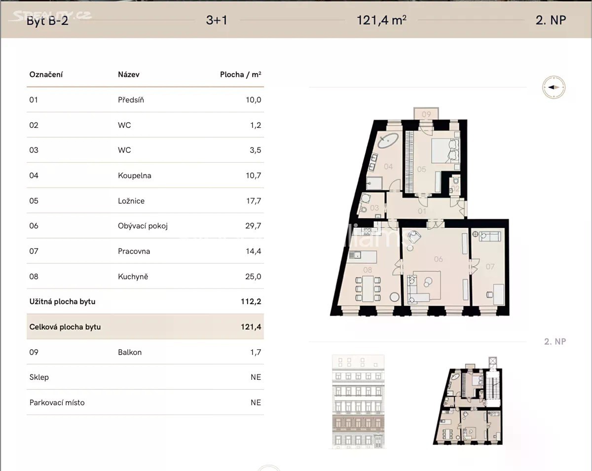 Prodej bytu 3+1 123 m² Na Struze, Praha - Nové Město