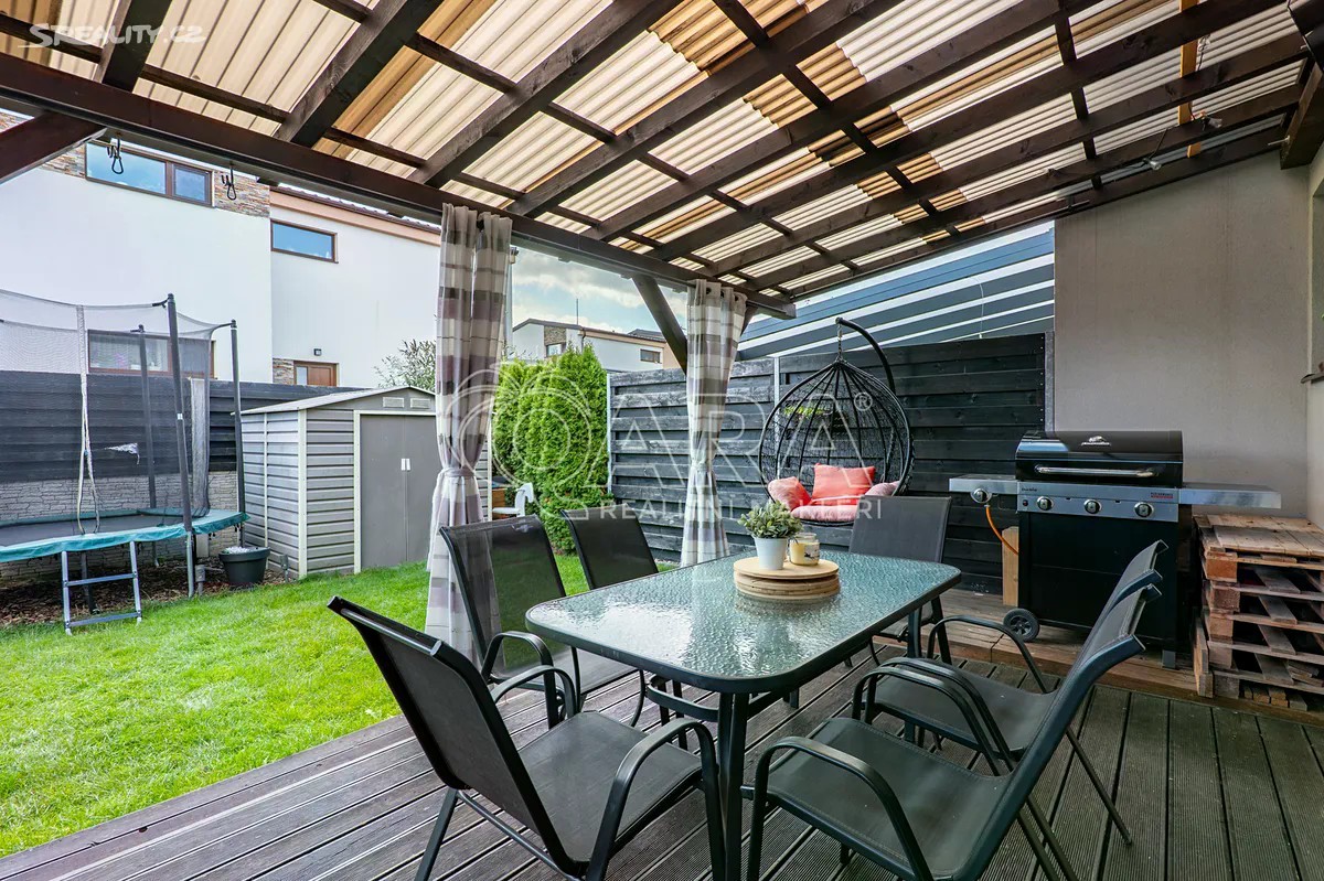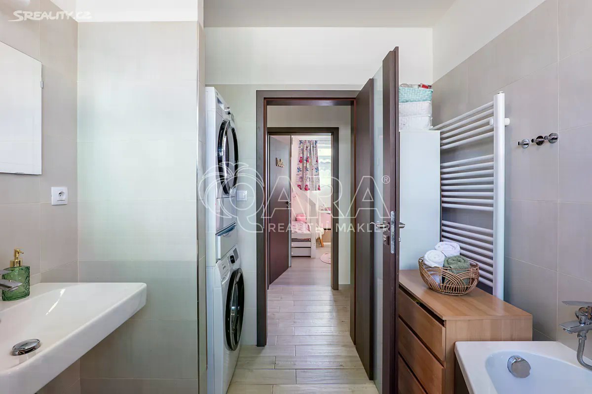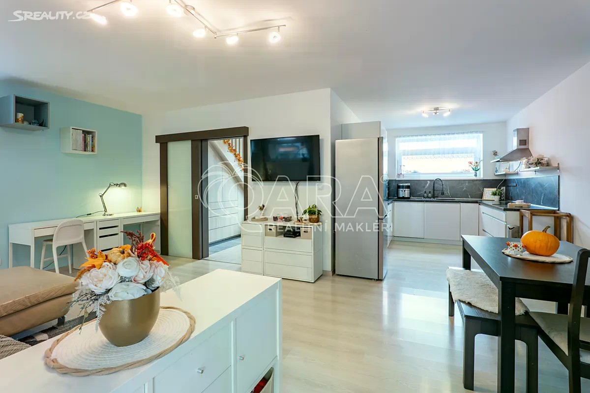Jenom 18 km od Prahy, v klidné a oblíbené lokalitě Mukařov-Srbín, se nachází útulný byt připravený stát se novým domovem pro Vaši rodinu. Bezpečné prostředí, přátelská komunita a blízkost přírody dělají z této adresy ideální místo pro pohodlné a spokojené bydlení. Promyšlené rodinné bydlení s dostatkem úložného prostoru Byt o užitné ploše 93 m² nabízí praktické dispoziční řešení. V přízemí se nachází vstupní chodba s toaletou, technická místnost s elektrickým bojlerem a zásobníkem na vodu. Pod schodištěm jsou vestavěné skříně, které poskytují praktický úložný prostor pro každodenní potřeby. Dále se zde nachází prostorný obývací pokoj 25,2 m²) propojený s plně vybavenou kuchyní ( 8,2 m²). Z obývacího pokoje je přímý vstup na zahrádku o velikosti 60 m², kde se nachází zastřešená pergola s posezením pro rodinu a přátele, vhodná pro letní grilování a odpočinek na čerstvém vzduchu. Součástí zahrádky je také zahradní domek pro uskladnění nářadí, kol či sezónních věcí. V patře se nachází dvě dětské pokoje (11 m², 8,3 m²) a hlavní ložnice ( 11,4 m²) s vestavěnou skříní nabízející dostatek úložného prostoru. Dále je zde koupelna s vanou, toaletou a místem pro pračku a sušičku. Před bytem je vlastní parkovací místo pro dvě auta. Byt je napojen na obecní vodovod i kanalizaci a je připraven k okamžitému nastěhování. Mukařov nabízí skvělou kombinaci klidu, přírody a rychlé dostupnosti do Prahy - ideální kompromis mezi městským a venkovským životem. Nemovitost je možné financovat hypotékou a rádi Vám pomůžeme s jejím vyřízením. Neváhejte mě kontaktovat pro sjednání prohlídky tohoto příjemného bytu. V případě, že se o koupi bude zajímat více vážných zájemců současně, majitel si vyhrazuje právo vybrat kupujícího podle kvality předložených nabídek. Spolupráce s realitními makléři je vítána.