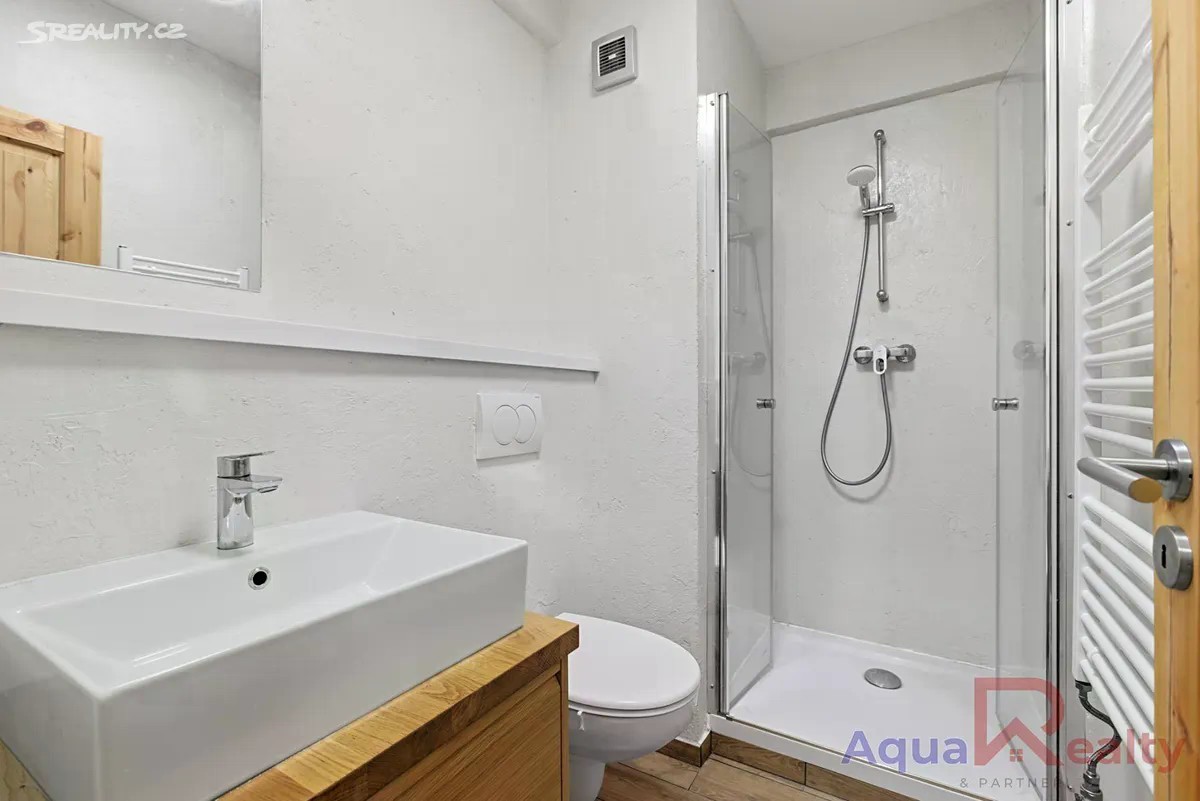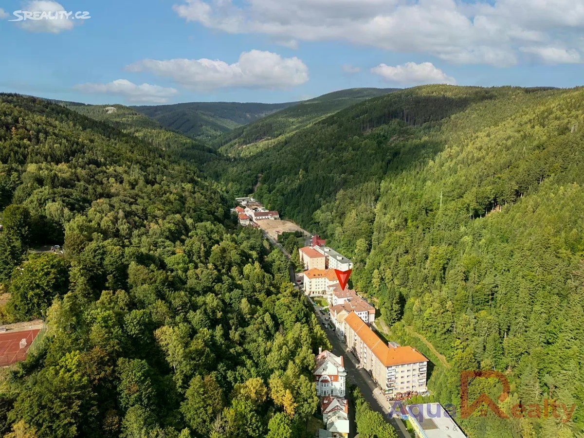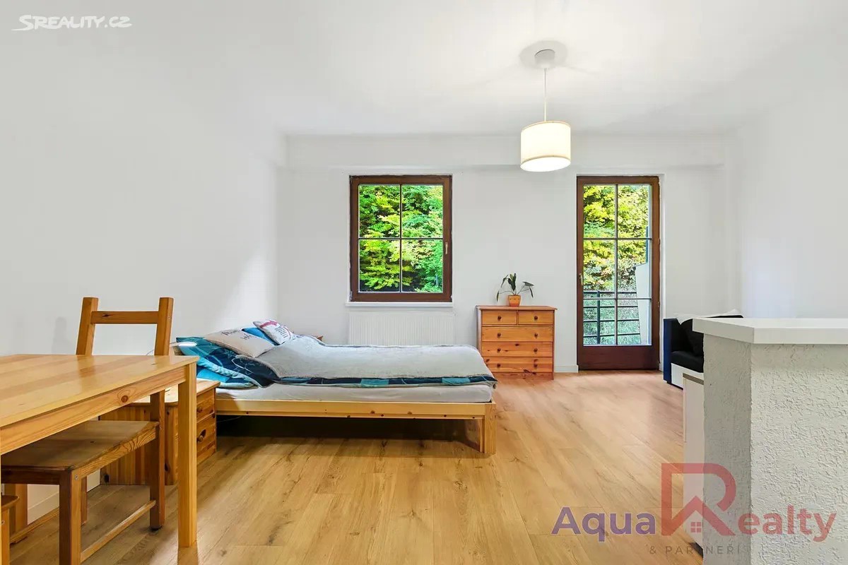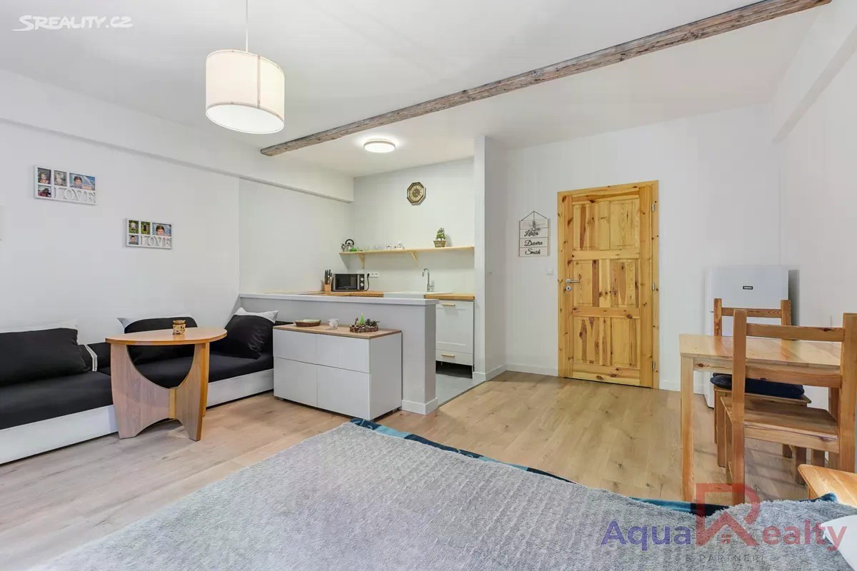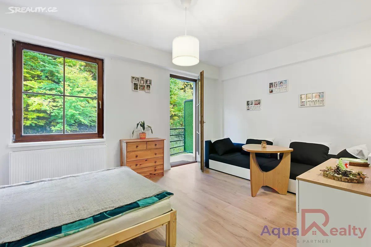 Nabízíme k prodeji byt v osobním vlastnictví o dispozici 1+kk a celkové ploše 35,71 m2, který se nachází ve třetím nadzemním podlaží cihlového domu s výtahem v klidné části města Jáchymov. K bytu náleží balkon a sklep o velikosti 2 m2. Byt je plně vybavený, s výjimkou gauče, a připravený k okamžitému nastěhování. V obytné části se nachází manželská postel, jídelní stůl se židlemi, úložné prostory a pračka v kombinaci se sušičkou, která je prakticky umístěna přímo v předsíni. Kuchyňský kout je vybaven elektrickou troubou Mora, sklokeramickou varnou deskou Schott Ceran, mikrovlnnou troubou a lednicí. Podlahy tvoří kombinace plovoucí podlahy v dekoru dřeva a keramické dlažby. Díky efektivnímu uspořádání nabízí byt dostatek pohodlí pro trvalé bydlení i rekreační využití. Dům byl postaven v roce 1999, je udržovaný, zateplený a vybavený plastovými okny. Vytápění i ohřev vody jsou centrální. Byt je orientován na jihovýchod a má energetickou náročnost třídy D méně úsporná (PENB k nahlédnutí u makléře). Dům spravuje společenství vlastníků jednotek a měsíční provozní náklady činí 1 831 Kč při jedné osobě, bez zálohy na elektřinu, která činí přibližně 1 000 Kč měsíčně. Nemovitost se nachází v klidné ulici K Lanovce, v docházkové vzdálenosti od lázeňského centra města. Pouhých 550 metrů od domu se nachází Aquacentrum Agricola s wellness, bazény a saunovým světem. Na lanovku Jáchymov Klínovec je to přibližně 2,6 km a do Ski areálu Boží Dar asi 8,6 km. Město Jáchymov nabízí plnou občanskou vybavenost včetně obchodů, restaurací, pošty a městské hromadné dopravy. Díky své poloze a vybavení je byt vhodný nejen pro vlastní bydlení, ale i jako výhodná investice pro krátkodobé pronájmy zaměřené na lázeňské hosty, turisty nebo milovníky hor. Byt je ihned k nastěhování a před osobní návštěvou je možné si jej prohlédnout prostřednictvím 3D virtuální prohlídky. V případě více zájemců bude upřednostněna výhodnější nabídka na základě financování a rychlého průběhu jednání. Rádi vám bezplatně zprostředkujeme srovnání možností financování a navrhneme řešení šité na míru vašim potřebám. V případě zájmu mě neváhejte kontaktovat rád vás bytem osobně provedu.