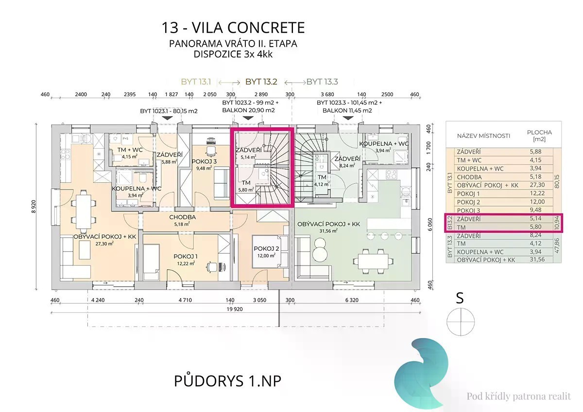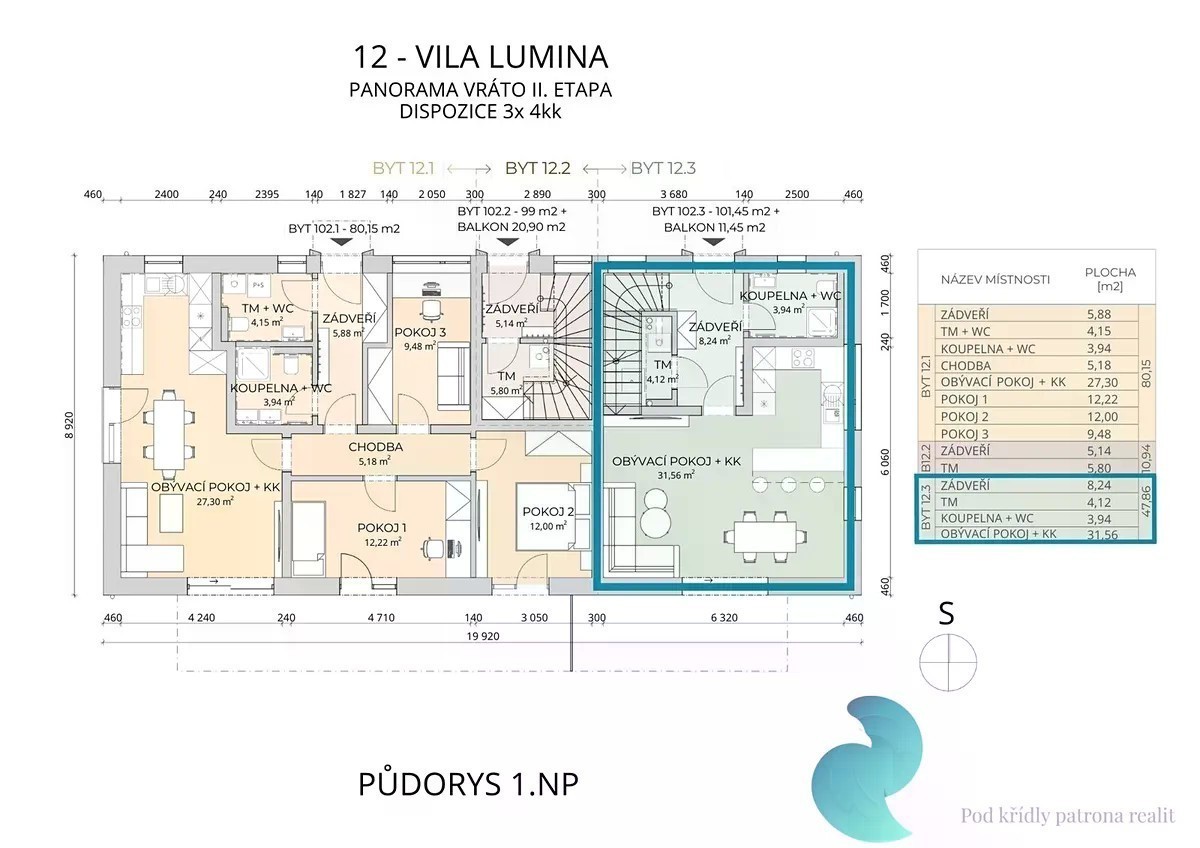 Nechcete dům, ale zároveň hledáte víc než jen obyčejný byt v bytovém domě? Pak vás možná zaujme tento prostorný a promyšleně navržený byt 4+kk (99 m²) s krásným výhledem na českobudějovickou kotlinu, který se nachází v právě dokončovaném projektu Panorama Vráto - na klidném místě, jen pár minut od centra Budějovic. Co všechno máte v ceně? Balkón o ploše 20,65 m², který se stane vaším oblíbeným místem na ranní kávu nebo večerní skleničku. Výhled? Dechberoucí. Dvě parkovací stání přímo u domu - konec kroužení kolem bloků. Zahradní domek (cca 7-9 m²), kam uložíte kola, pneumatiky, nářadí i další sezónní věci. A samozřejmě byt o dispozici 4+kk a ploše 99 m², který působí díky chytré dispozici ještě větší. V ceně bytu jsou zahrnuty podlahy, dveře, obklady i sanita, a tak vám už zbývá jen "doladit" kuchyni dle svého. Tento byt není "další standardní novostavba", ale najdete zde kvalitu, která je vidět i cítit: Perfektní akustika bytu díky poctivé technologii. Trojskla v bílo-antracitovém designu - světlo, úspora, moderní vzhled. Posuvné dveře na balkón - plynulý přechod mezi interiérem a venkem. Podlahové topení řízené termostatem - teplo bez radiátorů a volné stěny. Vytápění a ohřev vody zajišťuje plynový kondenzační kotel Protherm se zásobníkem - efektivní, úsporné, spolehlivé. Vráto u Českých Budějovic je místo, kde slyšíte ptáky, ne hluk z dopravy. A přitom jste v centru Budějovic do 10 minut. V okolí najdete lesy, cyklostezky i dobré spojení MHD. Klidná zástavba, bez hluku a provozu. A výhledy, které v běžných bytech prostě nedostanete. A co teď? Stavba finišuje a dobrou zprávou je, že je již zkolaudována! I přesto máte stále možnost ovlivnit detaily interiéru - podlahy, dveře, obklady a sanitární vybavení. Chcete se dozvědět víc? Nebo si rovnou domluvit prohlídku přímo na místě? Napište mi nebo zavolejte. Ráda vás projektem osobně provedu - a uvidíte sami, jestli se tady budete cítit jako doma.