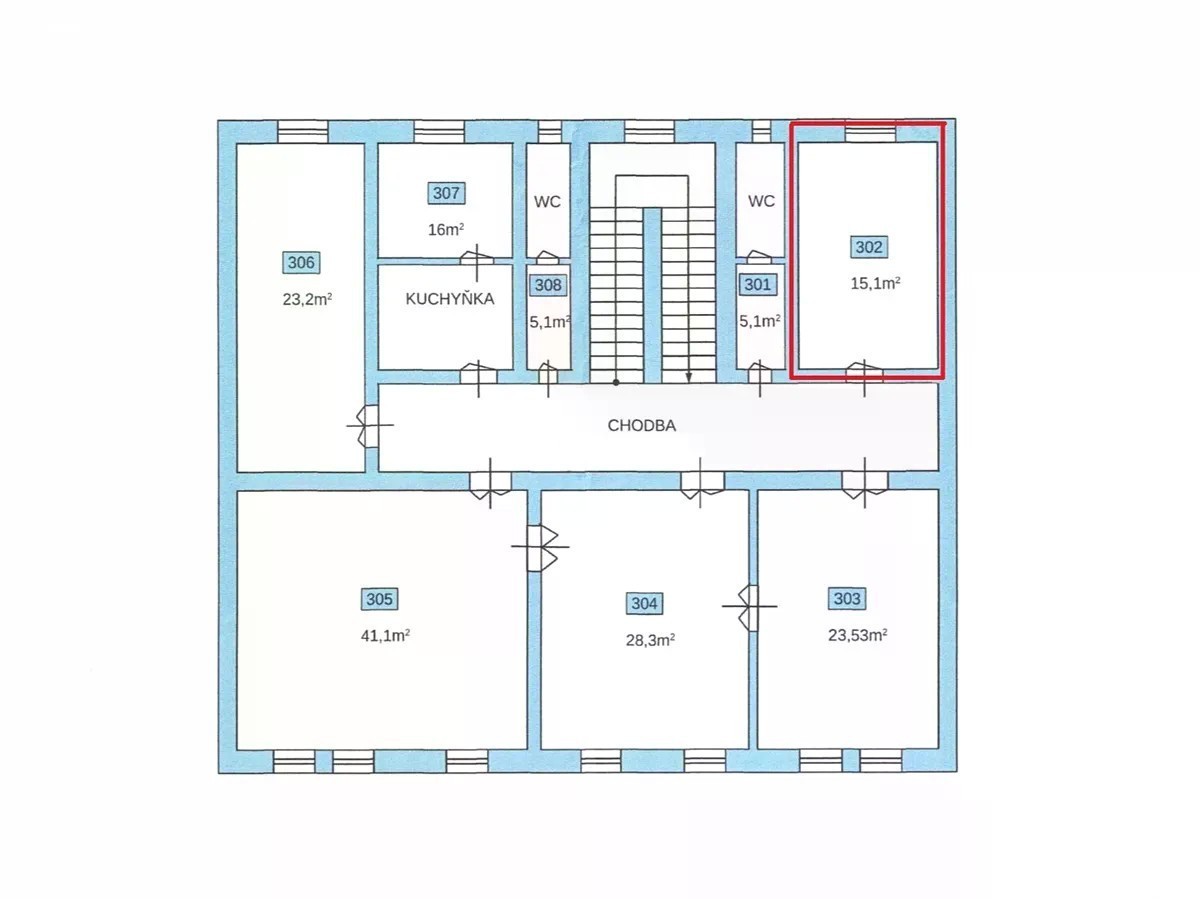 Nabízíme k pronájmu kancelářské prostory v administrativní budově v centru Hradce Králové v ulici Československé armády. Kancelář č. 302 o ploše 15 m se nachází ve 3. nadzemním podlaží budovy s okny orientovanými do klidného dvora. Pro nájemce kanceláří je v domě možnost využít zasedací místnost s projektorem, na patře je společná kuchyňka, WC, pro chvíle odpočinku a relaxu v letních měsících je na dvorku za domem k využití venkovní posezení. Kancelář je po rekonstrukci, bíle vymalovaná, na podlaze nová PVC krytina, umývadlo s průtokovým ohřívačem teplé vody, pro internetové připojení je využitelná linka od O2. K dispozici je aktuálně ještě jedna obdobná kancelář v 2. NP. Jedná se o velmi dobrou lokalitu v kancelářské budově v centru města v blízkosti Krajského úřadu Královéhradeckého kraje, kde lze také využít bezpečné parkování v parkovacím domě. Místo je dobře dostupné MHD, zastávka s mnoha spoji Adalbertinum je vzdálena 150 m. Nájemné kanceláře o ploše 15 m2 je 2 492 Kč/měs., záloha na služby je 2 235 Kč/měs., jistota je ve výši 2 nájmů vč. služeb a provize za zprostředkování ve výši 2 500 Kč. V případě zájmu o více informací nebo o dohodnutí prohlídky prostorů mě neváhejte kontaktovat na níže uvedeném telefonním čísle nebo mailové adrese.