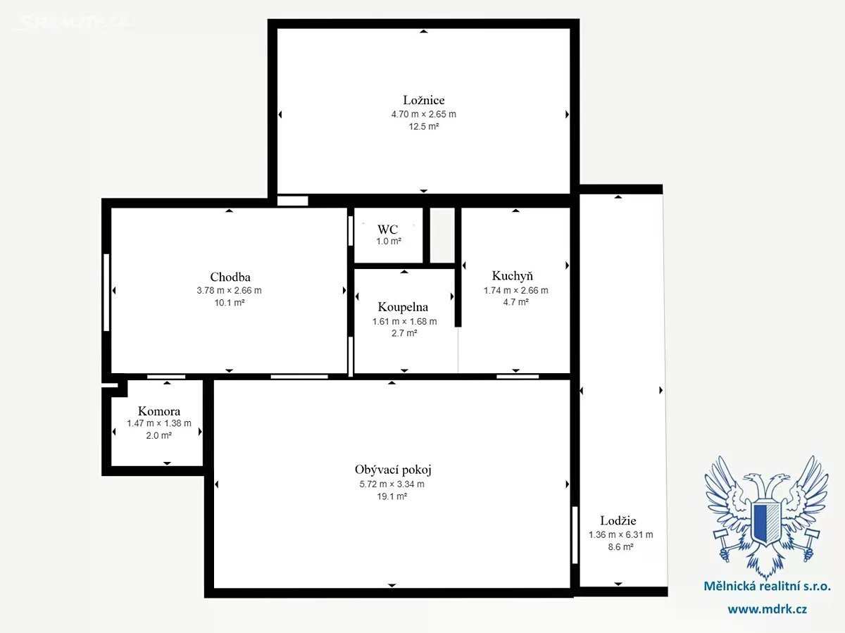 Pronájem bytu 2+1 60 m² Kosmonautů, Mělník