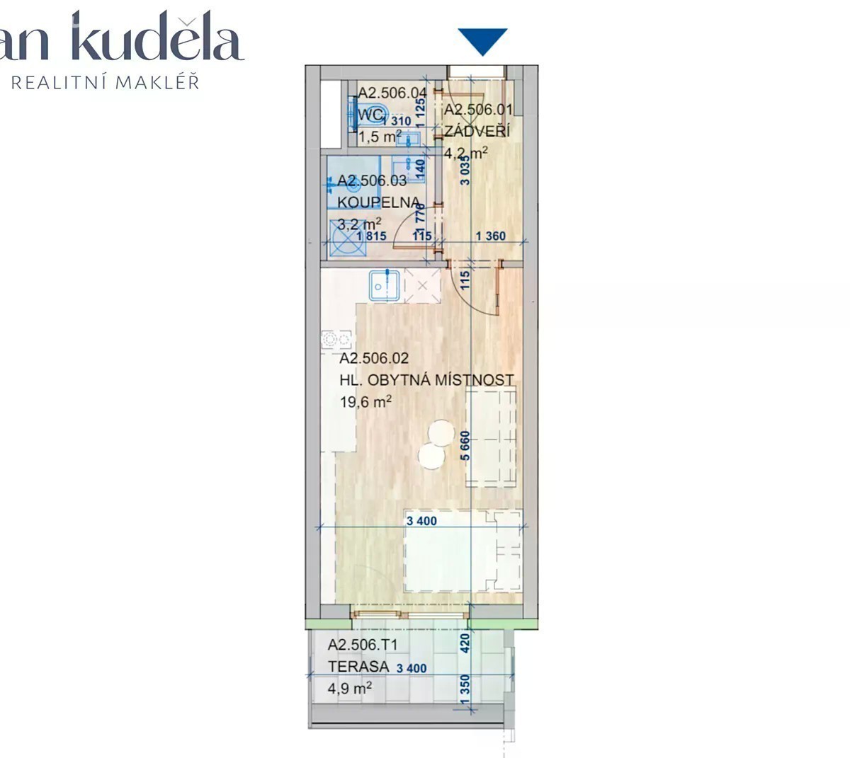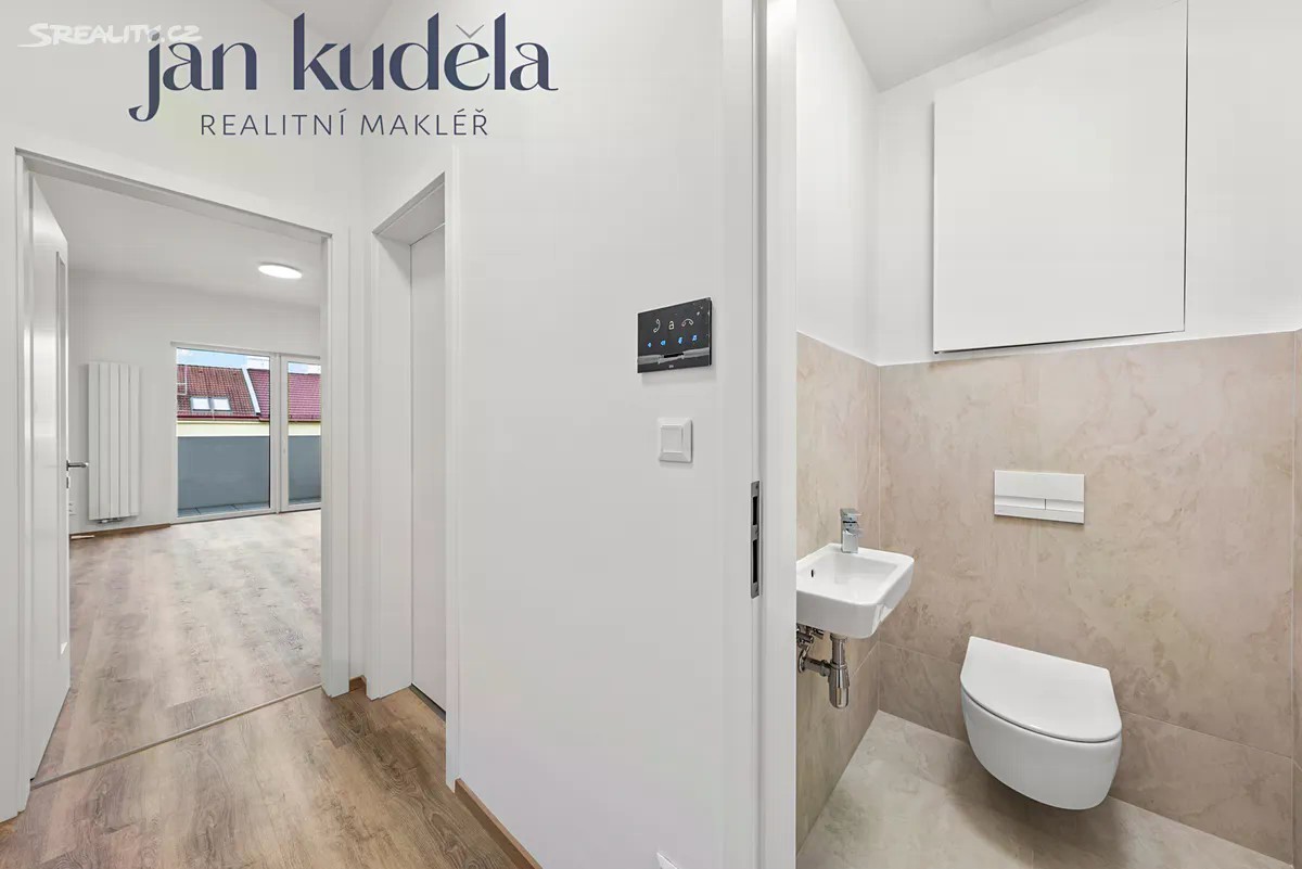 Nabízíme k pronájmu nový a světlý byt o dispozici 1+kk o celkové podlahové ploše 33,4 m2 včetně terasy 4,9 m2, umístěný v 5. nadzemním podlaží bytového domu Meridiem. K bytu náleží také prostorný sklep. Byt je vybaven moderní kuchyňskou linkou včetně vestavěné lednice, myčky a indukční varné desky. Součástí vybavení je také klimatizační jednotka a venkovní žaluzie, které zajišťují komfortní teplotu a dostatek soukromí po celý rok. Měsíční nájemné činí 16 000 Kč, zálohy na služby 2 000 Kč + přepis elektřiny na nájemce. Jistina (kauce) je stanovena na 32 000 Kč, provize realitní kanceláři činí 18 500 Kč. Byt je volný ihned. Parkování je možné v okolních ulicích bez modré zóny. V blízkosti se nachází veškerá občanská vybavenost - supermarket Albert (200 m), zastávka MHD (200 m) s dojezdem do centra za 7 minut, cyklostezka podél řeky Svratky (5 minut pěšky), sportoviště Vodařská a Komec (10 minut) a dálnice D1 (5 minut). Jedná se o komfortní bydlení v novém prostředí v rychle se rozvíjející části Brna - jih, kde vzniká moderní městský bulvár propojující novou zástavbu, připravovaný vlakový a autobusový terminál a volnočasovou zónu kolem řeky Svratky až do historického centra města. Byt doporučujeme pro jednotlivce či pár hledající moderní a klidné bydlení s výbornou dostupností do centra.