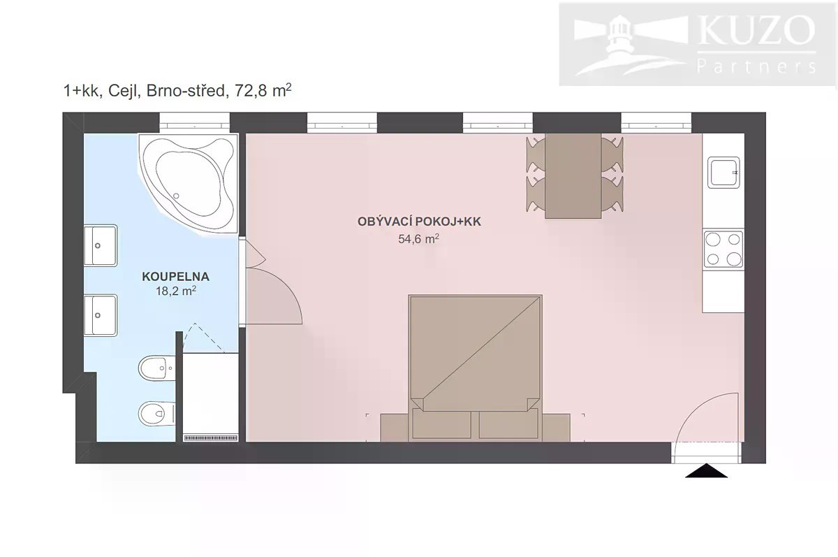 Nabízíme k prodeji luxusní, plně vybavený byt 1+kk o velikosti 72,8 m², který prošel kompletní rekonstrukcí. Byt se nachází v 1. patře historického domu s výtahem v těsné blízkosti centra Brna, na adrese Cejl 65. Spojuje elegantní design, prostornost a vysoký investiční potenciál. Dispozice a vybavení: celková plocha: 72,8 m² prostorný obývací pokoj s kuchyňským koutem designová prosvětlená koupelna se dvěma okny (18,2 m²) s rohovou vanou, sprchovým koutem, dvěma umyvadly, WC a bidetem, vysoké stropy s původními štuky, dřevěná okna kompletní vybavení: kuchyňská linka s vestavěnými spotřebiči, kvalitní nábytek, křišťálové lustry - byt je připraven k okamžitému užívání Investiční příležitost Byt je ideální jak pro dlouhodobé bydlení, tak pro krátkodobé pronájmy (Airbnb, Booking aj.). Momentálně stále obsazeno. Měsíční výnos: *********Kč Měsíční náklady: FO - 1.092,-Kč, správa domu - 160,-Kč, el.energie spol.prostor- 219,-Kč, teplo - 1.960,-Kč, TV ohřev 1.478,-Kč, TV voda - 230,-Kč, vodné-stočné - 250,-Kč, výtah - 42,-Kč, úklid spol.prostor - 447,-Kč, náklady celkem: cca 6 000 Kč + elektřina dle vlastní spotřeby Možnost parkovacího místa ve vnitrobloku (na základě pronájmu) Bezpečný vjezd do domu přes bránu na dálkové ovládání. Lokalita ulice Cejl leží v bezprostřední blízkosti centra Brna, s vynikající dopravní dostupností. Dům je součástí klasické činžovní zástavby z přelomu 19.-20. století a zachovává si původní historický ráz V okolí najdete restaurace, kavárny, obchody i kulturní centra. V docházkové vzdálenosti se nachází zastávky MHD, park Koliště i hlavní nádraží. Výhody nemovitosti: kompletně zařízený byt po rekonstrukci reprezentativní historický dům s výtahem vysoké stropy, vzdušný prostor výborná investiční návratnost