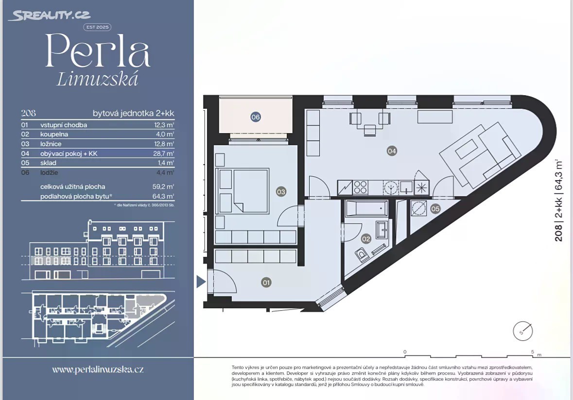 Prodej bytu 2+kk 65 m² Limuzská, Praha