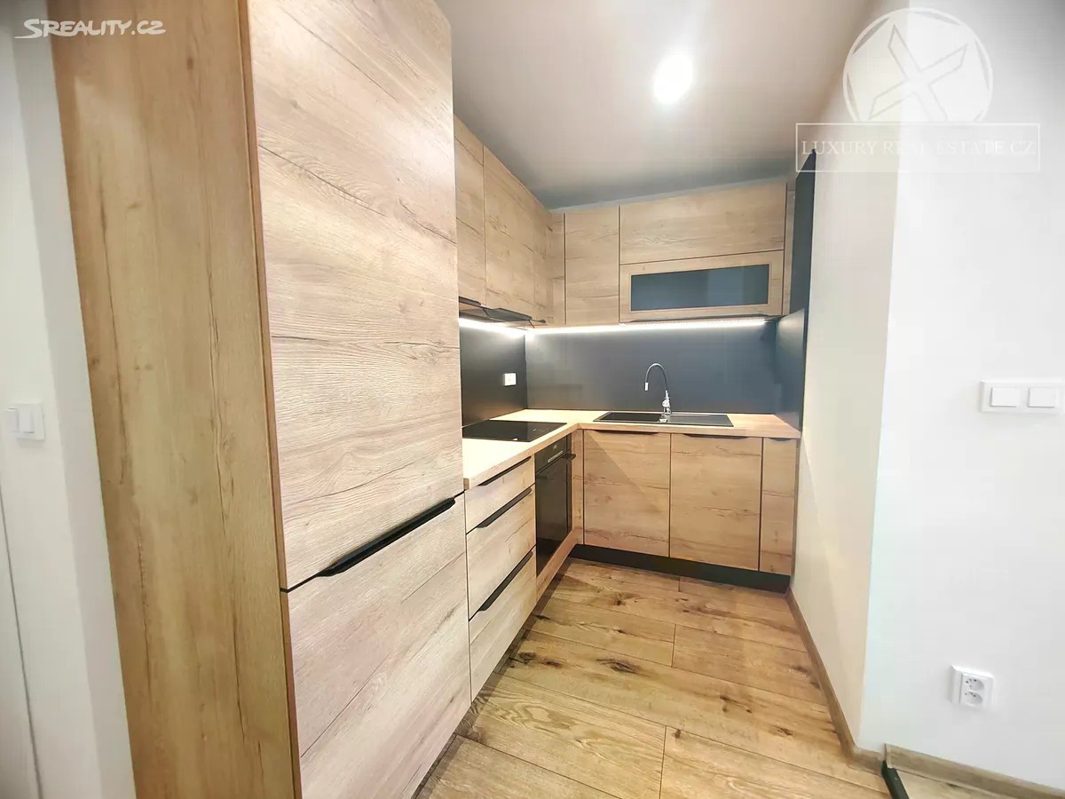 KOMPLETNĚ ZREKONSTRUOVANÝ BYT Do pronájmu právě uvolňujeme kompletně a velmi vkusně zrekonstruovaný byt v dispozici 2+1 se dvěma terasami, což je v lokalitě velmi ojedinělá příležitost. Pokud chcete nájemní, ovšem také reprezentativní a kvalitní bydlení pro 1 či 2 osoby, pak rozhodně tuto nabídku nepřehlédněte! Dlouho na trhu rozhodně neohřeje. Jedná se o bytovou jednotku v 6.NP (posledním) v cihlovém domě s výtahem, s celkovou výměrou 52m2, které tvoří dva neprůchozí pokoje (14 a 11m2), kuchyň (6,3m2), vstupní předsíň (4m2), koupelna (3,3m2), spíž (0,5m2) a v neposlední řadě dvě zastřešené terasy (8 a 5,25m2). K bytu patří také velký sklep (5,5m2) v suterénu domu. To vše v klidné ulici "Podolská", ve vyhledávané části Prahy 4 - Podolí. Můžete se z terasy kochat krásným výhledem na Vltavu či Pražský hrad a pozorovat úchvatný západ slunce. Vše je tu zcela nové! Vstupní dveře, veškeré instalace, rozvody, podlahy, designová koupelna, moderní a plně vybavená kuchyňská linka vč. značkových spotřebičů (varná deska, trouba, designová digestoř, lednice, mrazák a myčka nádobí), úsporné luxusní osvětlení a mnoho dalšího. Pronajímáme byt vybavený kuchyňskou linkou vč. spotřebičů a vestavnou skříní v ložnici - ostatní vybavení si můžete pořídit dle vlastních představ (první fotografie s vybavením jsme pro Vás připravili jako inspiraci). Navíc můžete také užívat zahradu ve vnitrobloku, které patří k domu. Nečekejte kompromisy, zde na ně nebyl prostor. Byt prošel skutečně velmi precizní a citlivou rekonstrukcí, při které nezůstal "kámen na kameni" Na Vás tak čeká vše v prémiové, a naprosto netknuté, kvalitě. Topení řešeno společným úsporným kotlem v domě (účtováno podle spotřeby jednotek). Do bytu je také přiveden vysokorychlostní internet. V okolí se nachází veškerá občanská vybavenost, přímo před domem velký park s množstvím sportovních aktivit, dětským hřištěm, parkourovým hřištěm a obrovskou výhodou je také blízkost MHD, která se nachází právě za parkem (tedy od domu pár kroků). Parkovat můžete bez problémů na modré zóně před domem. Majitel bude rád za spolehlivého nájemníka a krom vstřícného jednání nabízí možnost nájmu nekuřákovi s možností nenáročných domácích mazlíčků. Nájemní vztah na min. 1 rok Náklady nad rámec nájemného (hradí nájemník) na TUV, voda, teplo, společné prostory v domě apod. ve výši 5.000CZK/měsíc. Požadovaná vratná kauce ve výši 50tis jakožto pojistka nákladné rekonstrukce. Provize RK jedno nájemné + DPH Tato nabídka není určena pro další podnájem na krátkodobé pronájmy a na takové nabídky nebudeme reagovat. V domě nejsou krátkodobé nájmy vítány. Budeme se těšit na osobní setkání u prohlídky.