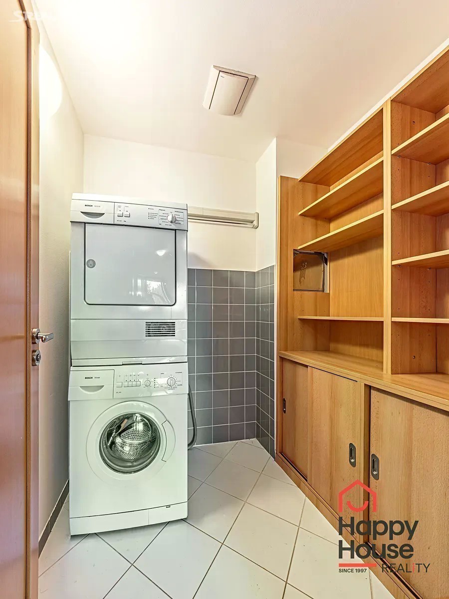 Nabízíme Vám k pronájmu tento luxusní, prostorný byt 3+1 + pracovna, se dvěma koupelnami, garážovým stáním a dvěma lodžiemi situovaný ve 3. patře cihlové budovy s výtahem na Praze 4 v Podolí. Byt je nezařízený a nabízí vstupní halu, obývací pokoj, kuchyň, dvě ložnice (17m2 a15,5 m2), jednu pracovnu 5,8m2), dvě koupelny, šatnu a komoru a dvě kryté lodžie. Kuchyň vybavena linkou, lednicí s mraznicí, sklokeramickou deskou, el troubou a myčkou. Jedna koupelna s vanou i sprchovým koutem a toaletou, druhá se se sprchovým koutem a toaletou. V komoře je policový systém, pračka a sušička. Plovoucí podlahy, PVC a dlažba. Telefon, internet, satelit, alarm, ústřední vytápění. Jedno garážové stání v ceně nájmu. Výtah z garáží přímo do bytu. Milovníky přírody potěší těsná blízkost parku Kavčí hory a Centrálního parku Pankrác. Autobusová zastávka Nové Podolí 2 min od bytu. Poplatky se hradí zvlášť, vratná kauce jeden měsíční nájem včetně poplatků. Provize RK jeden měsíční nájem + DPH. Průkaz PENB není k dispozici, proto je uvedena třída G.