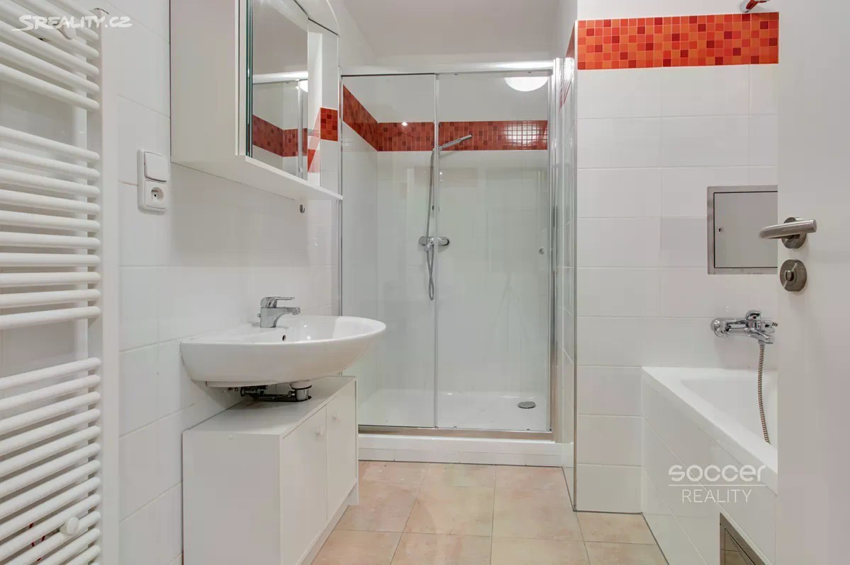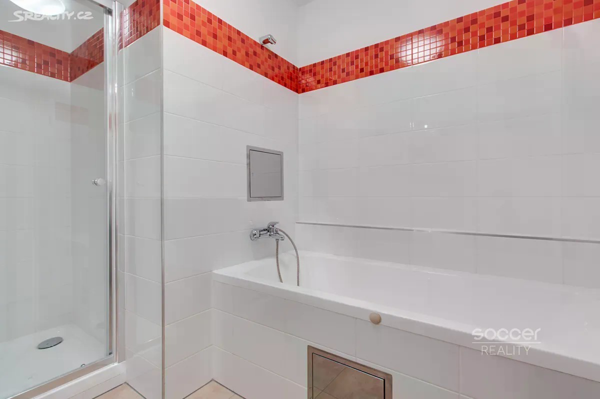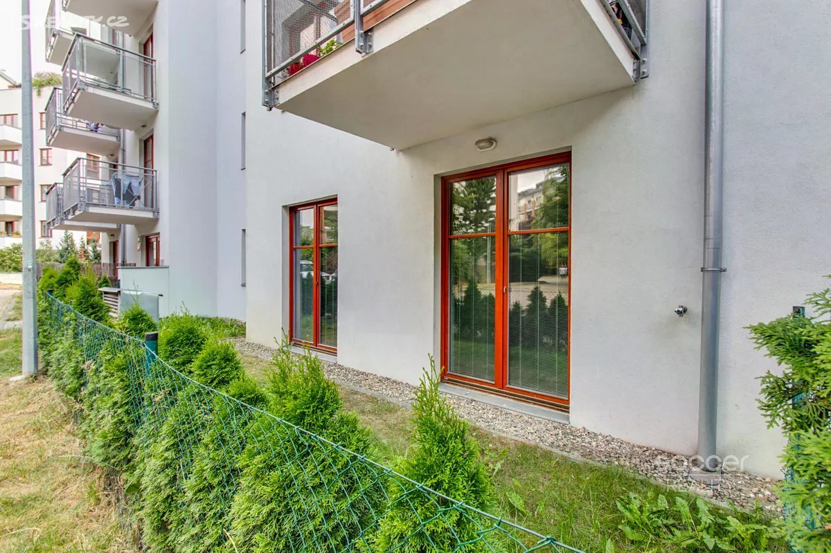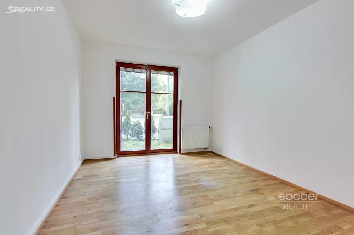 Nabízíme k pronájmu prostorný byt možný k využití i jako prostorné kanceláře/ateliér o dispozici 3+kk. Tento byt se nachází v přízemí novostavby a je obklopen předzahrádkou 43 m2. Po vstupu do bytu se ocitnete v předsíni vybavené vestavěnou skříní. Z předsíně (ve tvaru L) je vstup do dvou samostatných místností (14,6 m2 a 14,4 m2), jež obě nabízí vchod na předzahrádku. Dále vedou z předsíně dveře do obývacího prostoru (27,1 m2) spojeného s kuchyňským koutem. Dále se z této předsíně dostanete do koupelny, jež je vybavena jak velkým sprchovým koutem tak vanou, takže na své si přijdou milovníci obou těchto variant. WC je samostatné a sousedí s koupelnou. Tento byt je pronajímán nezařízený, pouze kuchyňský kout je vybaven lednicí, myčkou, samostatným mrazákem, digestoří a novým dvouplotýnkovým vařičem. K dispozici pračka. Podlahy v bytě jsou plovoucí, v koupelně a na WC je dlažba. K bytu náleží čistý, suchý a uzamykatelný sklep, který najdete u parkovacího stání v garážích. Byt je vytápěn ústředním topením. Prostor disponuje euro-okny vybavenými zabezpečovacími fóliemi. Byt je možné využít i jako ateliér nebo kancelář. Připojení na internet je rozvedeno v každé místnosti a byt je vybaven zabezpečovacím systémem. Tento byt je situován v perfektní a žádané lokalitě Prahy 6 - Podbaba v těsné blízkosti sportovního areálu Juliska a parku Baba. Do několika málo minut pohodové chůze se nachází Kaufland, lékárna a autobusová i tramvajová zastávka Nádraží Podbaba. V okolí najdete veškerou občanskou vybavenost.