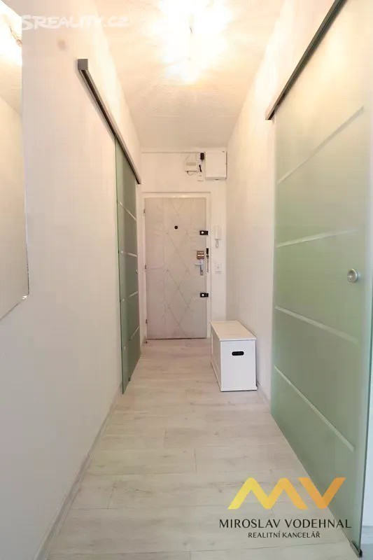 K dlouhodobému pronájmu nabízíme velmi pěkný, zcela rekonstruovaný byt 2+kk o rozloze 47 m2, který se nachází v 5. NP panelového domu s výtahem v Pardubicích v ul. U Josefa. Dispozice: obývací pokoj s kuchyňským koutem, ložnice, koupelna s WC, předsíň, komora, sklepní kóje. Jedná se o velmi pěkný, světlý a částečně zařízený byt po kompletní rekonstrukci. Plastová okna se žaluziemi, nové rozvody, vinylová podlaha. Nová kuchyňská linka se všemi spotřebiči (el. trouba, mikrovlnná trouba, el. varná deska, lednice). V pokoji zůstává pouze velká vestavěná skříň na míru. Koupelna s vanou, koupelnová skříňka s umyvadlem a zrcadlem, toaleta a přípojka na pračku. V bytě designové skleněné zasouvací dveře, všude osvětlení. K bytu náleží na patře velká komora společná pro dva byty. Dále v suterénu je sklepní kóje a kolárna. V ceně nájmu je internetové připojení. Pouze bez zvířat. Kompletní občanská vybavenost, MHD, blízko do přírody, v blízkosti Univerzita Pardubice. Parkování bez poplatků u domu. Nájemné 15000 Kč + energie a služby 4000 Kč, vratná kauce 2x nájemné, provize RK 15000 Kč. Průkaz energetické náročnosti nebyl dodán, z toho důvodu je uvedena nejnižší možná třída G. Volné od 1. 12. 2025.