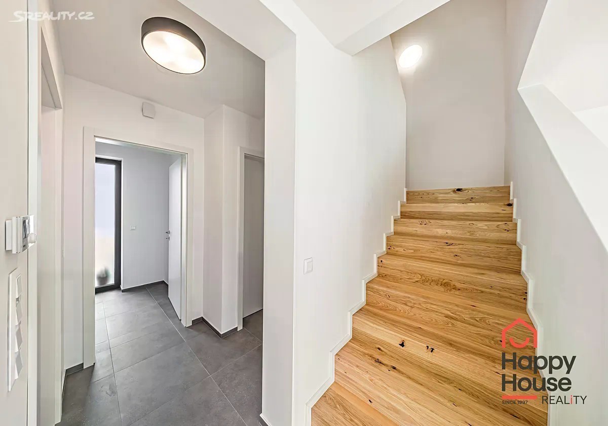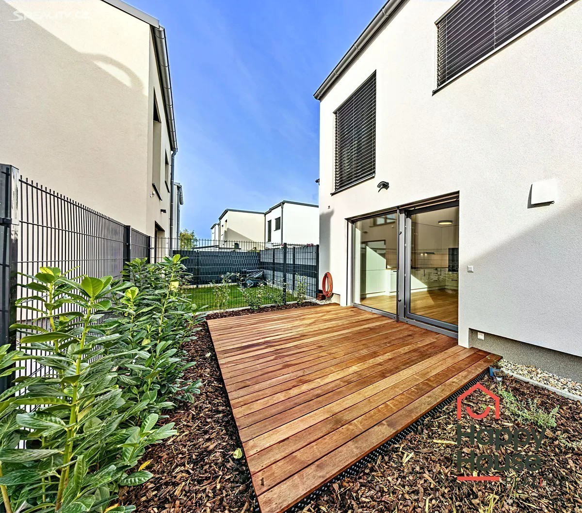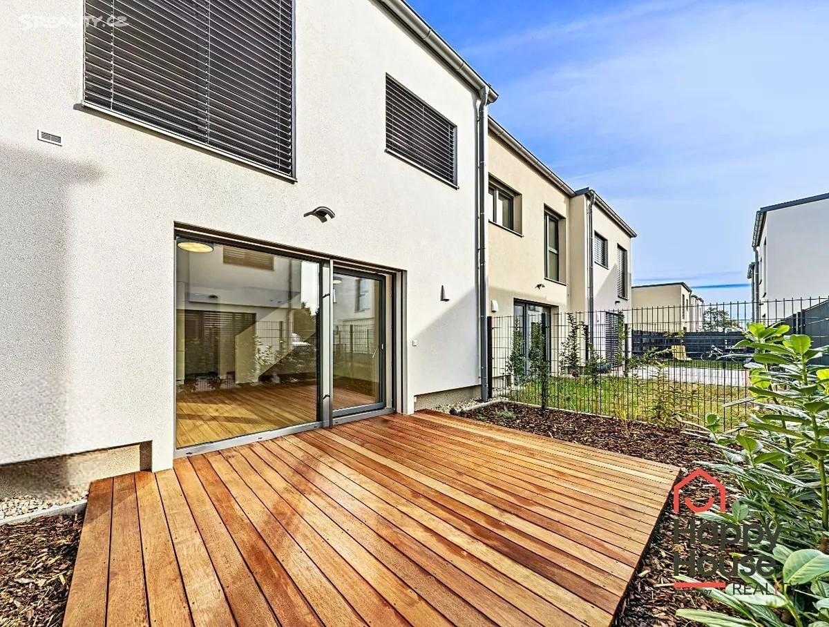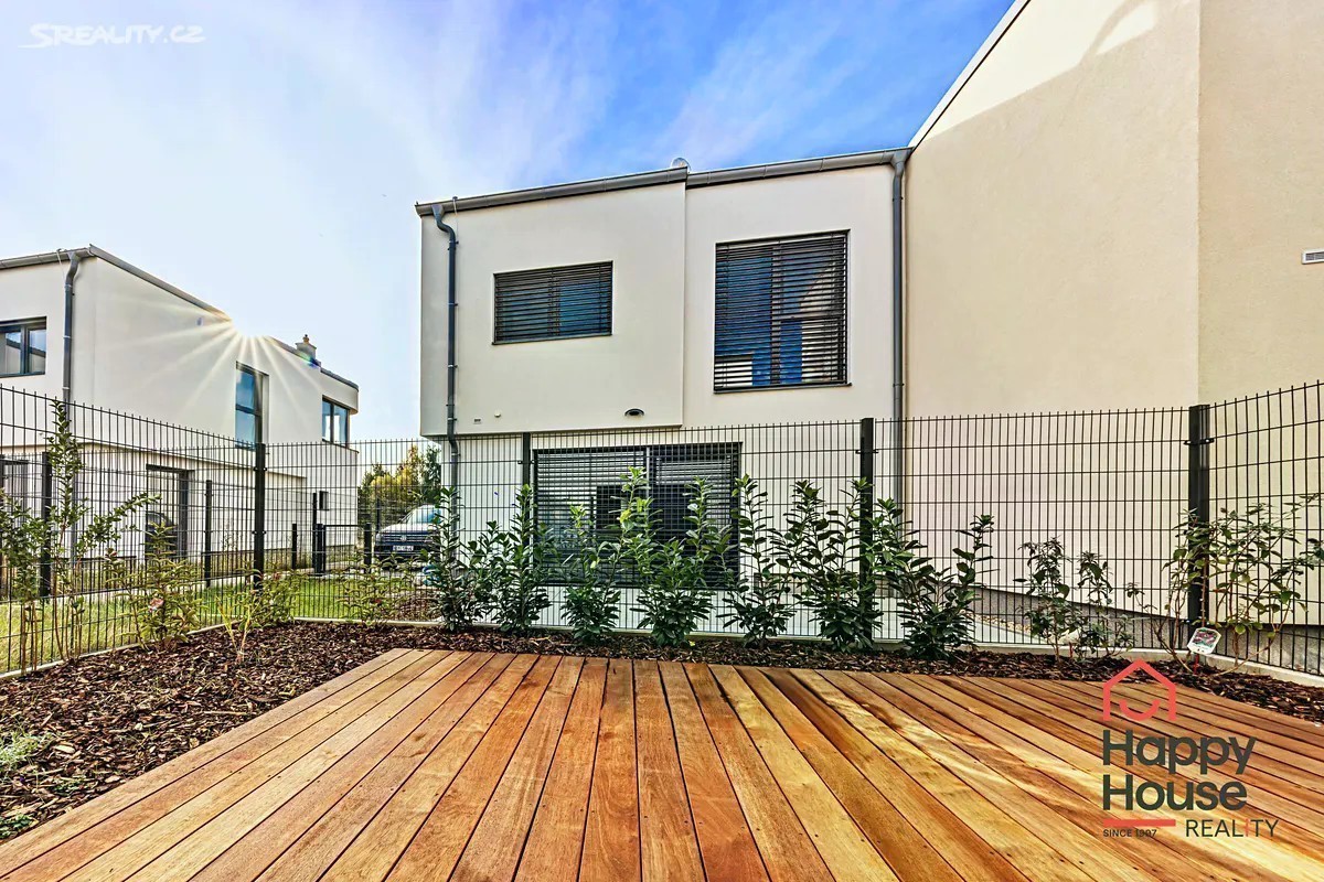 Pronajmeme novostavbu moderního patrového řadového rodinného domu 4+kk (105,2 m2 užitné plochy), která nabízí 2 parkovací stání na vlastním pozemku před domem. Jižně orientovaná zahrada (58,7 m2) s terasou z tropického dřeva a čerstvě vysázenými keři. Na sever je ulice a pole, okrajová zástavba v nově vznikající čtvrti Rezidence Kolovraty v Praze 10. V přízemí domu zádveří 5,89 m2, chodba 5,89 m2, prostorný obývací pokoj 19,5 m2, kuchyňský kout 13,70 m2, koupelna 6,21 m2 (sprchový kout, umyvadlo, WC), technická místnost 2,57 m2 (plynový kondenzační kotel, pračka a příprava na sušičku), komora 1,83 m2 a schodiště. V prvním patře chodba 3,93 m2, koupelna 8,07 m2 (vana, 2 umyvadla, WC) a 3 samostatné ložnice o rozměrech 12,37 m2, 12,13 m2 a 10,1 m2. V nemovitosti byly provedeny nadstandardní klientské změny - dřevěná podlaha a schodiště, předokenní žaluzie (Z profil) - kombinace individuálního a centrálního ovládání, doplněny žebříkové radiátory pro sušení ručníků. Luxusní kuchyně se značkovými spotřebiči - BOSCH, Electrolux, Whirlpool a také nadstandardní koupelnový nábytek - vše výroba na míru. Podlahové topení (plyn. kotel). Městská část Praha Kolovraty je místo jak stvořené pro rodiny s dětmi. Vyhledávaným místem k procházkám je lesopark Prknovka na západní straně Kolovrat jejíž součástí je mezinárodní skautský areál. Lokalita je zároveň velmi štědrá na turistické trasy a cyklostezky. Kolovraty dále nabízejí skvělé volnočasové vyžití. K dispozici je zde desítka dětských hřišť, fotbalové hřiště, tenisové kurty, sportoviště s lezeckou stěnou a Urampou, dále pak tělocvična s posilovnou a cvičebním sálem. V horkých letních dnech můžete navštívit areál s koupalištěm a hřištěm na plážový volejbal. Nejen pro obyvatele Kolovrat se po celý rok koná řada kulturně společenských akcí, např. velikonoční a vánoční jarmark, netradiční sousedské setkání Kolovratský parník, Noc s Andersenem, Běh mezi stromy a Dětský den. Zajít si můžete na koncert nebo literární večer. Samozřejmostí je i v obci dostupná veškerá občanská vybavenost - obchody, služby, restaurace, mateřská a základní škola i ordinace lékaře a lékárna. Z dalších služeb lze zmínit cukrárnu, poštu, AlzaBox, knihovnu a dalo by se ještě dlouho pokračovat. Kolovraty leží na hlavní železniční trati Praha České Budějovice a vedou do ní autobusové linky pražské hromadné dopravy 226 a 227. Jízda vlakem vlakem na zastávky Praha - Vršovice a Praha - Hlavní nádraží a metro C trvá zhruba 23 min, za méně než půl hodiny se tak dostanete do centra Prahy. Jízda autobusem na metzro C Háje trvá asi 26 min. Nájezd na dálnici D1 a také na Pražský silniční okruh je vzdálen jenasi 10 minut jízdy. Poplatky a energie se hradí zvlášť, jistota (vratná kauce) 2x měsíční nájemné. Průkaz energetické náročnosti - třída B.