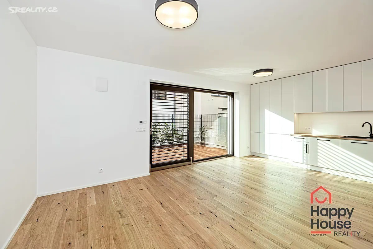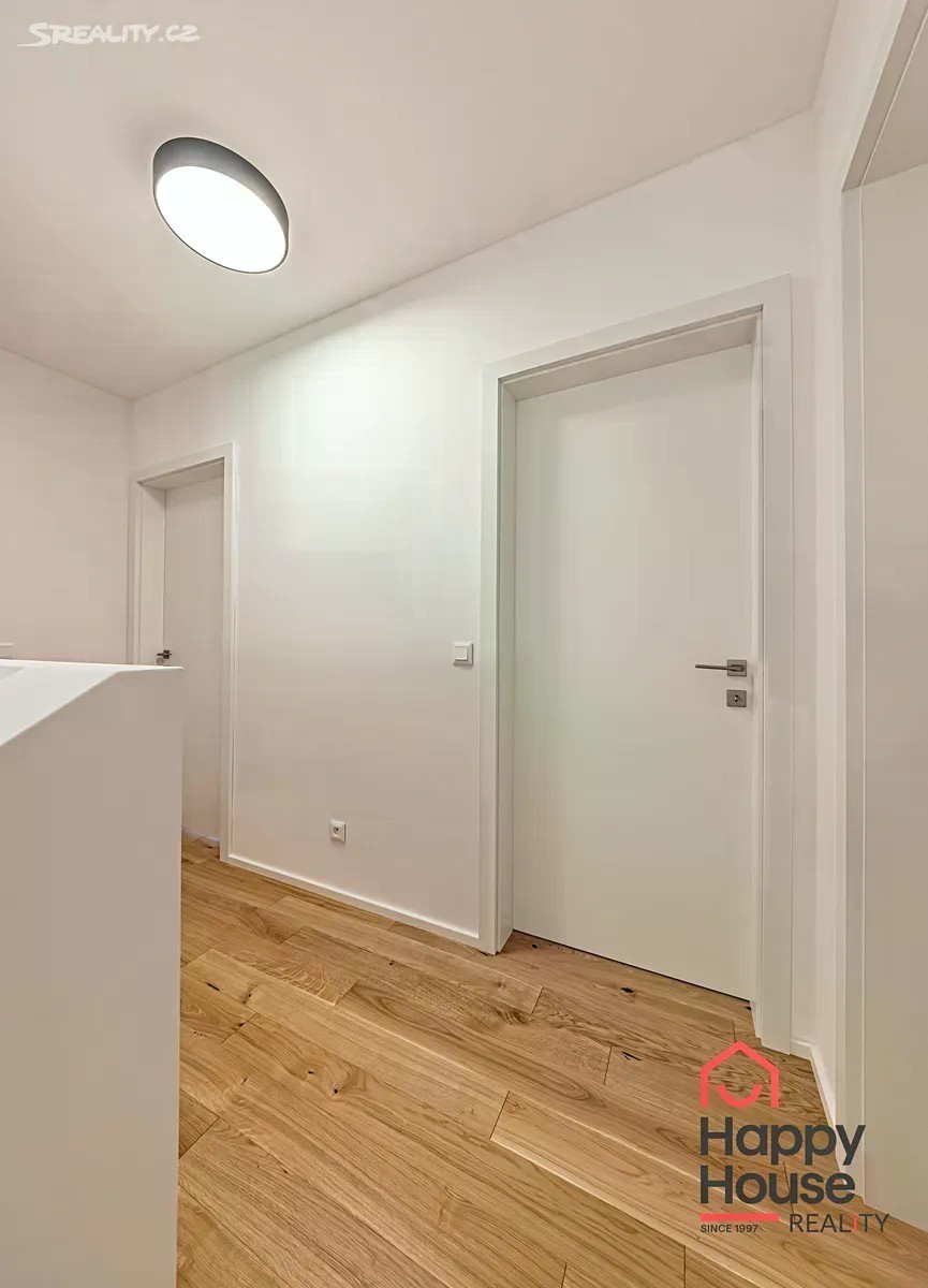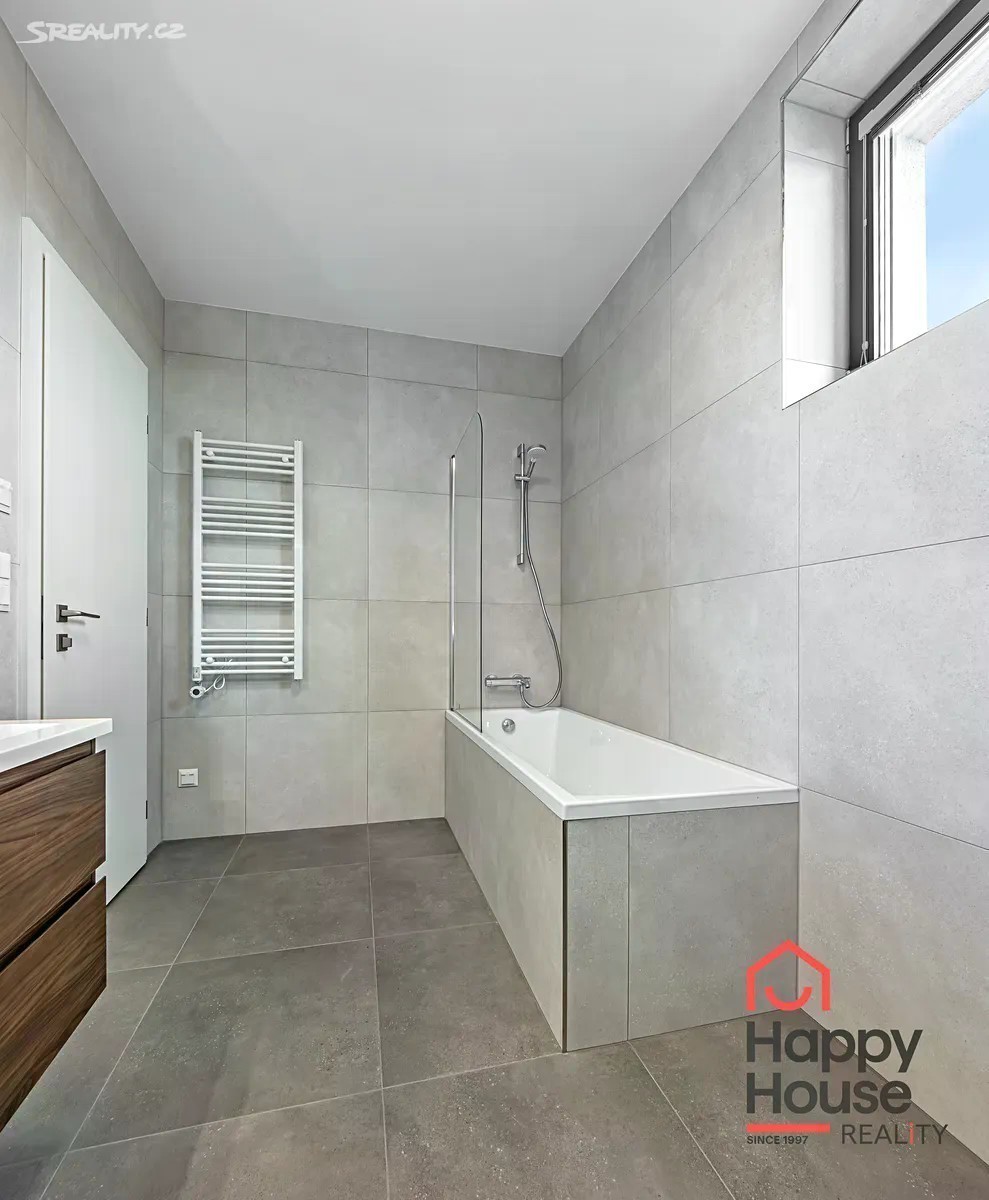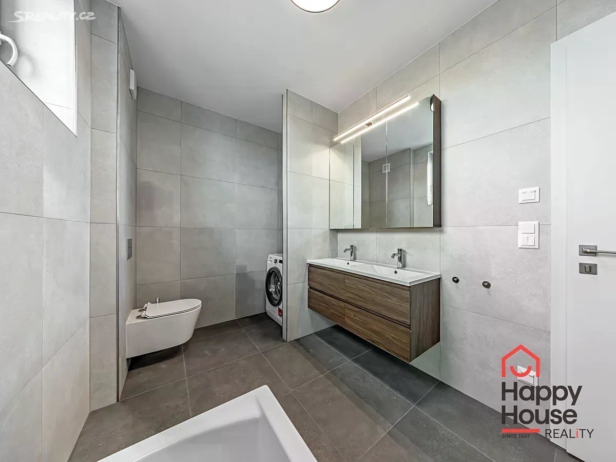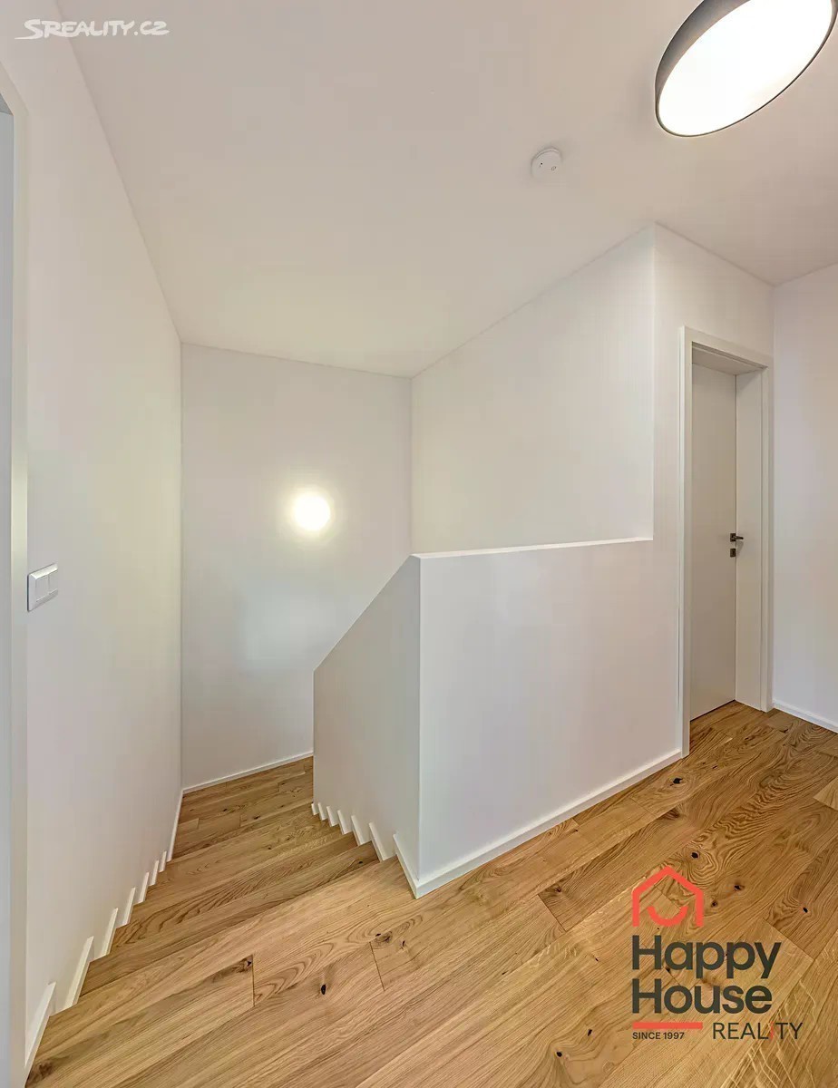 Pronajmeme novostavbu moderního patrového řadového rodinného domu 4+kk (105,2 m2 užitné plochy), která nabízí 2 parkovací stání na vlastním pozemku před domem. Jižně orientovaná zahrada (58,7 m2) s terasou z tropického dřeva a čerstvě vysázenými keři. Na sever je ulice a pole, okrajová zástavba v nově vznikající čtvrti Rezidence Kolovraty v Praze 10. V přízemí domu zádveří 5,89 m2, chodba 5,89 m2, prostorný obývací pokoj 19,5 m2, kuchyňský kout 13,70 m2, koupelna 6,21 m2 (sprchový kout, umyvadlo, WC), technická místnost 2,57 m2 (plynový kondenzační kotel, pračka a příprava na sušičku), komora 1,83 m2 a schodiště. V prvním patře chodba 3,93 m2, koupelna 8,07 m2 (vana, 2 umyvadla, WC) a 3 samostatné ložnice o rozměrech 12,37 m2, 12,13 m2 a 10,1 m2. V nemovitosti byly provedeny nadstandardní klientské změny - dřevěná podlaha a schodiště, předokenní žaluzie (Z profil) - kombinace individuálního a centrálního ovládání, doplněny žebříkové radiátory pro sušení ručníků. Luxusní kuchyně se značkovými spotřebiči - BOSCH, Electrolux, Whirlpool a také nadstandardní koupelnový nábytek - vše výroba na míru. Podlahové topení (plyn. kotel). Městská část Praha Kolovraty je místo jak stvořené pro rodiny s dětmi. Vyhledávaným místem k procházkám je lesopark Prknovka na západní straně Kolovrat jejíž součástí je mezinárodní skautský areál. Lokalita je zároveň velmi štědrá na turistické trasy a cyklostezky. Kolovraty dále nabízejí skvělé volnočasové vyžití. K dispozici je zde desítka dětských hřišť, fotbalové hřiště, tenisové kurty, sportoviště s lezeckou stěnou a Urampou, dále pak tělocvična s posilovnou a cvičebním sálem. V horkých letních dnech můžete navštívit areál s koupalištěm a hřištěm na plážový volejbal. Nejen pro obyvatele Kolovrat se po celý rok koná řada kulturně společenských akcí, např. velikonoční a vánoční jarmark, netradiční sousedské setkání Kolovratský parník, Noc s Andersenem, Běh mezi stromy a Dětský den. Zajít si můžete na koncert nebo literární večer. Samozřejmostí je i v obci dostupná veškerá občanská vybavenost - obchody, služby, restaurace, mateřská a základní škola i ordinace lékaře a lékárna. Z dalších služeb lze zmínit cukrárnu, poštu, AlzaBox, knihovnu a dalo by se ještě dlouho pokračovat. Kolovraty leží na hlavní železniční trati Praha České Budějovice a vedou do ní autobusové linky pražské hromadné dopravy 226 a 227. Jízda vlakem vlakem na zastávky Praha - Vršovice a Praha - Hlavní nádraží a metro C trvá zhruba 23 min, za méně než půl hodiny se tak dostanete do centra Prahy. Jízda autobusem na metzro C Háje trvá asi 26 min. Nájezd na dálnici D1 a také na Pražský silniční okruh je vzdálen jenasi 10 minut jízdy. Poplatky a energie se hradí zvlášť, jistota (vratná kauce) 2x měsíční nájemné. Průkaz energetické náročnosti - třída B.