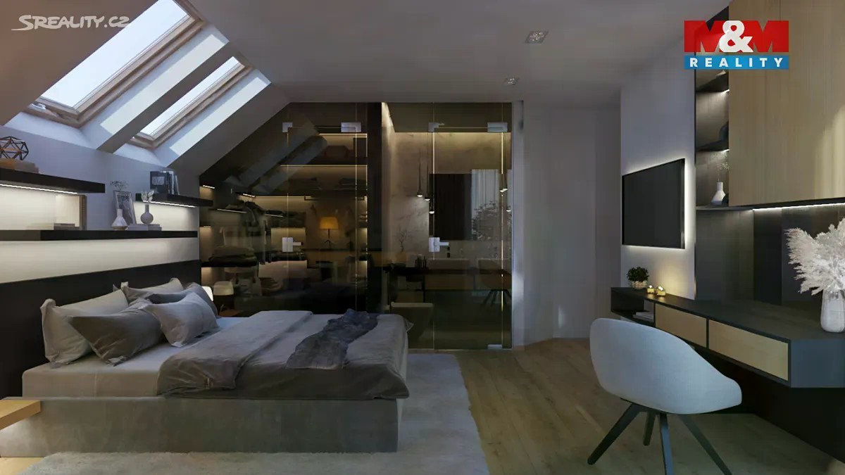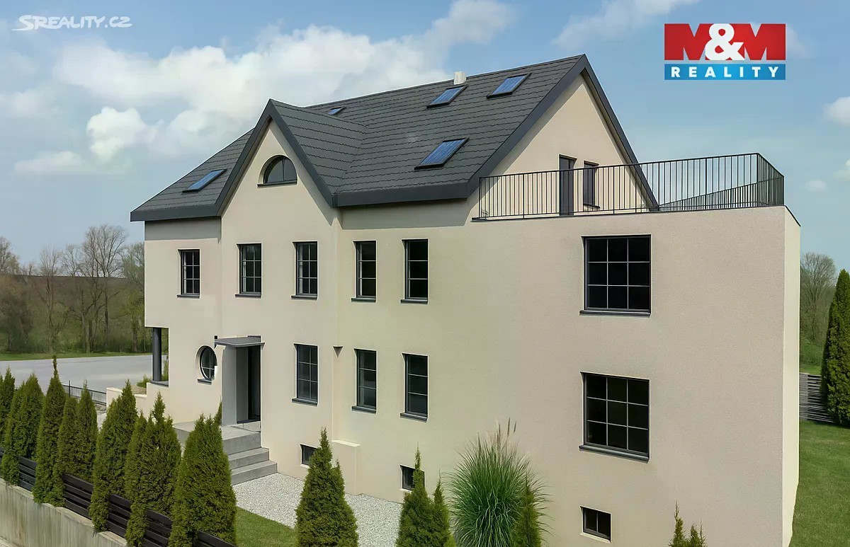 Nabízíme luxusní rezidenční podkrovní byt 4+kk ve vysokém standardu provedení v rámci komorního rezidenčního projektu o pouhých třech bytových jednotkách. Projekt nabízí maximální soukromí, komfort a moderní technologie. Celková plocha bytu činí 154 m² a doplňuje ji prostorná terasa 38 m², balkon 19 m² a sklepní kóje 6 m². Mezonetové podkroví o velikosti 42 m² lze využít jako hernu nebo úložný prostor. Dům je nízkoenergetický díky tepelnému čerpadlu a fotovoltaice na střeše. K bytu náleží jedno garážové i venkovní parkovací stání, sklepní kóje o velikosti 6 m². V celém bytě je teplovodní podlahové vytápění a koupelny jsou kompletně vybaveny včetně podomítkových baterií a veškeré sanity. Kupující má možnost přizpůsobit si interiér svým představám. Součástí projektu je podíl také na soukromém wellness s vířivkou, infrasaunou a finskou saunou, které dotváří luxusní atmosféru celého bydlení. Dokončení stavby: říjen 2026. Byty tohoto typu jsou vzácné, rezervujte si své nové bydlení.