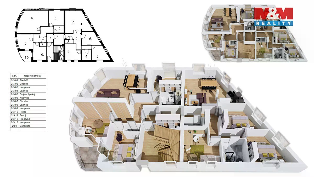 Nabízíme luxusní rezidenční byt 8+1 ve vysokém standardu provedení v rámci komorního rezidenčního projektu o pouhých třech bytových jednotkách. Projekt nabízí maximální soukromí, komfort a moderní technologie. Celková plocha bytu činí 166 m² a doplňuje ji balkon o velikosti 3m². Dům je nízkoenergetický díky tepelnému čerpadlu a fotovoltaikou na střeše. Tato jedinečná nemovitost poskytne budoucím majitelům naprosté soukromí i prestiž. K bytu náleží dvě parkovacím stání, sklepní kóje o velikosti 6 m². V celém bytě je teplovodní podlahové vytápění a koupelny jsou kompletně vybaveny včetně podomítkových baterií a veškeré sanity. Kupující má možnost přizpůsobit si interiér svým představám. Součástí projektu je podíl také na soukromé wellness s vířivkou, infrasaunou a finskou saunou, které dotváří luxusní atmosféru celého bydlení. Dokončení stavby: říjen 2026. Byty tohoto typu jsou vzácné, kontaktujte nás a rezervujte si své nové bydlení včas.