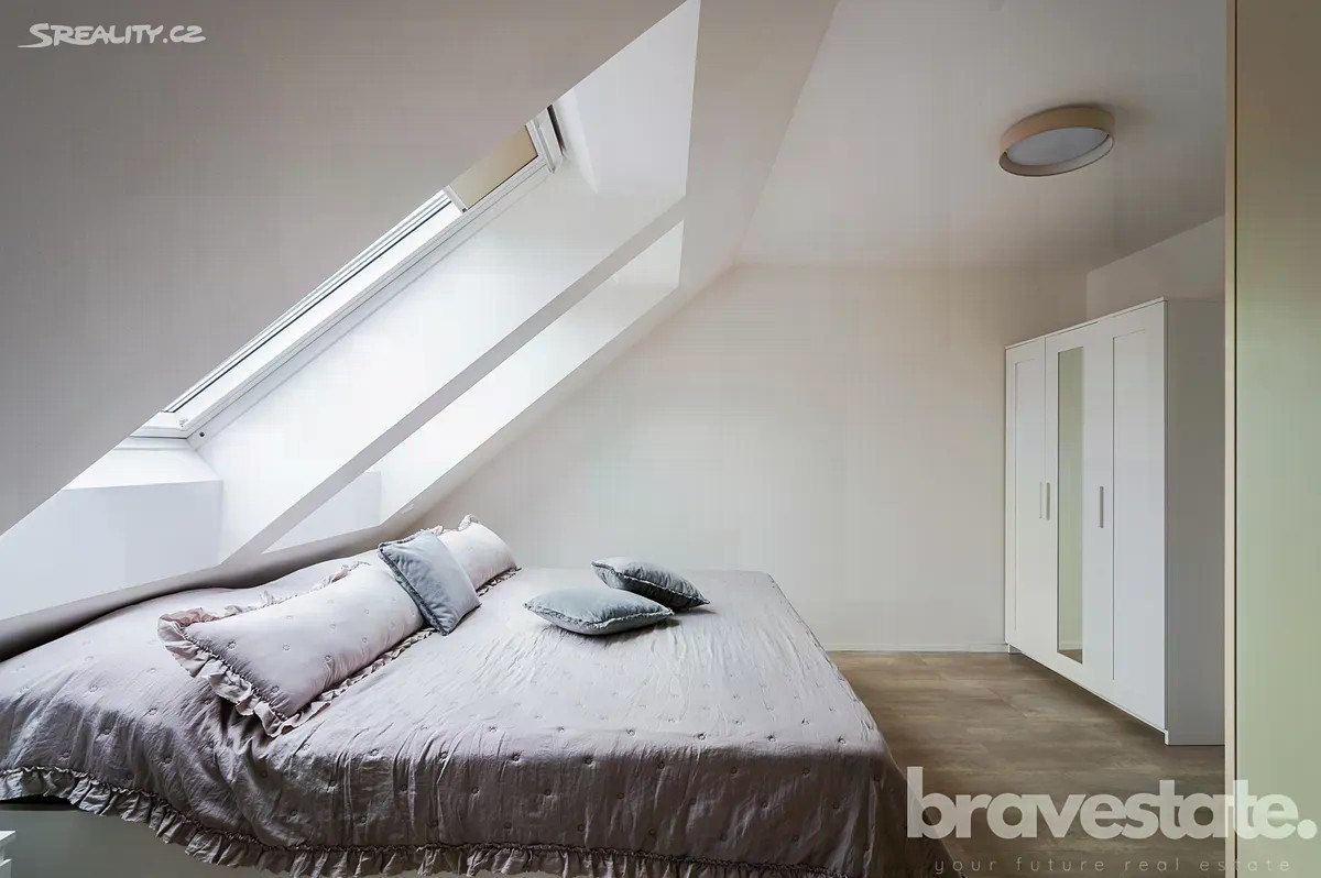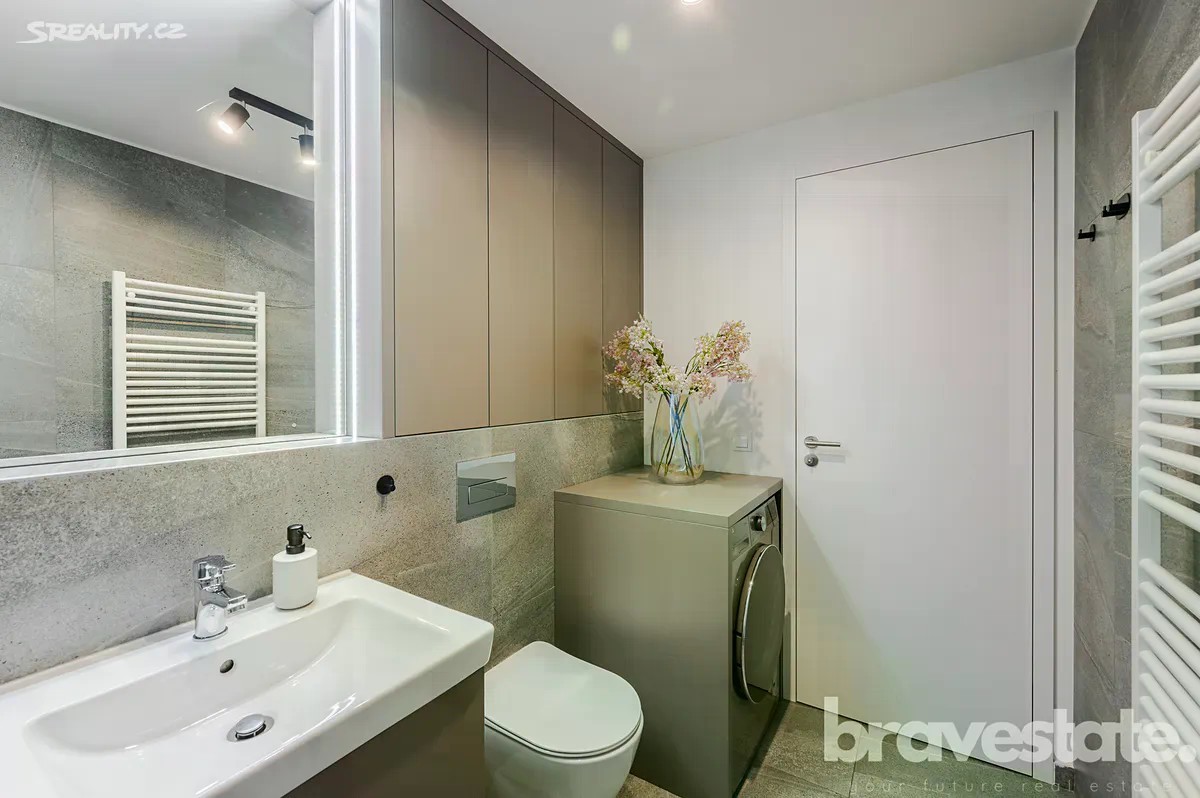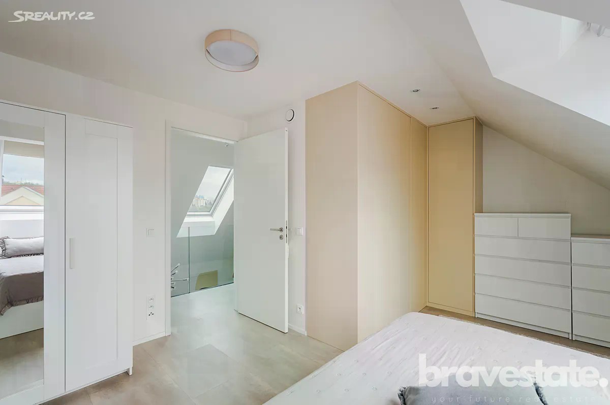 Nabízíme k prodeji krásný, světlý mezonetový byt 3+kk o velikosti 64 m² s balkonem (3 m²), terasou (7 m²) a sklepem (3 m²), který se nachází ve 3. (posledním) patře novostavby z roku 2021 v klidné části Prahy 10 - Záběhlice, ulice V Korytech. Byt zaujme na první pohled svým moderním designem, kvalitními materiály a promyšlenou dispozicí. Díky orientaci na jihovýchod a jihozápad je interiér krásně prosvětlený po celý den. Součástí bytu je vestavěná kuchyňská linka Gorenje se spotřebiči stejné značky, vestavěné skříně v koupelně, WC a ložnici/šatně. O komfortní klima se stará podlahové vytápění, rekuperace a tepelné čerpadlo. Ve spodním podlaží bytu jsou zabudované automatické venkovní žaluzie. V druhém podlaží bytu, konkrétně v ložnici je vnitřní manuální systém stínění. Byt je součástí energeticky úsporné budovy s hodnocením PENB třídy B, což zajišťuje nízké provozní náklady a příjemné vnitřní prostředí po celý rok. V bytě se nachází prostorná předsíň, dětský pokoj/pokoj s balkónem. Koupelna se sprchovým walk-in koutem a umyvadlem. Obývací pokoj s kuchyní s výškou stropu 6 metrů. Z obývacího pokoje je vstup na terasu a schody do druhého plnohodnotného patra bytu. V druhém patře se nachází hlavní ložnice, toaleta a prostorná galerie s pracovnou. K bytu náleží kryté parkovací stání ve dvoře domu a sklep. Dům se nachází v perfektní lokalitě - zastávka autobusu doslova za rohem, veškerá občanská vybavenost v pěším dosahu, školy, školky, obchody i sportovní areál Hamr Záběhlice. Procházku kolem Hamerského rybníka si můžete dopřát za pár minut. Nájezd na Jižní spojku je vzdálený jen cca 2 minuty jízdy autem. Ideální volba pro ty, kdo hledají moderní a pohodlné bydlení v klidné lokalitě s výbornou dostupností do centra a nízkými provozními náklady