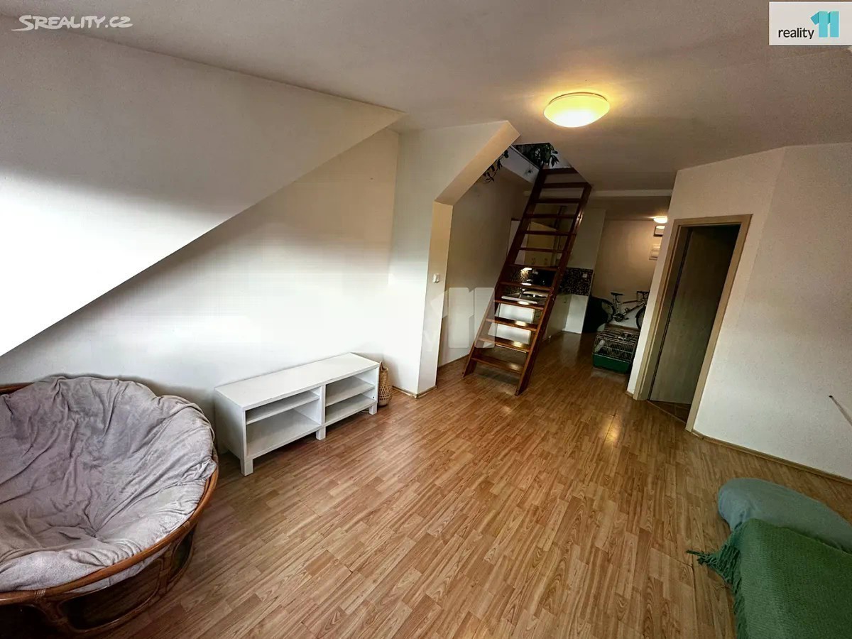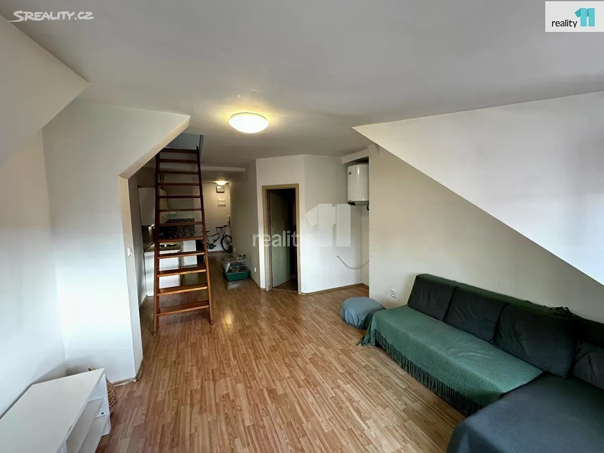Hledáte příjemný menší byt v centru Berouna, ideální pro jednotlivce nebo pár? Nabízíme Vám k pronájmu byt 1+kk+prostorná galerie na spaní, umístěný ve 2. podlaží cihlového domu, přímo u náměstí. Byt je rozdělen na dvě části a má výměru 33,7 m². Ze vstupní chodby, kde je díky výklenkům dostatek prostoru pro lednici i šatní skříň, se vchází do obytného pokoje, ve kterém je menší kuchyňská linka, prostor pro pohovku i stůl. Vedou odtud schody na galerii, kam se bez problémů vejde i větší postel a je zde dostatek denního světla. Koupelna se sprchovým koutem a toaletou. Vlastní elektrický bojler na teplou vodu a elektrické přímotopy. Na podlahách plovoucí podlahy a dlažba. V bytě nebude žádné zařízení - není ani lednice, pračka, varná deska, vše je v režii nájemce. Orientace na západ. Dům má ideální polohu, se skvělou dostupností a občanskou vybaveností. Hledáme zodpovědné, pracující nájemce, se zájmem o dlouhodobý pronájem. Cena 12.000,-Kč/měsíc + zálohy na služby v domě 1.000,-Kč/měsíc + elektřina dle vlastní spotřeby, bude převedena na nájemce. Kauce 13.000,-Kč, provize 12.000,-Kč Ev. číslo: 27864.