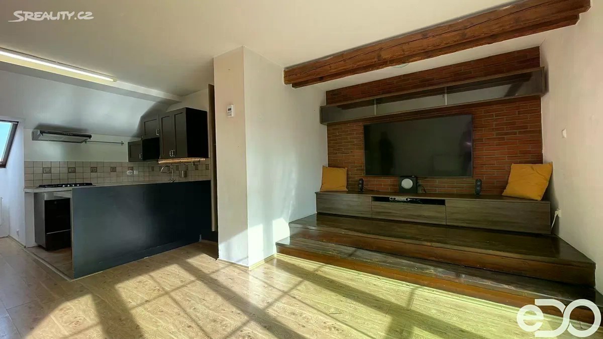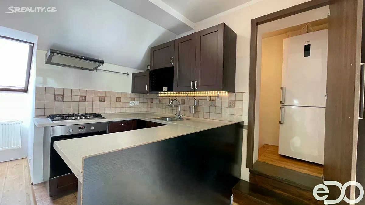 Nabízíme k pronájmu krásný a světlý podkrovní byt o dispozici 3+kk a celkové ploše 95 m², který se nachází ve 3. nadzemním podlaží cihlového domu se šesti bytovými jednotkami. Byt zaujme prostorným obývacím pokojem s kuchyňským koutem, odkud vedou francouzská okna na jižně orientovanou terasu (9 m²) - ideální místo pro ranní kávu nebo večerní posezení. Kuchyňská linka je vybavena základními spotřebiči a komorou (špíží) pro pohodlné uskladnění potravin. Dále byt nabízí ložnici a další samostatný pokoj, oba orientované na jih. Prostorná koupelna je vybavena vanou i sprchovým koutem, toaleta je samostatná. Střešní okna mají zatemňovací rolety, francouzské dveře v obývacím pokoji jsou opatřeny elektrickými žaluziemi. V ložnici i chodbě jsou k dispozici šatní skříně, které poskytují dostatek úložného prostoru. Součástí pronájmu je sklepní kóje. Vytápění i ohřev vody zajišťuje moderní plynový kotel, což přináší nízké provozní náklady. Samozřejmostí je možnost připojení k internetu. Dům se nachází v klidné a příjemné části Kolína IV, pouhých 600 metrů od centra města. V docházkové vzdálenosti je kompletní občanská vybavenost - školy, školky, obchody, restaurace i sportoviště. Parkování je možné přímo u domu. Byt je volný k nastěhování Pro více informací nebo domluvení prohlídky mě neváhejte kontaktovat.