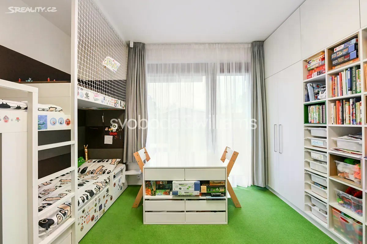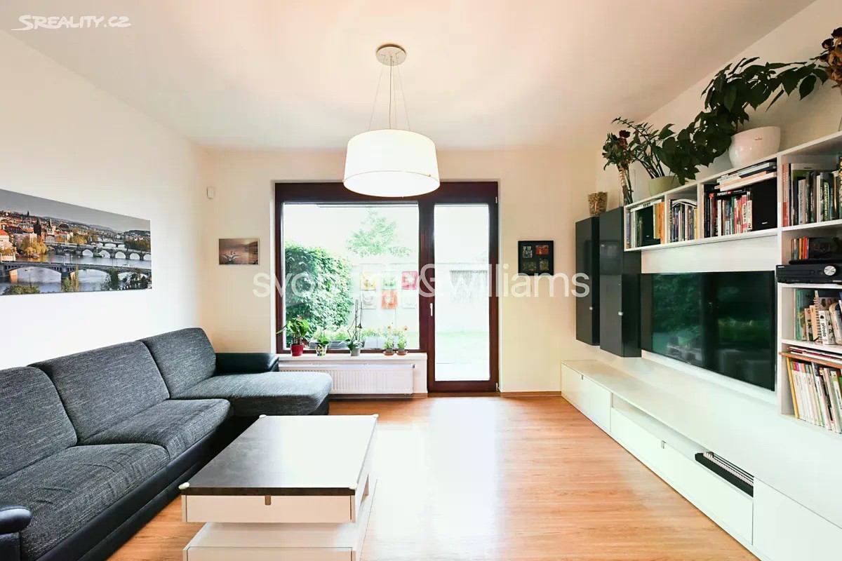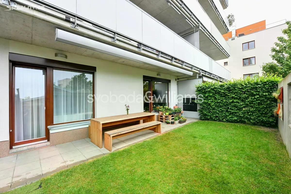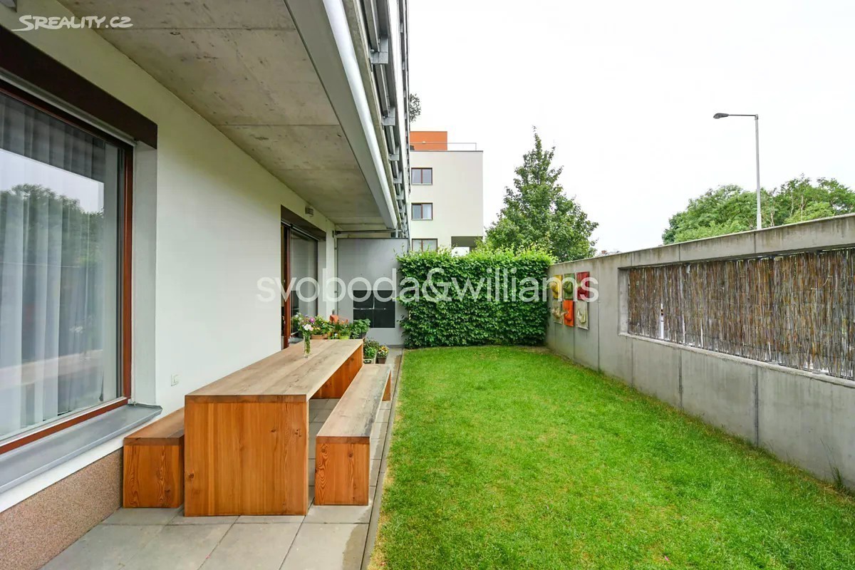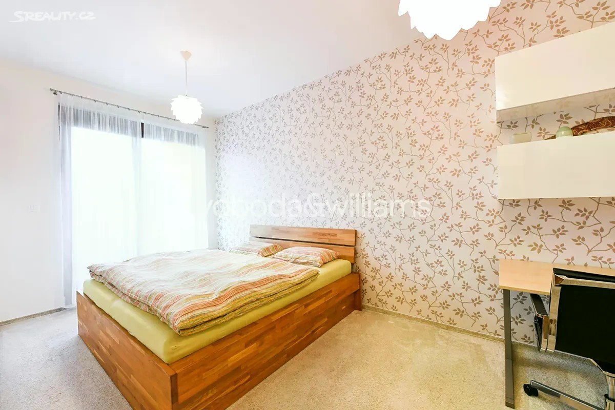 Nabízíme k pronájmu moderní zařízený byt s privátní zahrádkou, situovaný v přízemí novostavby s podzemním parkováním a upraveným vnitroblokem. Budova stojí v klidné rezidenční zástavbě v Praze 4 Braníku 5 minut chůze od lesoparku Hodkovičky, v místě s autobusovými spoji ke stanicím metra Kačerov, Budějovická a nádraží Smíchov, v rychlém dosahu mezinárodní školy The Prague British School. Součástí místní bohaté občanské vybavenosti je OC Novo Plaza, supermarket, školy, školka, dětská hřiště, fotbalový klub, tenisové kurty, cyklostezka a zimní stadion. Interiér tvoří obývací pokoj s plně vybavenou kuchyní a francouzským oknem s přístupem na terasu / zahradu, ložnice s vybavenou šatnou a druhá ložnice s vestavěnou skříní, knihovnou a 2 dětskými postelemi. Dále je v bytě koupelna (vana, sprchový kout), komora, samostatná toaleta a vstupní chodba s vestavěnou skříní. Obě ložnice mají také přístup na terasu / zahradu. Vinylové podlahy, dlažba, koberec, elektricky ovládané předokenní rolety a markýza, rozkládací sedačka, centrální vytápění, podlahové vytápění v koupelně, pračka, sušička, myčka, indukční varná deska a 14 m2 velká skladová místnost na zahradě. V ceně je zahrnuto 1 garážové stání.