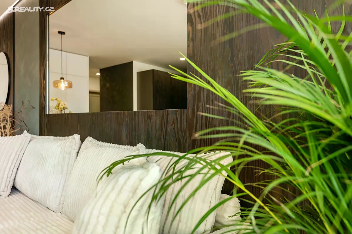 Dovolte mi Vám nabídnout náš nový projekt, byt s dispozici 4+kk v ulici Kremličkova, Kolín II, nacházející se v nejatraktivnější části města Kolína z hlediska bytového bydlení. V blízkosti u domu naleznete veškerou občanskou vybavenost - obchody, restaurace, dětská hřiště, sportovní hřiště, školy, školky a při tom jste na dosah od přírody a oblíbených vycházkových cílů Kolíňáků, jako je údolí s rybníkem Peklo, lokalita U Vodárny, Štítarské údolí a další. Byt je orientovaný na jižní a severní světovou stranu a nachází se ve 3.NP, disponuje užitnou plochou o velikosti 73 m², k tomu zasklenou prostornou lodžií (6 m²) a sklepní kójí (2 m²) v celkovém součtu cca 81 m². Sám o sobě je prostor velmi světlý a vzdušný, z tohoto důvodu jsme si mohli dovolit elegantní tmavý charakter designových prvků a použitých materiálů, které bytu dodávají útulnost snoubenou s elegancí. Pro tento charakter jsme použili tmavé designové dřevěné dekorační desky od Eggeru Cleaf Millennium v kombinaci s italskou hnědo šedou zeminou a kašmírovými dveřmi. Tento zajímavý charakter jsme zakomponovali i do kuchyňské vestavěné linky na míru. Jak je naším zvykem, z originálního bytu zůstal pouze obvodový skelet, tedy celý byt byl znovu nově vytvořen a dispozičně uspořádán do podoby 4+kk. Takřka veškeré příčky jsou z plynosilikátových tvárnic kromě příčky mezi ložnicí a dětským pokojem, která zůstala panelová. Elektrické, vodovodní, odpadní a slaboproudé sítě (koaxiální, datové UTP kabely) byly nově nainstalovány, tak aby vyhovovali i náročnému uživateli. V celém bytě jsou nainstalovány led panely či dálkově ovládané led ambiente osvětlení, které osvětlují byt s velmi úspornou spotřebou el. energie. Podlahová krytina zde byla zvolena - lepený velkoformátový vinyl aplikovaný na calciosulfátovou nivelační stěrku. Veškeré omítky jsou 3vrstvé (lepidlo + perlinka, lepidlo, štuk či sádrový podklad pro italské designové stěrky), celý byt má stropy ze sádrokartonových desek Knauf. Koupelna navazuje na celý design bytu a proto zde byly použity kašmírovo béžové velkoformátové dlaždice německého výrobce Nord ceram 60 x 120 cm se zakomponovanou vanou se sprchovou zástěnou a černými bateriemi. Díky svému rozměru a velkému formátu zrcadla na míru působí koupelna velmi prostorně a draze. Byt je takřka připravený pro bydlení. Veškeré vybavení viz. foto - sedačka, jídelní a konferenční stůl, koberec, obrazy, kuchyňská linka vyrobena na míru včetně spotřebičů a potravinové skříně (vestavěná lednice, myčka, el. varná deska, el. trouba, mikro. trouba, digestoř) nabízí spoustu úložného prostoru pro každého kuchaře. Dále je byt vybavený vestavěnými skříněmi na míru, které dotváří připravenost celému bytu. Budu se těšit na případné setkání s Vámi na této nemovitosti a rád Vám ji představím.