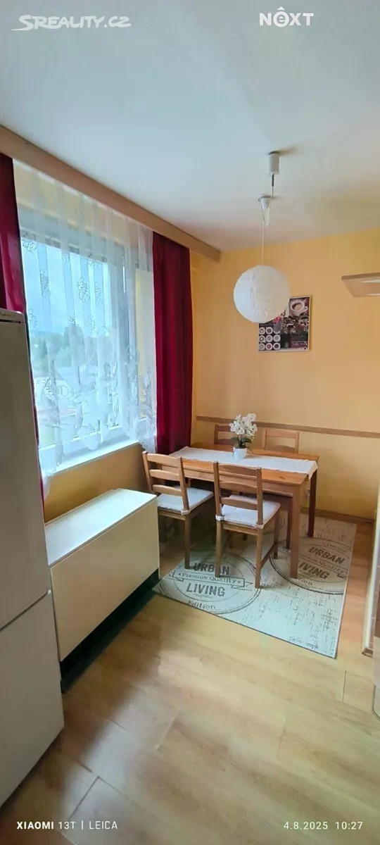 Nabízíme k pronájmu prostorný byt o dispozici 3 + 1, který se nachází v atraktivní lokalitě s veškerou občanskou vybaveností v dosahu. Byt se nachází ve 4. nadzemním podlaží panelového domu se čtyřmi podlažími bez výtahu. Celková užitná plocha bytu činí 80 m². Byt je v osobním vlastnictví a je ideální volbou pro rodinu bez zvířecích mazlíčků, hledajících pohodlné bydlení. Byt je vytápěn vlastním elektrickým topením, které zajišťuje příjemnou tepelnou pohodu po celý rok. Byt je kompletně vybaven, zaručuje komfortní bydlení bez nutnosti dalších investic do zařízení. Kuchyně je plně zařízená moderními spotřebiči, které usnadní každodenní přípravu pokrmů. Obývací pokoj je prostorný a nabízí dostatek místa pro odpočinek i zábavu. V ložnicích naleznete dostatek úložných prostor a pohodlné postele pro klidný spánek. Byt je dobře udržovaný a připravený k nastěhování dle dohody, (prosinec, leden) což poskytuje dostatek času na plánování a přípravu stěhování. Pokud hledáte klidné bydlení s veškerým komfortem a výhodnou polohou, je tento byt ideální volbou. Dopravní dostupnost je vynikající, v blízkosti se nachází dálnice i zastávky MHD a autobusů, což zajišťuje snadný a rychlý přístup do centra města i okolních oblastí. Tato nemovitost je situována v klidné části města, avšak v blízkosti naleznete řadu restaurací, které jsou dostupné do 1,5 km. Pokud hledáte pronájem, který kombinuje výhodnou polohu s komfortním bydlením, tento byt je pro vás ideální volbou. Neváhejte nás kontaktovat pro více informací nebo pro domluvení prohlídky této skvělé nemovitosti. Pro komunikaci uvádějte evidenční číslo zakázky N114659.