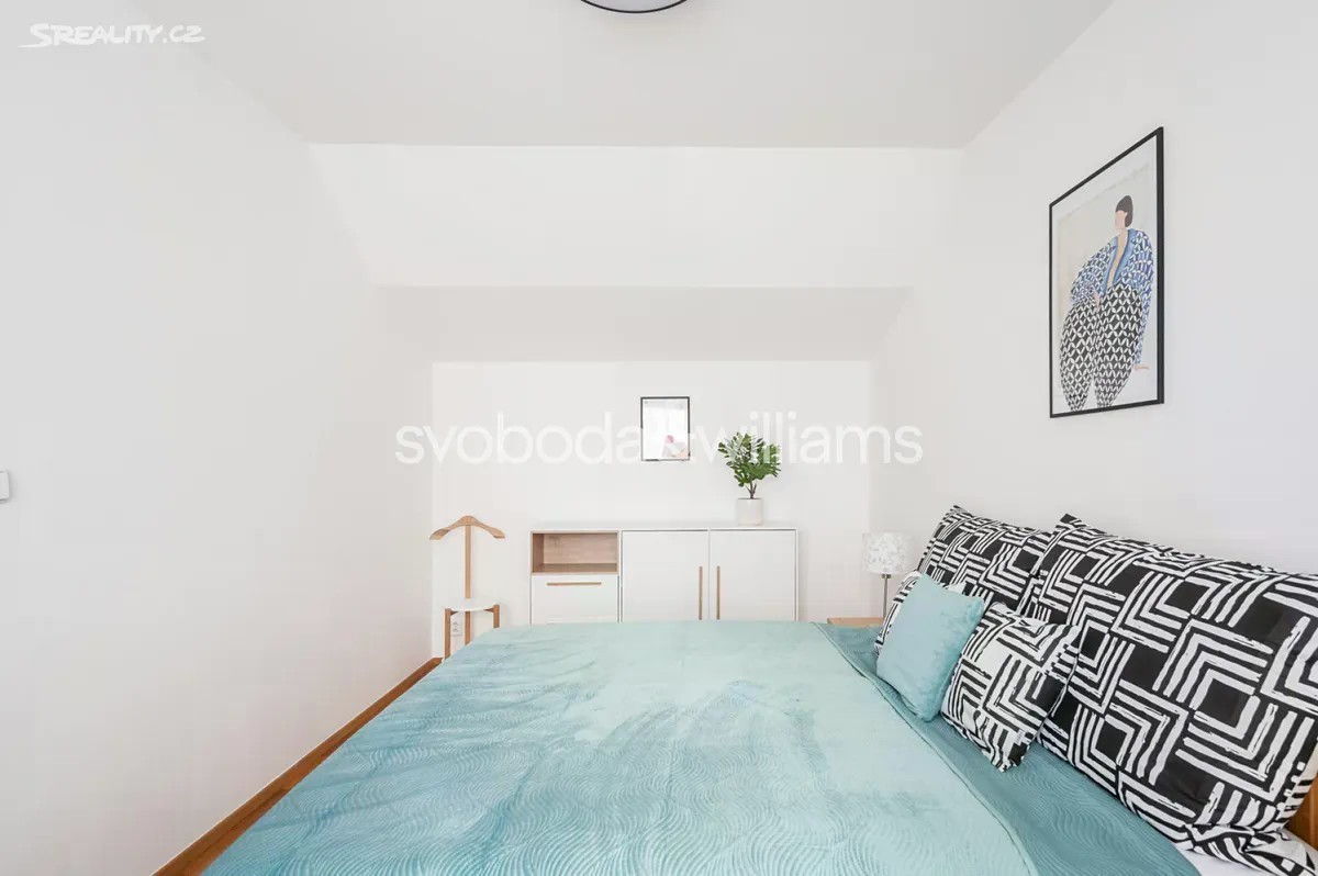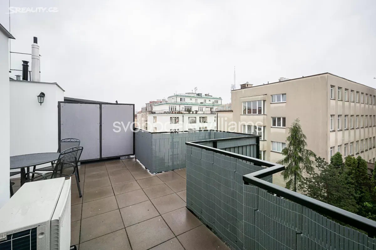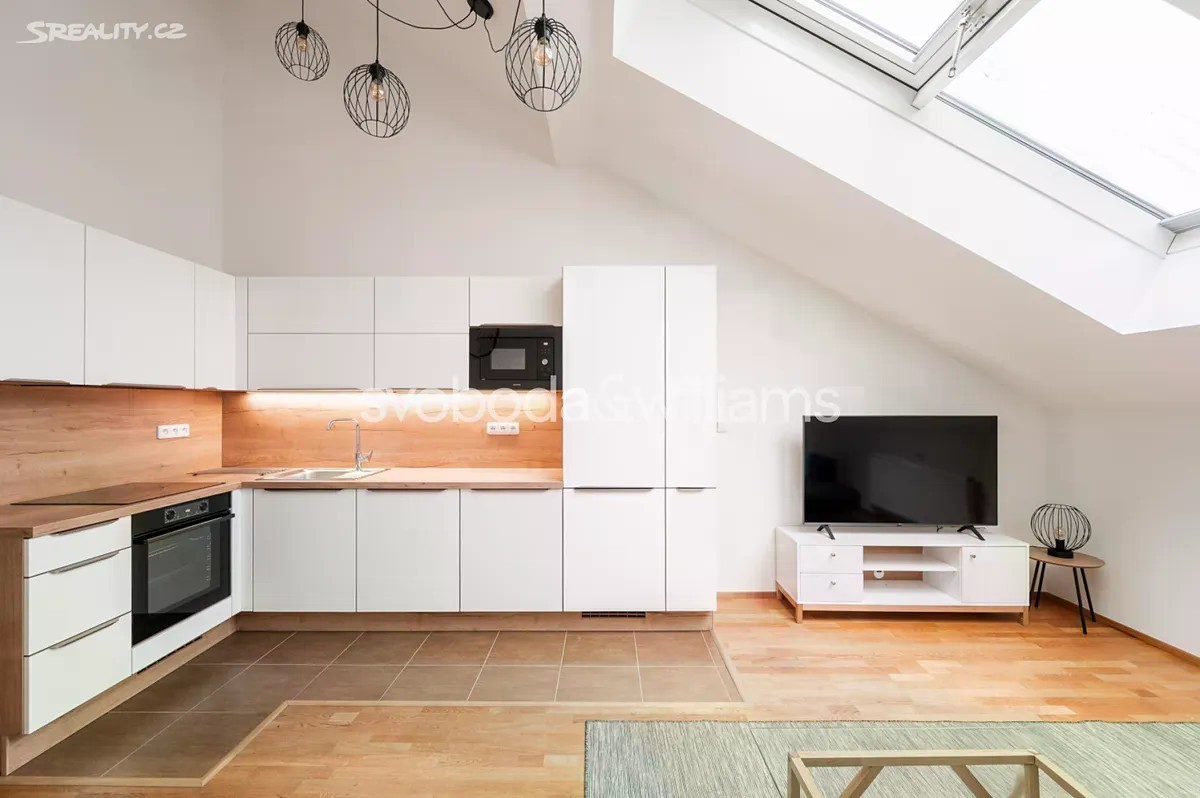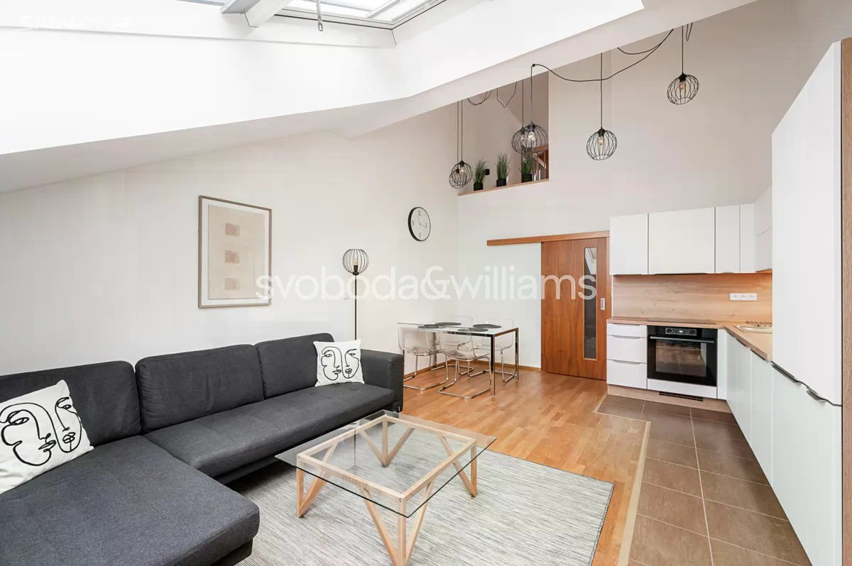 Plně zařízený, klimatizovaný, podkrovní mezonetový byt s velkou terasou a 2 koupelnami, situovaný ve 4. patře zrekonstruovaného klasického činžovního domu s výtahem. Dům se nachází v klidné ulici pár minut chůze od zastávek autobusů a tramvají, 5 minut jízdy do centra, v pěším dosahu parků Vítkov, Parukářka a Riegrových sadů. Ve spodní úrovni bytu se nachází obývací pokoj s plně vybavenou kuchyní a ateliérovým oknem, 1 ložnice s pracovním koutem, šatna / komora, koupelna se sprchovým koutem, toaleta s bidetovou sprškou a vstupní hala. V patře je otevřená galerie / hala, 2. ložnice, koupelna s vanou, bidetem a toaletou a malá pracovna. Terasa s krásným výhledem do upravených zahrad ve vnitrobloku je přístupná z haly a ložnice. Dřevěné podlahy, bezpečnostní vstupní dveře, plynový kotel, předokenní žaluzie, pračka, myčka, TV, satelitní připojení, zahradní nábytek. K dispozici od ledna 2026, po dohodě možno dříve (prosinec 2025).