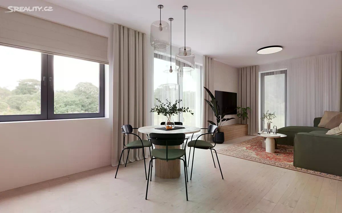 Exkluzivní byt 3+kk s vlastní zahradou a střešní terasou Úhonice Představujeme vám jedinečný byt 3+kk o rozloze 83,7 m, který je součástí moderní novostavby v klidné obci Úhonice. K bytu náleží soukromá zahrada o velikosti 177 m, prostorná střešní terasa o 30 m a dvě parkovací stání. Nachází se v prvním patře elegantního viladomu, který vyniká nadčasovým designem a komorní atmosférou. Dispozice bytu je promyšlená do posledního detailu. Dvě ložnice poskytují dostatek soukromí a klidu pro odpočinek. Prostorný obývací pokoj plynule navazuje na kuchyňský kout, což vytváří ideální prostor pro rodinný život i společenská setkání. Koupelna je vybavena vanou i sprchovým koutem, nechybí ani samostatná technická místnost s úložným prostorem. Střešní terasa nabízí výhled do okolní krajiny a představuje dokonalé místo pro relaxaci, grilování nebo večerní posezení. Byt je vybaven ve vysokém standardu dřevěné podlahy, příprava na chytrou domácnost a další nadstandardní prvky zajišťují komfortní a bezstarostné bydlení. Viladům se nachází na posledním zastavitelném pozemku v Úhonicích, odkud se otevírá výhled do malebné krajiny. Omezený počet bytových jednotek garantuje klidné prostředí a maximální soukromí. Úhonice jsou ideálním místem pro život. Leží pouhých 20 minut od centra Prahy a nabízejí kompletní občanskou vybavenost, výbornou dopravní dostupnost i blízkost přírody. Právě tato kombinace činí Úhonice jednou z nejvyhledávanějších lokalit pro moderní bydlení. Byt je nabízen bez provize přímo od developera. Neváhejte a domluvte si prohlídku s naším obchodním specialistou, panem Martinem Nedomou. Tento byt může být vaším novým domovem.
