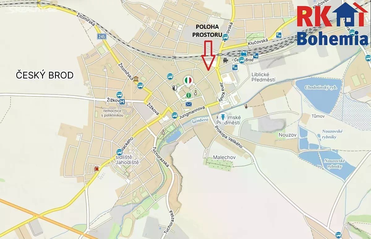 Nabízím Vám k pronájmu flexibilní nebytový prostor v těsné blízkosti centra města Český Brod, v ulici Krále Jiřího. Díky své poloze a dispozici je nemovitost vhodná pro širokou škálu využití jako kancelář, ordinace, obchodní prostory, skladovací prostory nebo cokoli jiného, co vaše podnikání potřebuje! Ideální volba pro ty, kteří chtějí mít sídlo firmy či provozovnu v dobře dostupné lokalitě s nízkými náklady na dojíždění do metropole i regionálního centra. Jedná se prostor s celkovou výměrou cca 39,5 m2, který se nachází v přízemí vnitrobloku, což zajišťuje klid, ale zároveň skvělou dostupnost. Skládá se ze zádveří (3,9 m2), koupelny se sprchovým koutem a s WC (5,6 m2), hlavní místnosti s kuchyňskou linkou (21 m2) a skladu (9 m2). Součástí kuchyňské linky je kombinovaný sporák a dřez. Topení je řešeno kamny WAV a v koupelně elektrickým přímotopem. Okna jsou plastová, opatřena mřížemi. Na podlahách je položena dlažba. Měsíční nájemné činí 12.000,- Kč + měsíční poplatky (500,- Kč/voda). Odběr elektrické energie a plynu bude převeden přímo na nájemníka. Dopředu je majitelem požadována kauce ve výši 24.000,- Kč a provize RK je ve výši 14.520,- Kč. Po domluvě si je možné pronajmout 1 parkovací stání ve dvoře za poplatek 1.000,-Kč za měsíc. Prostor je ihned volný k nastěhování. V Českém Brodě je veškerá občanská vybavenost: školy, školky, banky, pošta, obchody, zdravotnictví, restaurace, supermarkety, kulturní a sportovní vyžití, služby atd. Je odtud výborné spojení do Prahy vlakem (35 min. na Masarykovo nádraží) nebo autem (do 20 min. po D11 na Černý Most). V případě jakýchkoliv dotazů, případně sjednání prohlídky mě, prosím, neváhejte kontaktovat, a to v pracovní dny od 9:00 do 18:00.