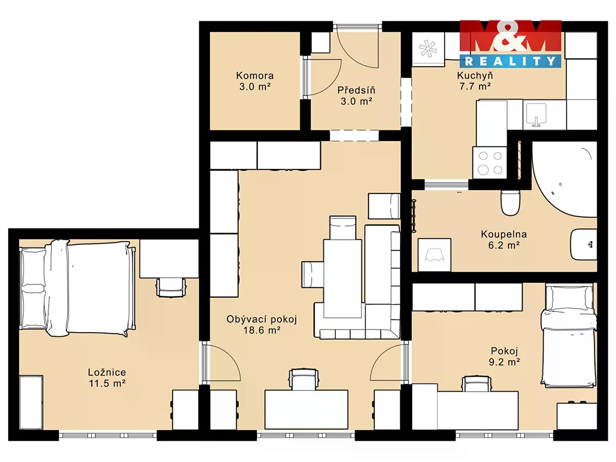 Prodej bytu 3+1 60 m² Větrná, České Budějovice - České Budějovice 2
