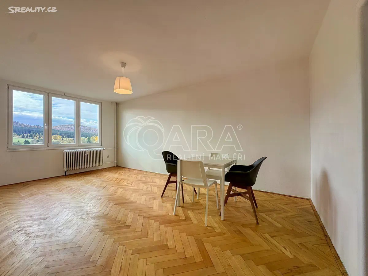 Dobrý den, společně s majiteli hledáme nového, spolehlivého a slušného nájemce do tohoto udržovaného a příjemně dispozičně řešeného bytu 2+1 o velikosti 49 m², který se nachází ve 3. nadzemním podlaží (III. NP) čtyřpodlažního domu bez výtahu v klidné části obce Lenora, v srdci Šumavy. Lenora je vyhledávaná lokalita díky své poloze uprostřed šumavských lesů, v blízkosti řeky Teplé Vltavy a řady turistických cílů. Okolí nabízí ideální podmínky pro turistiku, cyklistiku, houbaření i zimní sporty. V zimě jsou v dosahu běžecké tratě a menší lyžařské areály, v létě pak krásné trasy pro pěší výlety a projížďky přírodou. Obec disponuje základní občanskou vybaveností a příjemnou komunitní atmosférou, přičemž větší služby a obchody naleznete ve Volarech (10 minut jízdy) nebo v Prachaticích (25 minut jízdy). Na hraniční přechod Strážný směrem do Německa je to přibližně 20 kilometrů, díky čemuž je Lenora oblíbenou volbou také pro pendlery do Bavorska. Díky spojení klidného šumavského prostředí s dobrou dostupností větších měst i hranic je Lenora ideálním místem pro trvalé i přechodné bydlení v čisté přírodě. Bytová jednotka je ve velmi dobrém stavu a ihned k nastěhování. Dispozici tvoří vstupní chodba s velkou skříní, kuchyň s přístupem na balkon, obývací pokoj s hezkým výhledem do přírody, ložnice a koupelna s vanou a toaletou. Balkon vám poslouží jako praktický doplněk k bytu na věšení prádla, popřípadě pro vaší malou zahrádku, a nebo pro odpolední kávu. Kuchyň je vybavena novou linkou, pračkou, troubou a varnou dvouplotýnkovou deskou. Podlahy tvoří zrepasované parkety a plovoucí podlaha. K bytu náleží prostorná sklepní kóje, která nabízí další úložný prostor pro sportovní, kolo nebo sezónní vybavení. Dům je mimo jiné vybaven kolárnou a sušárnou. Dům je napojen na obecní vodovod a kanalizaci. Vytápění a ohřev vody zajišťuje centrální plynová kotelna, elektrická energie zůstává psaná na majitele, není nutný přepis. Parkování je možné přímo před domem. V případě potřeby připojení internetu si nájemce vše zajistí sám. Byt nabízí praktické, pohodlné a klidné bydlení vhodné pro jednotlivce, pár nebo menší rodinu. Obec i okolí poskytují příjemné prostředí s dostatkem zeleně, čistý vzduch a možnost aktivního odpočinku v přírodě. Měsíční nájemné činí 10.800 Kč, zálohy na služby (pro 2 osoby) 4.700 Kč a vratná kauce 15.000 Kč. Provize RK ve výši jednoho nájmu + DPH 21 % se hradí při rezervaci bytu. Do bytu hledáme solidního a spolehlivého nájemce, který ocení klidné bydlení v krásném prostředí Šumavy. Pokud vás tato nabídka zaujala a vidíte se jako vhodní zájemci, neváhejte nás kontaktovat a domluvte si prohlídku. Těšíme se na slyšenou i na viděnou, Bartlgroup