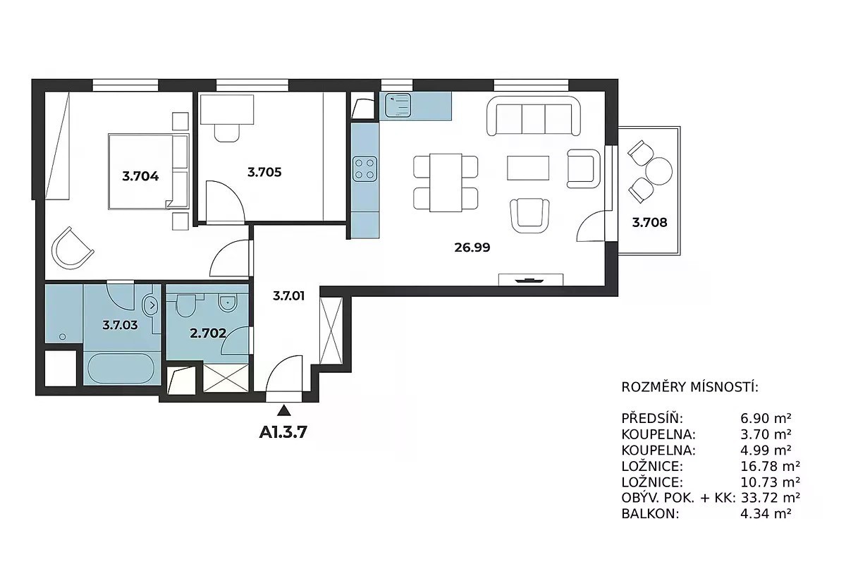 Prodej bytu 3+kk s balkonem, sklepem a parkovacím stáním - Praha 5, ul. Za Mototechnou Nabízíme k prodeji moderní byt o dispozici 3+kk v novostavbě projektu Nad Motolským hájem, situovaný v klidné části Prahy 5 - Motol. Byt se nachází v atraktivní lokalitě s výbornou dostupností do centra a kompletní občanskou vybaveností v okolí. Součástí nabídky je balkon s výhledem na Prahu, sklepní kóje a vlastní podzemní parkovací stání umístěné přímo naproti výtahu, což výrazně usnadňuje každodenní využívání. Interiér bytu je navržen v minimalistickém stylu s důrazem na světlo, prostor a funkčnost. Obývací pokoj s kuchyňským koutem je propojen s balkonem, který nabízí příjemné posezení s výhledem do zeleně i na město. Kuchyně je vybavena moderními vestavěnými spotřebiči a výrazným barevným obkladem. Ložnice i další pokoj jsou světlé, s dostatkem úložného prostoru. V bytě se nachází dvě koupelny - jedna s vanou, druhá se sprchovým koutem, což výrazně zvyšuje komfort pro rodinu i návštěvy. V předsíni se nachází vestavěné skříně a zrcadlové dveře, které opticky zvětšují prostor. Byt je vybaven plovoucími podlahami, izolačními dvojskly, bezpečnostními dveřmi, domovním telefonem, přípravou pro automatickou pračku a dalšími prvky standardního vybavení. K bytu náleží sklepní kóje a parkovací stání v garáži s dálkovým ovládáním. Dům má dva samostatné vstupy, což zajišťuje pohodlný přístup z různých stran objektu. K dispozici jsou také dvě kolárny a samostatná místnost pro uložení bobů či sportovního vybavení, což ocení zejména rodiny s dětmi nebo aktivní obyvatelé. Lokalita vyniká klidným prostředím plným zeleně, v blízkosti se nachází autobusová zastávka s rychlým spojením na metro B (Stodůlky, Hůrka, Nové Butovice). V okolí jsou školy, školky, lékárny, nemocnice, obchody, restaurace, golfové hřiště i dětská hřiště. V případě zájmu o prohlídku nebo více informací nás neváhejte kontaktovat. Tento byt představuje ideální kombinaci moderního bydlení, přírody a městské dostupnosti.