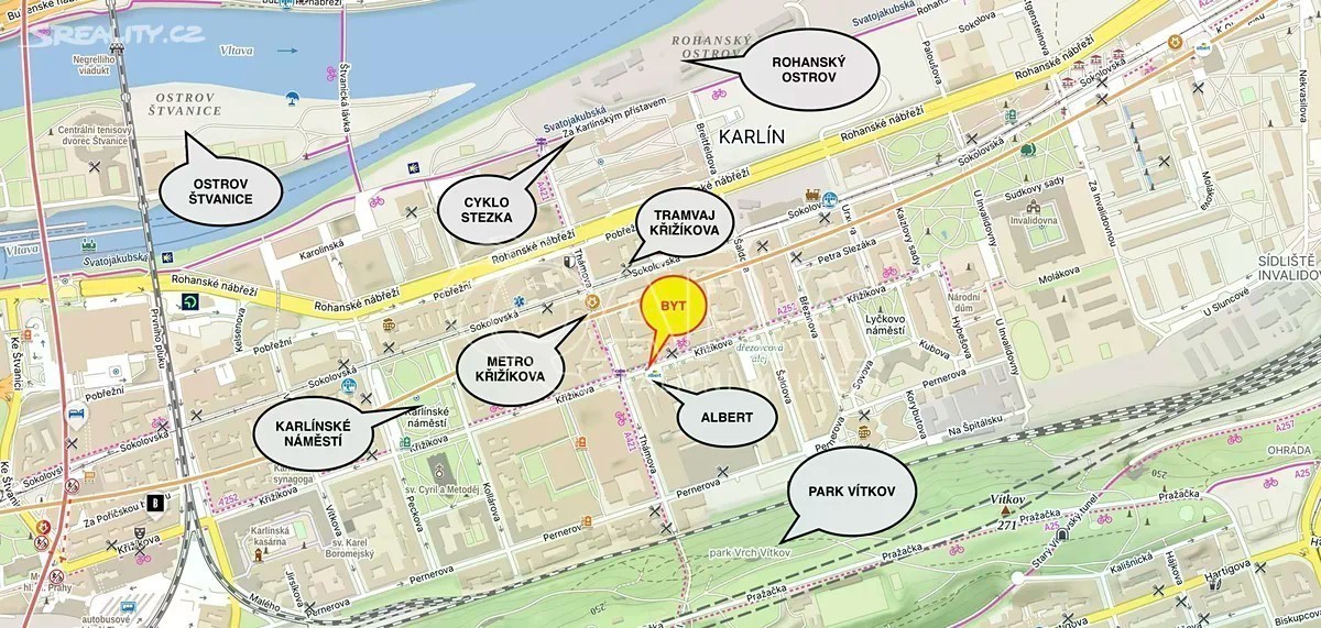 Stylový byt 2+kk po rekonstrukci v srdci Karlína - ihned k nastěhování Hledáte moderní bydlení s duší v jedné z nejžádanějších pražských lokalit? Tento krásný, kompletně zrekonstruovaný byt 2+kk o velikosti 49 m² se nachází ve 4. patře domu s výtahem v samém srdci Prahy 8 - Karlína. Byt je připraven k okamžitému nastěhování a díky promyšlené rekonstrukci nabízí útulný a elegantní prostor pro život. Proč právě tento byt? ✔️ Citlivě zrekonstruovaný interiér s důrazem na detail ✔️ Klidné bydlení v domě s výtahem ✔️ Ideální pro jednotlivce nebo pár ✔️ Skvělá poloha a atmosféra Karlína ✔️ Klimatizace Karlín je dnes symbolem moderního městského života - nabízí jedinečnou kombinaci historie, designu a kultury. Jen pár minut od bytu najdete: ✔️ Stanici metra a tramvaj Křižíkova - vše doslova za rohem ✔️ Rohanský ostrov - ideální místo pro sport, běh či piknik u vody ✔️ Park na Vítkově s úžasnými výhledy na Prahu ✔️ Desítky stylových restaurací, kaváren a bister - od legendární Eska po Můj šálek kávy ✔️ Karlínské divadlo a Kasárna Karlín - oblíbené místo kulturního dění Tato lokalita nabízí dokonalou rovnováhu mezi ruchem města a klidem přírody. Nájemné: 26.500 Kč ✔️ Zálohy na služby 5.000 Kč (1.000 Kč vodné + 4.000 Kč elektřina, odvoz odpadu, osvětlení, výtah, úklid spol. prostor) ✔️ Vratná kauce 53.000 Kč ✔️ Internet není součástí pronájmu ✔️ Provize RK 26.500 Kč + 21 % DPH = 32.065 Kč Zavolejte a domluvte si prohlídku: Markéta Beránková ********* Stylish 1-Bed + Kitchenette in the Heart of Karlín - Move-in Ready Looking for modern living with character in one of Prague's most sought-after neighborhoods? This beautiful, fully renovated 1-bedroom apartment (49 m²) is located on the 4th floor of a building with an elevator in the heart of Prague 8 - Karlín. It's ready for immediate move-in and, thanks to a thoughtful renovation, offers a cozy and elegant living space. Why this apartment? ✔️ Tastefully renovated interior with attention to detail ✔️ Quiet living in a building with an elevator ✔️ Ideal for a single person or a couple ✔️ Prime Karlín location and atmosphere ✔️ Air conditioning Karlín is a symbol of modern urban life-offering a unique blend of history, design, and culture. Just minutes from the apartment you'll find: ✔️ Křižíkova metro and tram stops-right around the corner ✔️ Rohanský ostrov-perfect for sports, running, or picnics by the water ✔️ Vítkov Park with stunning views of Prague ✔️ Dozens of stylish restaurants, cafés, and bistros-from the legendary Eska to Můj šálek kávy ✔️ Karlín Musical Theatre and Kasárna Karlín-popular cultural hubs This location offers the perfect balance between city buzz and peaceful living. Rent: 26,500 CZK ✔️ Utilities: 5,000 CZK (1,000 CZK water + 4,000 CZK electricity, waste, lighting, elevator, cleaning of common areas) ✔️ Refundable deposit: 53,000 CZK ✔️ Internet not included ✔️ Agency fee: 26,500 CZK + 21% VAT = 32,065 CZK Markéta *********