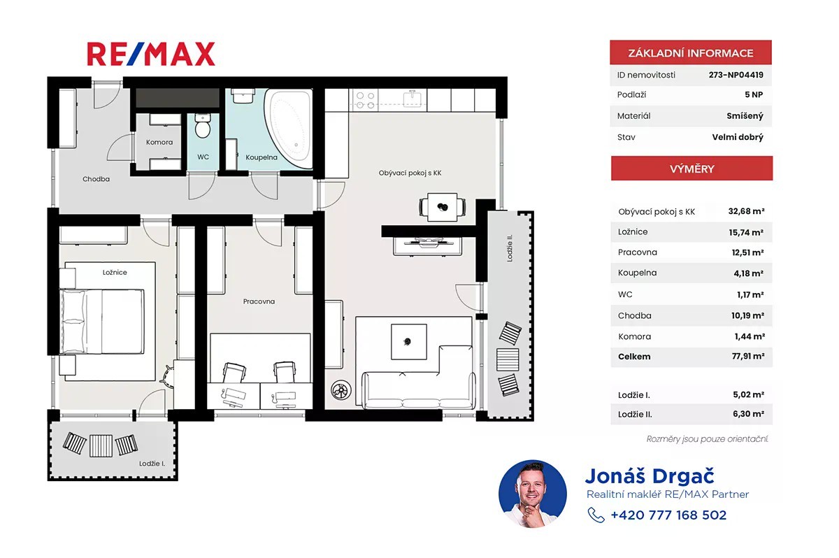 Nabízíme k prodeji světlý a precizně zrekonstruovaný byt 3+kk se dvěma balkony, velkým sklepem o velikosti 7,3 m² (v přízemí hned u parkovacího stání) a nadrozměrným garážovým stáním v oblíbené lokalitě Nová Harfa - Praha 9, Vysočany. Byt prošel kompletní moderní rekonstrukcí s důrazem na kvalitu, funkčnost a detail. Kuchyňská linka Hanák na míru, spotřebiče AEG, smart myčka, chytrá domácnost s ovládáním světel a klimatizace s AI ovládaná na dálku. Koupelna i interiérové dveře Sapeli jsou sladěné v elegantním tónu dřeva, podlahy z masivního dubu a ořechu dodávají bytu útulný, ale zároveň reprezentativní charakter. Samozřejmostí jsou bezpečnostní a protipožární dveře NEXT třídy 3. Celý objekt je zabezpečen kamerovým systémem a 24/7 ostrahou, vstup je pouze pro rezidenty. Dispozice bytu je praktická a dobře odděluje denní a noční část. Obývací prostor s kuchyňským koutem má vstup na jeden z balkonů, dvě ložnice pak nabízejí klid a soukromí a z jedné z nich je vstup na druhý balkon. K bytu patří také komora přímo v bytě. V bytě je příjemné světlo po celý den a měsíční náklady na bydlení činí přibližně 6 800 Kč. Lokalita Nová Harfa je dlouhodobě vyhledávaná pro svůj klid, zeleň a výbornou dostupnost do centra - pár minut chůze tramvaj, vlakové nádraží Libeň nebo metro B. Přímo u domu vede cyklostezka podél Rokytky, ideální pro běh, brusle i rodinné procházky. V okolí najdete kompletní občanskou vybavenost - školy, školky, kavárny, restaurace, obchodní centrum Fénix nebo Galerii Harfa. Byt je ideální pro rodiny s dětmi, které ocení bezpečné a klidné prostředí, zelené okolí a přímý kontakt s městským životem. Rezervujte si prohlídku ještě dnes - rádi vám pomůžeme i se zajištěním výhodného financování.