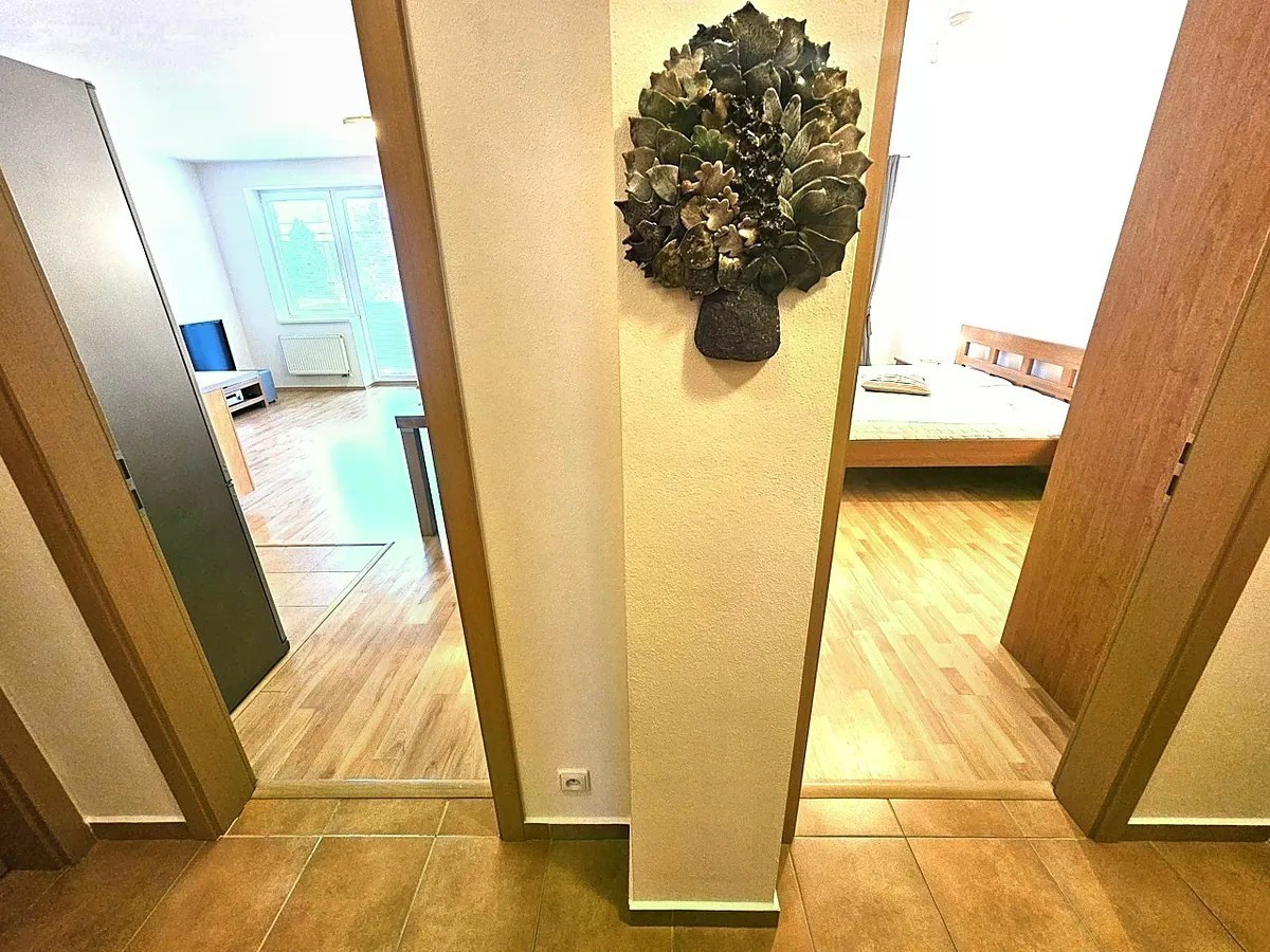 Pronájem bytu - krásný, prostorný, zařízený byt 2kk, 60 m2 + balkón 2,3 m2 + komora na patře 2,7 m2, Benešov, ulice Dukelská, 3.NP v bytovém domě z roku 2006, s výtahem. Dům je klidný a udržovaný, obývaný slušnými vlastníky nebo nájemníky. Byt je světlý, slunný, s orientací na SZ s pěkným výhledem do okolí a vzrostlých stromů. Byt sestává z velkorysého obývacího pokoje s kuchyňským koutem (28,6 m2), prostorné ložnice (15,2 m2), velké koupelny s WC (6,1 m2), vstupní chodby (6,1 m2), balkónu (2,3 m2), šatny (2,5 m2) a komory na patře bytu (2,7 m2). Byt se nabízí kompletně zařízený nábytkem. Moderní kuchyňská linka je vybavena sklokeramickou varnou deskou, el. troubou, digestoří, lednicí s mrazákem, myčkou, novou mikrovlnnou troubou, základním nádobím i kuchyňskými potřebami. Nábytek viz foto zůstává včetně 2 vestavěných skříní, TV napojenou na zesilovač zvuku pro lepší zážitek ze sledování filmů, hi-fi věž apod. Internetové připojení s rychlostí 100 mb/s je přes společnost Backer. Byt má mnoho úložného prostoru i díky šatně v bytě a komoře na patře, které mají obě navíc i úložné regály. V prostorné koupelně je rohová vana, umývadlo, WC a pračka. Topení je etážového - vlastní kombinovaný kotel se zásobníkem teplé vody, který zajišťuje jak vytápění bytu, tak i ohřev teplé vody. Na podlaze je plovoucí podlaha a dlažba. Parkování je možné na ulici. Dům se nachází necelých 300 m od samotného centra Benešova. V okolí je občanská vybavenost i zastávka autobusu. V docházkové vzdálenosti (cca 6 min. chůze) je vlakového a autobusového nádraží s možností přímého spojení do Prahy - autobusem je to pouhých 35 min. na Metro C - Roztyly nebo vlakem 39 min. na Hlavní nádraží nebo kratší dobu do Prahy - Hostivař, Zahradní Město, Vršovice. Byt je výhradně nekuřácký, je vhodný pro 1-2 osoby (pár), domácí zvířátka nelze. Byt je volný ihned. Vratná kauce je ve výši 25.000 Kč.