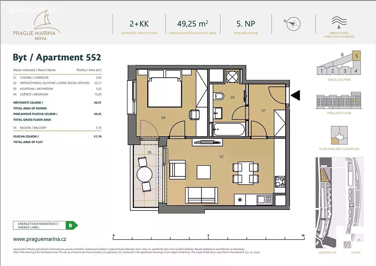 Nabízíme Vám moderní byt 2+kk k pronájmu v atraktivní rezidenci Nová Marina v Prahy 7 - Holešovicích. Tento světlý byt o celkové podlahové ploše 49,25 m² se nachází v 5. patře novostavby s energickou náročností třídy B, což zaručuje velmi úsporné bydlení. Nemovitost disponuje balkonem s atraktivním výhledem na řeku o ploše 5 m² a také sklepem o velikosti 4 m² pro uložení vašich věcí. Orientace jednotky je do klidného vnitrobloku, který v noci vytváří neuvěřitelnou atmosféru světel a moderního designu. Vybavení jednotky je moderní a vkusné a nabízí komfortní bydlení pro jednotlivce nebo pár. Byt je kromě postele v ložnici kompletně vybaven. V okolí jsou veškeré potřebné občanské vybavenosti a dobrá dostupnost MHD. Nezapomeňte, že byty jako je tento rychle mizí z nabídky, neváhejte a kontaktujte nás pro více informací. Kauce (jistota) 30.000,- Kč, provize RK ve výši 30.000,- Kč