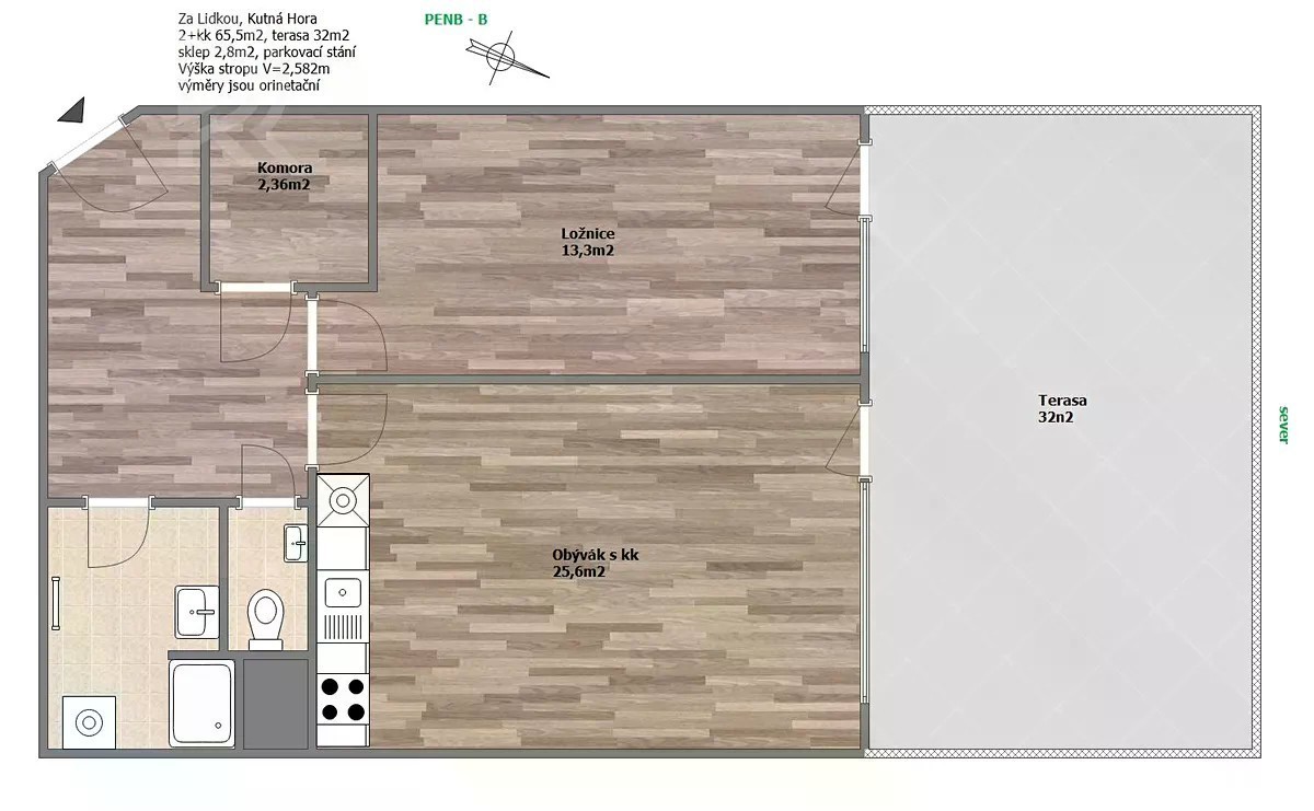 Nabízím k pronájmu krásný, moderní byt 2+kk v novostavbě na adrese Za lidkou 853, Kutná Hora - Hlouška. Klidná lokalita s okolní zástavbou převážně bytových domů zajišťuje klid a soukromí. V blízkosti bytu naleznete veškerou občanskou vybavenost - obchody, lékárny, školy i restaurace. Byt se nachází ve 2.NP, s velkorysou terasou, kterou si díky světové straně užijete i v létě. Nebojte, díky velkým oknům je byt dostatečně světlý i za deště. Samozřejmostí je výtah. Dispozice: 2+kk, úplně nový byt, obývací pokoj s kuchyňskou linkou s vestavnými spotřebiči, koupelna s krásnou sprchou a prostorem pro napojení pračky/sušičky. Dostatek místa i na další koupelnový nábytek. Samostatná toaleta s umyvadlem, komora, neprůchozí ložnice rovněž s přístupem na terasu. Pro lepší orientaci vám poslouží plánek bytu ve fotogalerii. Plocha bytu: 65,5m2 Terasa: 32m2 zděný sklep: 2,8m2 za parkovacím stáním vyhrazené parkovací stání v garáži Topení centrální, stejně tak ohřev vody. Byt se nachází v klidné rezidenční lokalitě. Veškerá občanská vybavenost je v bezprostřední blízkosti: Penny Market (130m), ostatní do 10min, OC Kutná Hora (Ortenova ulice) dostupné MHD nebo autem. Nemocnice Kutná Hora (autem 5 minut, MHD 10-15 minut). MŠ 10-15 minut pěšky, ZŠ Jana Palacha, ZŠ TGM 20 minut chůze nebo pár minut MHD Historické centrum Kutné Hory (UNESCO) 10 minut pěšky Dopravní spojení: zastávky autobusů v bezprostřední blízkosti, pravidelné spoje do centra i okolí; vlakové spojení: Kutná Hora má železniční spojení s Prahou, Kolínem a dalšími městy; autem: rychlé napojení na silnici I/2 směr Kolín a Praha (cca 60-70 km) Byt je vhodný pro pár, pár s dítětem nebo jednotlivce, kteří hledají moderní bydlení v docházkové blízkosti přírody a zároveň s dobrou dostupností služeb. Domácí mazlíčci po dohodě. Cena nájmu: 23.000,- Kč měsíčně + poplatky cca předpoklad 4.500,-Kč (Z toho je záloha do SVJ - 3.300,-Kč, převod elektřiny na nájemníka 1.200,-) Kauce: 30.000,- Kč. Byt je připravený k okamžitému nastěhování. Máte-li další otázky nebo si chcete domluvit prohlídku, neváhejte mi zavolat.