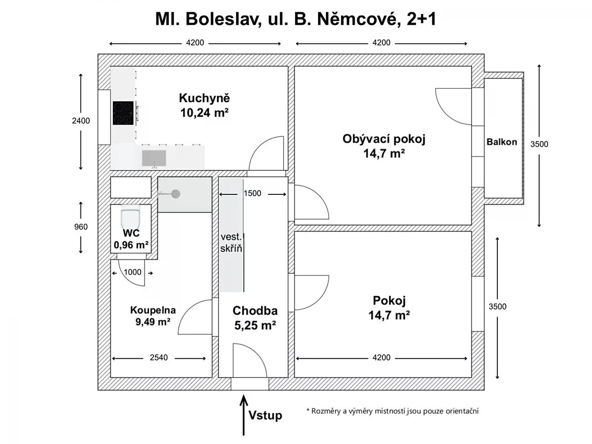 Pronájem bytu 2+1 56 m² Boženy Němcové, Mladá Boleslav - Mladá Boleslav II