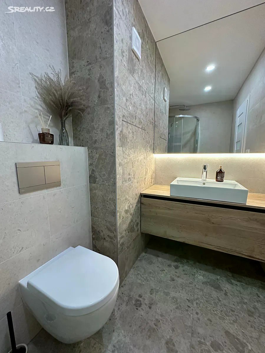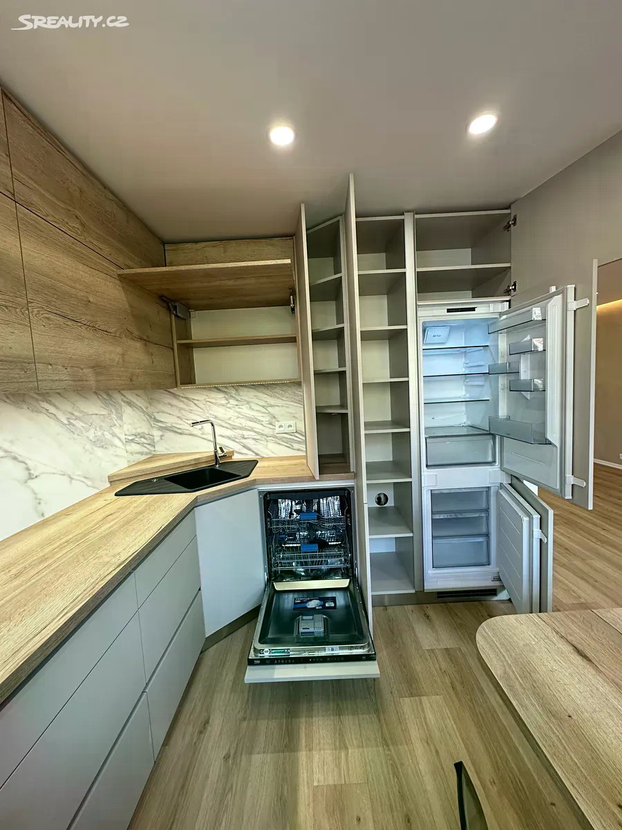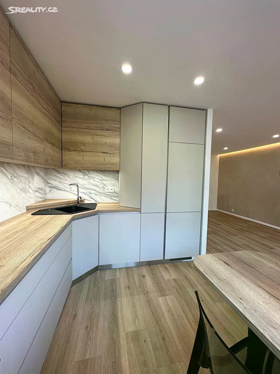 Byt 2+kk po kompletní rekonstrukci Bydlení, kde se ještě nikdy nebydlelo. Vše nové, do posledního detailu. Na prodej byt 2+kk o velikosti 56 m² v družstevním vlastnictví (Družstvo Mír Teplice), který prošel kompletní a nadstandardní rekonstrukcí. Byt se nachází v 1. nadzemním podlaží s výtahem a bezbariérovým přístupem - ideální pro kohokoli, kdo hledá pohodlné, moderní a zároveň praktické bydlení. Součástí jsou dva samostatné balkony s výhledem do zeleně - jeden přístupný z obývacího pokoje a druhý z ložnice. Byt, který voní novotou Rekonstrukce byla vedena architektem a provedena kompletně na míru - nikdo v bytě ještě nebydlel. Vše od kuchyně přes koupelnu až po osvětlení a elektroinstalaci bylo navrženo a vyrobeno custom - neexistuje druhý takový byt. Nové sádrokartonové podhledy s bodovým LED osvětlením po celém bytě. Okruhové vypínače - světla lze ovládat z více míst. Ztlumitelné LED drážkové osvětlení v obývacím pokoji i kuchyni. Nové dveře včetně bezpečnostních vstupních. Vinylová podlaha v celém bytě - příjemná na pohled i dotek. Příprava na optický internet (včetně husích krků až k TV - žádné viditelné kabely). Kuchyně na zakázku Kuchyně byla vyrobena na míru truhlářem a nabízí perfektní kombinaci estetiky a funkce. Součástí jsou vestavěné spotřebiče - lednice s mrazákem, myčka, elektrický sporák, digestoř, výklopné úložné prostory, praktické zásuvky a chytré využití každého centimetru. Kuchyně je doplněna stmívatelným LED podsvícením, které vytváří večer útulnou atmosféru. Koupelna s charakterem Moderní koupelna s custom vyrobeným zrcadlem, sprchovým koutem s dešťovou i klasickou sprchou, volně stojící pračkou, úložným prostorem, větrákem a důmyslným řešením detailů. Vše je nové, čisté, připravené k okamžitému užívání. Ložnice & obývací pokoj Ložnice - připravená pro dvojpostel, s ovládáním světel z obou stran postele a přímým vstupem na balkon. Obývací pokoj - vzdušný, s výhledem do zeleně, s LED drážkovým osvětlením a přímým napojením na kuchyň. Ideální prostor pro odpočinek nebo večerní pohodu. Lokalita Ulice Jana Koziny, Teplice - klidná část s výbornou dostupností do centra i do okolní zeleně. Dům je udržovaný, má výtah, bezbariérový vstup a výborné sousedské vztahy. Parkování bez problémů v okolí domu. Byt, ve kterém dříve žil starší pár na vozíčku, prošel kompletní proměnou pod vedením architekta a dnes nabízí moderní, bezbariérové a zároveň designové bydlení. Ideální volba jako první domov pro mladý pár, komfortní prémiové bydlení pro starší dvojici, nebo jistá investiční příležitost v rozvíjející se lokalitě. Teplice v posledních letech zaznamenaly výrazný růst cen nemovitostí a město nyní připravuje rozsáhlou revitalizaci městské části Trnovany, která hodnotu této oblasti dále zvýší.