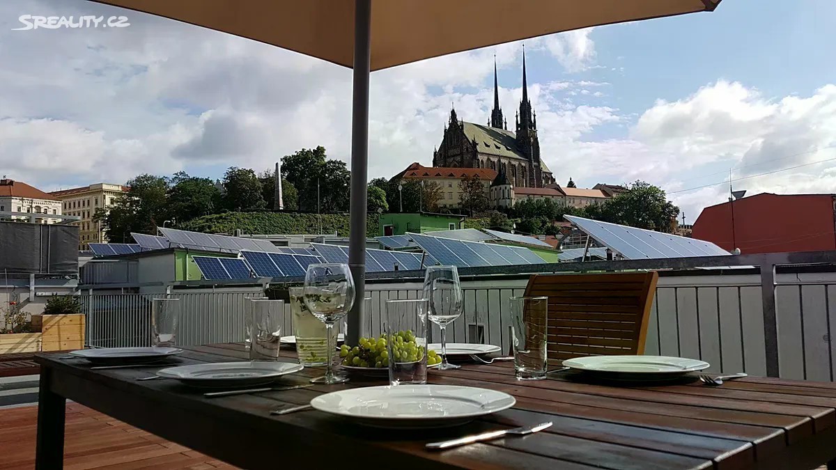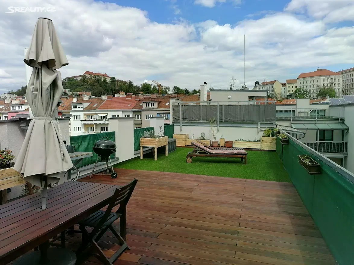 Nabízíme k dlouhodobému pronájmu krásný a zařízený byt 2+kk o rozloze 55,4 m2 se soukromou terasou 65m2 + sklep. Soukromá střešní terasa nabízí úžasný výhled na dominanty Brna - Špilberk a Petrov a spolu s okny do vnitrobloku zajišťuje tento byt ideální klidné bydlení v blízkosti centra a veškeré občanské vybavenosti. Vybavení bytu: Chodba: vysoké šatní skříně, dálkový zvonek s kamerou Koupelna: pračka, záchod, umyvadlo se zrcadlem, sprchový kout Obývák s kuchyní: klimatizace (možné ovládat přes aplikaci), kuchyně s vestavěnými spotřebiči (lednice, myčka, trouba, indukční deska), jídelní stůl, rozkládací gauč, obýváková stěna s úložnými prostory Ložnice: manželská postel (dle dohody), vysoké šatní skříně, noční stolek, pracovní kout Terasa: exotická dřevina + umělý trávník, jídelní stůl Lokalita: Skvělá dostupnost MHD, autem i vlakem. Supermarket, Vaňkovka či centrum Brna 5 min chůze.
