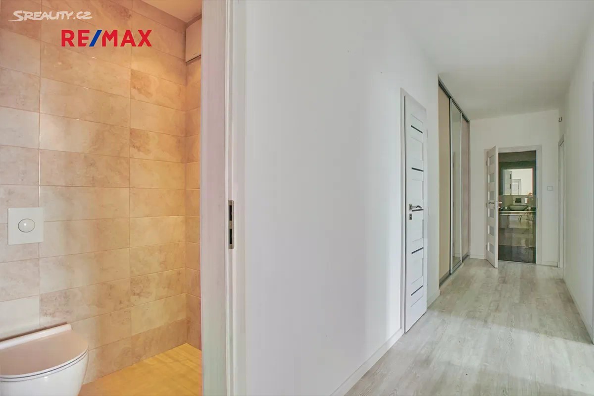 Hledáte nadstandardní bydlení na strategickém místě? Pak se pojďme společně podívat na byt 3+1 s terasou, sklepem a dvěma parkovacími stáními. Byt podlahové plochy 96,66 m2 se nachází ve 4.patře a je orientovaný západním směrem - terasa velikosti 12,17 m2 je též na západ a je vybavena zasouvacím prosklením, které poskytuje zajímavý tepelný komfort též v zimních měsících. Byt má 3 samostatné místnosti, kuchyni s kuchyňskou linkou a vestavěnými spotřebiči, moderní designovou koupelnu a wc. Dále pak komoru a předsíň s vestavěnou šatní skříní a bezpečnostními vchodovými dveřmi. K bytu náleží 2 sklepní kóje velikosti 1,90 m2 a 3,36 m2 a dále pak též dvě podzemní parkovací stání. Vlastní bytový dům pak vyniká svým designem a nepřetržitou službou „24/7“ na recepci umístěné v přízemí u hlavního vchodu do budovy. Také geografická poloha stojí za zmínku - 4 min. pěší chůze od autobusu č. 154, který jede na stanici metra Strašnická anebo č. 188 směr Želivského. Autem je to ca.2 min. na „jižní spojku“. Příjemnou procházku je možné udělat v nedalekém záběhlickém parku, jehož součástí je Hamerský rybník a na jehož okraji protéká proslulý potok Botič. K aktivnímu odpočinku je možné využít též sportovní areál Hamr. V případě jakýchkoli dotazů či zájmu o prohlídku mne neváhejte kontaktovat.