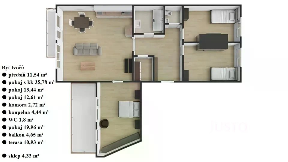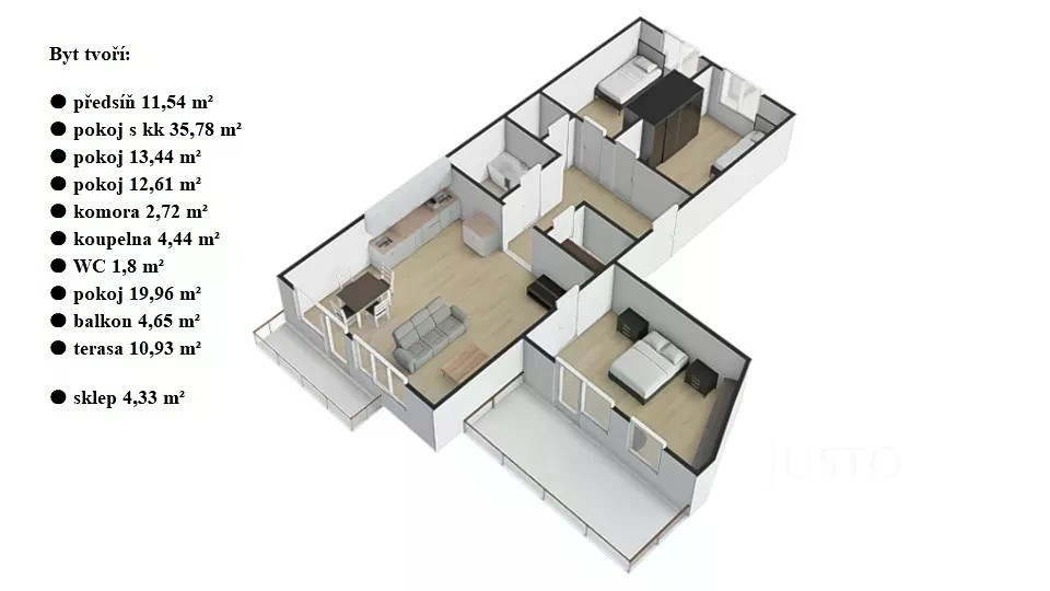 Rozrůstá se Vám rodina a děti si přejí každý svůj pokojíček? Hledáte domov, kde budou mít nejen vlastní kout, ale i prostor pro společné rodinné zážitky? Ve výhradním zastoupení majitele Vám nabízíme prostorný byt 4+kk o užitné ploše 102 m² v žádané lokalitě Praha 10 - Dubeč, na adrese Netlucká 632. Hned po otevření dveří Vás přivítá světlý a vzdušný interiér s moderními podlahami a velkými okny, která propouští dostatek denního světla do všech místností. Byt má tři neprůchozí ložnice - ideální řešení pro rodiče i děti, které se tak mohou těšit na svůj bezpečný prostor. Obývací pokoj propojený s kuchyňským koutem (kuchyňská linka není součástí a můžete si ji navrhnout dle svých představ, přičemž pro inspiraci máme připravenu vizualizaci i rozpočet) je srdcem domácnosti, ze kterého můžete vstoupit přímo na rozlehlou terasu o ploše téměř 11 m². Tato terasa navíc nabízí dostatek místa pro rodinné snídaně, letní grilování nebo večerní posezení. Další bonus představuje útulný balkon orientovaný na jih, odkud můžete pozorovat krásy okolní zeleně. Součástí bytu je také sklep o ploše přes 4 m² a kryté parkovací stání, které najdete přímo v domě - žádné každodenní hledání místa či běhání v dešti s nákupy v ruce. Velkou předností tohoto domu jsou i volně přístupné rezidenční služby. Pro aktivní životní styl rodiny je zde k dispozici vlastní fitness s kompletním zázemím včetně sprch, kde můžete sportovat, aniž byste někam museli jezdit. Pro děti je v domě připravena dětská herna - místo pro hraní, ale i oslavy narozenin či společná dobrodružství. Rodiče tak mohou v klidu relaxovat a děti budou vždy v bezpečí, jen pár kroků od domova. Byt je ve velmi dobrém stavu, s plastovými okny, zateplením a úspornou energetickou třídou C. Byt tvoří: ● předsíň 11,54 m² ● pokoj s kk 35,78 m² ● pokoj 13,44 m² ● pokoj 12,61 m² ● komora 2,72 m² ● koupelna 4,44 m² ● WC 1,8 m² ● pokoj 19,96 m² ● balkon 4,65 m² ● terasa 10,93 m² ● sklep 4,33 m² Okolí nabízí veškerou občanskou vybavenost. V obci najdete školku i školu, potraviny přímo v domě, a jen pár kroků od vchodu je zastávka MHD s rychlým spojením na metro Skalka. Za tři minuty pěší chůze se dostanete do kouzelného parku „Panská zahrada“, kde děti zabaví originální hřiště, bludiště i amfiteátr, a Vy si můžete užít klidné odpoledne v přírodě. Blízké okolí nabízí další sportovní a kulturní vyžití - v dosahu je například Krtkův svět, Galerie Golf Hostivař nebo další dětská herna Koala Café. Pokud hledáte rodinné bydlení, které spojuje pohodlí, bezpečí, možnosti volnočasových aktivit a vše potřebné k rodinnému životu v dosahu, tento byt je tou pravou volbou. Pro více informací o této nemovitosti nebo sjednání prohlídky nás prosím kontaktujte nebo vyplňte formulář. Těšíme se na Vás i Vaši rodinu!