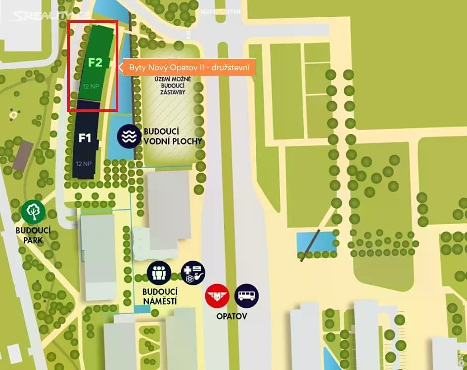 Nabízíme postoupení nového družstevního bytu 2+kk v projektu Nový Opatov II (dům F2) úspěšného developera FINEP v blízkosti ulice Chilská, Praha - Chodov. Bytová jednotka 2+kk o velikosti 39,2 m2 se nachází v 6. nadzemním podlaží (z celkových dvanácti) s orientací na východ. Dispozice bytu: obývací pokoj s kuchyňským koutem, ložnice, koupelna s WC, chodba. Cena za postoupení bytu: 3 190 000 Kč (zaplatíte nyní z vlastních zdrojů) Doplatek anuity za byt: 5 444 091 Kč (po kolaudaci a převzetí bytu) Celková cena bytu = cena za postoupení plus doplatek anuity. Nepotřebujete hypotéku, žádné schvalování bankou, bez dokazování příjmu, v jakémkoliv věku. Anuita se splácí až po převzetí dokončeného bytu (předpoklad kolaudace 09/2028). Nyní zaplatíte pouze cenu za postoupení. Aktuálně měsíční splátka anuity bytu činí 27 706 Kč. V době výstavby nelze převést do osobního vlastnictví. Přímo u stanice metra C - Opatov. V blízkosti Milíčovský a Kunratický les. OC Westfield Chodov - pouze jednu stanici metrem. Kupující nad rámec výše uvedené ceny za postoupení družstevního podílu hradí vstupní poplatek do družstva 15 000 Kč a poplatek za převod družstevního podílu 50 000 Kč.
