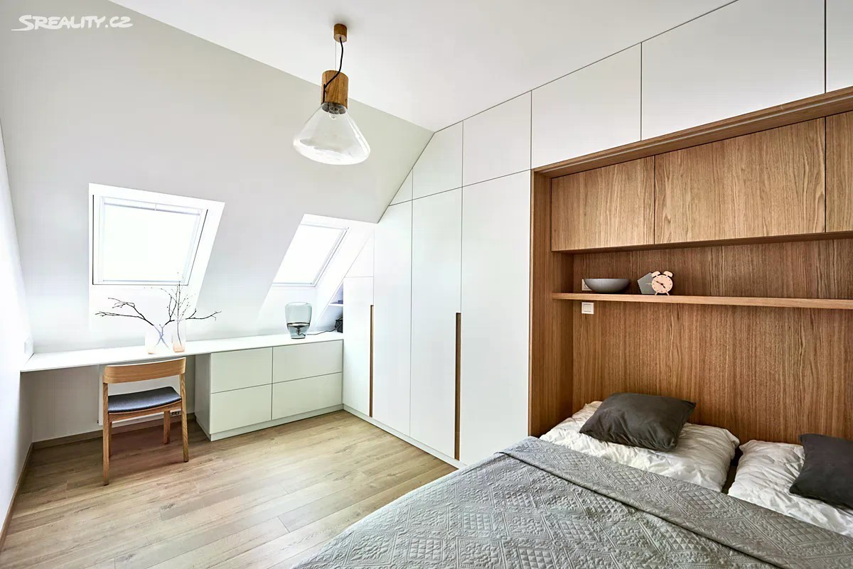 Exkluzivně nabízím k pronájmu nadstandardní 2+kk byt v klidné lokalitě u parku Jezerka. Byt se nachází v 5.nadzemním podlaží činžovního domu, který prošel celkovou rekonstrukcí. Činžovní dům disponuje moderním výtahem a nachází se v klidné části ulice s dostatkem soukromí. Ze stavu shell and core prošel byt komplexní a nákladnou stavební rekonstrukcí a dostavbou. Rekonstrukci měl na starosti známý architektonický ateliér BekArch. Tento projekt se dokonce umístili na krásném třetím místě v soutěži rekonstrukce roku 2019. Půdní jednotka je řešena jako 2kk o celkové podlahové ploše 45m2 a je vybavena velmi důmyslným systémem vestavných skříní a truhlářských prvků tak, aby byl prostor maximálně využit. Vše ve vysokém standardu s matně lakovanými povrchy dvířek. Součástí jednotky je i užitečná sklepní koje. Byt je vybaven klimatizační jednotkou, která se postará a komfortní chlazení. Jednotka se skládá z chodby s vestavenými skříní na oblečení a boty, obývacího pokoje s kuchyní, kuchyňským ostrůvkem, vestavnou knihovnou pod okny a TV skříňkou, koupelny s dostatkem úložných prostor, sprchovým koutem, betonovým umyvadlem Gravelli a toaletou od Laufen by Kartel a v neposlední řadě z ložnice s vestavnou skříní a integrovanou truhlářský řešenou postelí 180x200. Všechny místnosti osvětleny světly od českých designérů a výrobců jako Bomma a Brokis. Kuchyně je vybavena: pračkou se sušičkou, indukční varnou deskou, el. Troubou, myčkou, vestavnou kombinovanou chladničkou, granitovým dřezem, baterií a digestoří. Lokalita je v pěším dosahu zastávek tramvají a autobusů s napojením na stanice metra I.P.Pavlova a Pankrác. V okolí je výborná občanská vybavenost. Hned u domu jsou dětská hřiště, klidný park Jezerka, divadlo Jezerka, Tesco, kavárny atd. V posledních letech lokalita prošla velmi pozitivním vývojem. Veškeré domovní poplatky na byt vychází na 1.800,- Kč/ 1 osoba. Další osoba by znamenala navýšení domovních poplatků o 700 Kč. Elektřina a plyn se platí zvlášť a převádí se na nájemce. Vratná kauce je ve vyšší 2x nájmů s ohledem na vysoký standard zařízení bytu. Zvířátka nejsou bohužel povolená. Byt je vybavený tak, že je možné okamžitě obývat po doplnění: gauče, barových židliček a matrace. U tohoto bytu se neplatí provize. Vážné zájemce ráda provedu celou nemovitostí. Ideální pro milovníky českého designu a pro lidi, kteří umí ocenit kouzlo tohoto interiéru. K nastěhování od 1.12. nebo po domluvě.