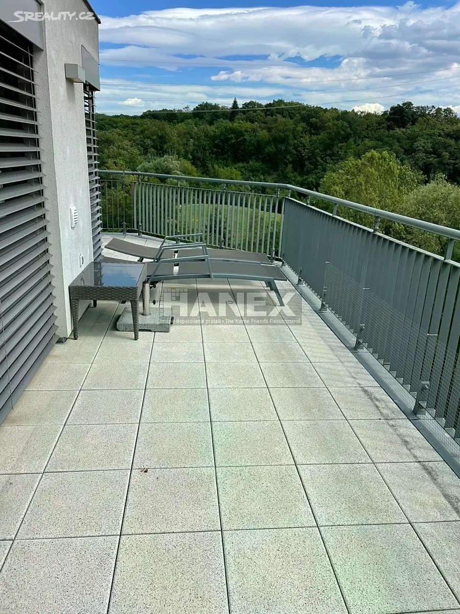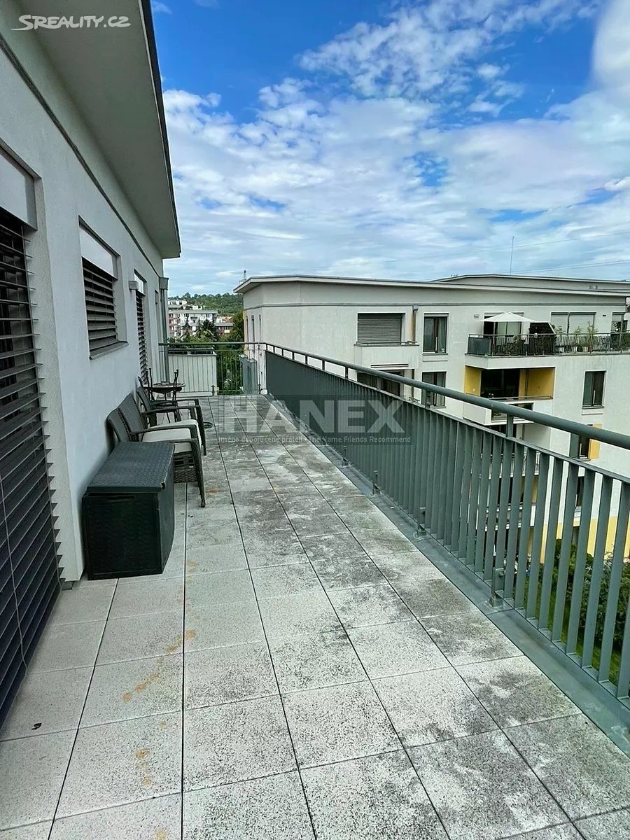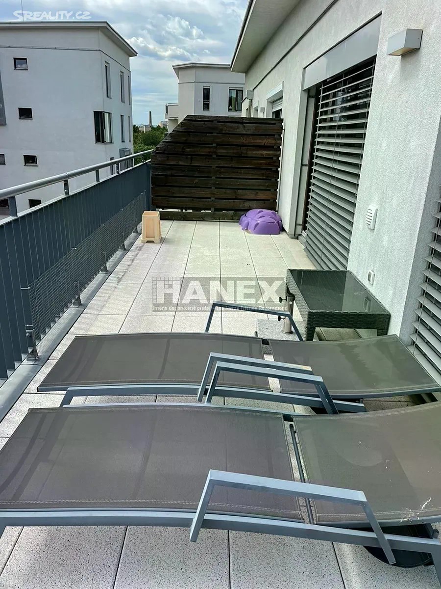 Nabízíme na pronájem zařízený moderní byt 3+kk s prostornou terasou v posledním 5.NP novostavby z roku 2012. Byt se nachází v uzavřeném komplexu Kejřův Park, který je situován do nádherné přírodní lokality nacházející se v Praze 9 - Hloubětíně pouhých 15 minut od centra Prahy. Součástí projektu je nově revitalizovaný Hořejší rybník a rozlehlý lesopark s řadou relaxačních a odpočinkových zón (soukromá pláž, beachvolejbalové hřiště, minigolf, cyklostezka). V jeho okolí je řada tramvajových a autobusových zastávek i stanice metra B. Výborná občanská vybavenost. Tento světlý byt 3+kk o velikosti 92,8 m2 + terasa o velikosti 47,5 m2 s úžasným výhledem na rybník a lesopark, se skládá z předsíně, prostorného obývacího pokoje, dvou ložnic, koupelny s vanou a toaletou, samostatné toalety a komory. Plně vybavená kuchyňská linka. Kompletně a velmi vkusně a moderně zařízený byt. Vestavěné skříně. K bytu patří garážové stání a sklep. Nájemné včetně garáže, poplatky jsou zvlášť 7.500,- Kč, plus převod elektřiny na nájemce. Bezpečnostní kauce 2 měsíce.