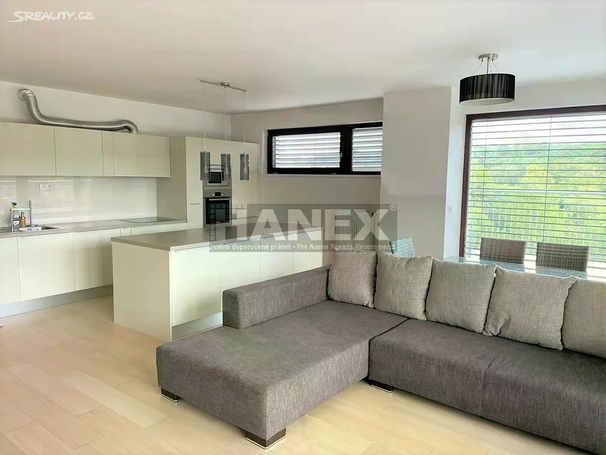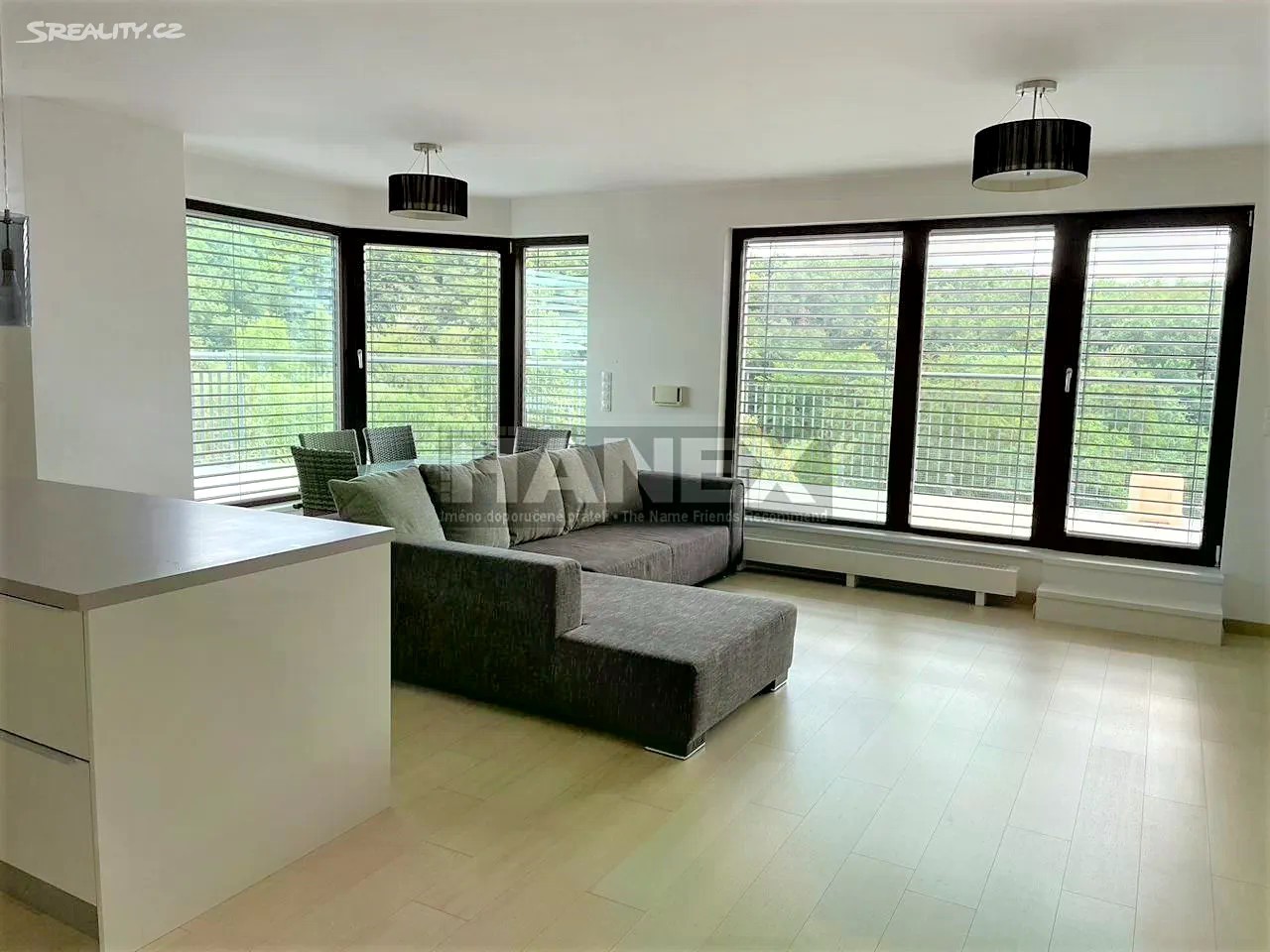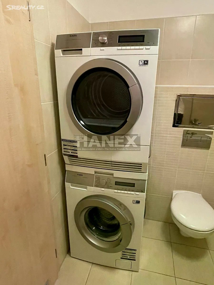 Nabízíme na pronájem zařízený moderní byt 3+kk s prostornou terasou v posledním 5.NP novostavby z roku 2012. Byt se nachází v uzavřeném komplexu Kejřův Park, který je situován do nádherné přírodní lokality nacházející se v Praze 9 - Hloubětíně pouhých 15 minut od centra Prahy. Součástí projektu je nově revitalizovaný Hořejší rybník a rozlehlý lesopark s řadou relaxačních a odpočinkových zón (soukromá pláž, beachvolejbalové hřiště, minigolf, cyklostezka). V jeho okolí je řada tramvajových a autobusových zastávek i stanice metra B. Výborná občanská vybavenost. Tento světlý byt 3+kk o velikosti 92,8 m2 + terasa o velikosti 47,5 m2 s úžasným výhledem na rybník a lesopark, se skládá z předsíně, prostorného obývacího pokoje, dvou ložnic, koupelny s vanou a toaletou, samostatné toalety a komory. Plně vybavená kuchyňská linka. Kompletně a velmi vkusně a moderně zařízený byt. Vestavěné skříně. K bytu patří garážové stání a sklep. Nájemné včetně garáže, poplatky jsou zvlášť 7.500,- Kč, plus převod elektřiny na nájemce. Bezpečnostní kauce 2 měsíce.