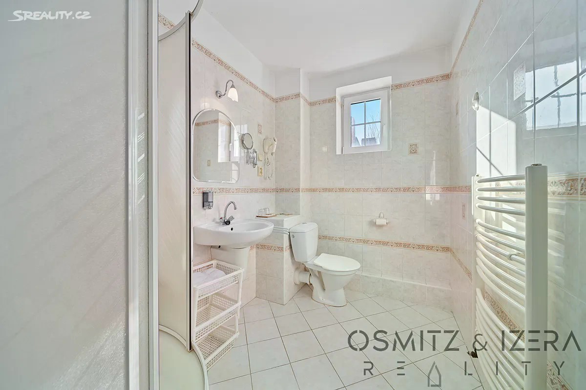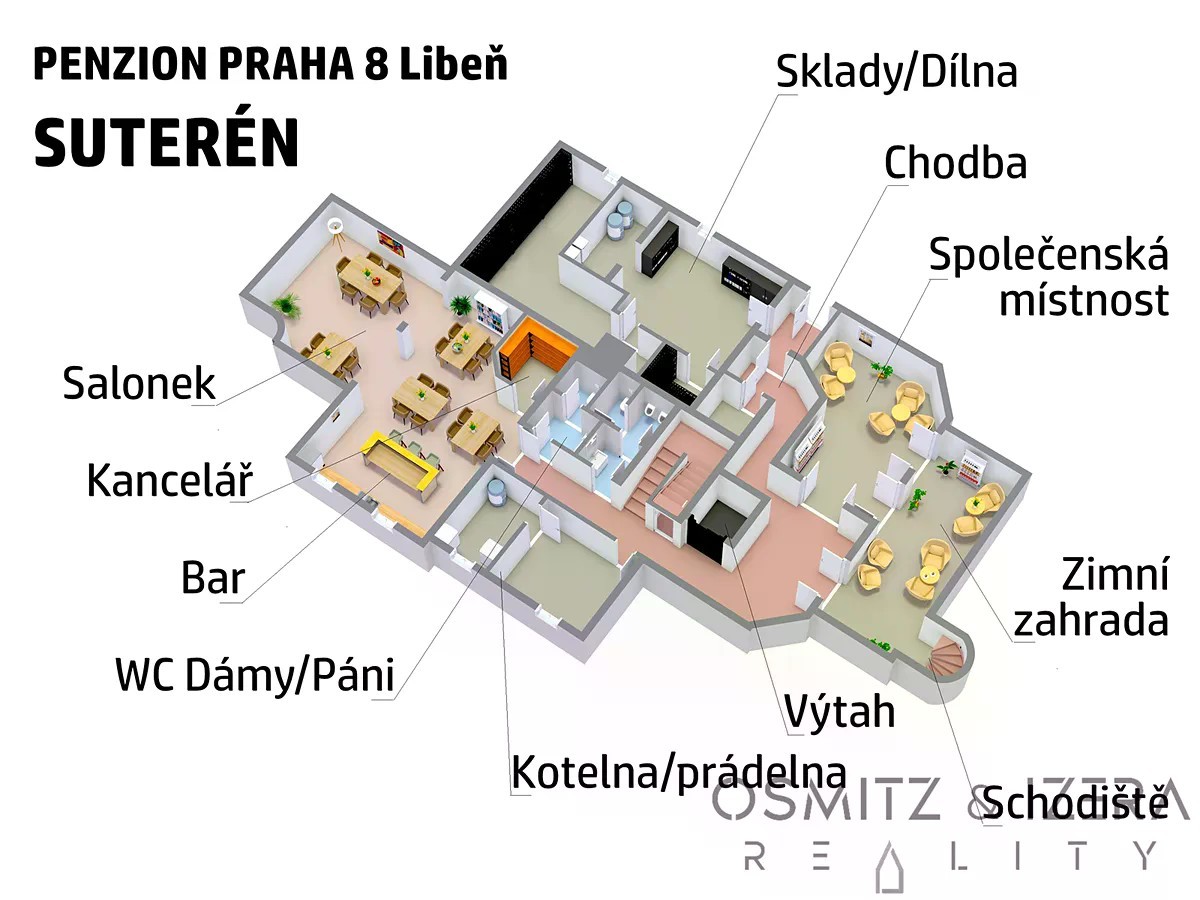 Nabízíme k prodeji prostorný penzion v klidné lokalitě u historické vodárenské věže, jen pár minut pěšky od metra Ládví (linka C). Objekt je zkolaudován a provozován jako penzion. Možno využití ale i jako sídlo firmy nebo pro jiné využití. Při určitých technických úpravách je zde i možnost přestavby části nemovitosti na samostatné bytové jednotky. Skvělá dostupnost autem na městský okruh a MHD (tramvaj, metro, autobus, PID) 3 minuty pěšky od domu. Parametry objektu: • Celková užitná plocha: cca 890 m² • Počet podlaží: 1 suterén + 4 nadzemní podlaží (výtah v domě) • Parkování: 6 parkovacích míst na pozemku u domu • Pozemek cekem 622 m² Dispozice: • Suterén: Společenská místnost s barem, salonek se zimní zahradou s přístupem na zahradu, kancelář, sociální zařízení, kotelna, strojovna výtahu, sklady. Suterén lze využívat jako zázemí pro dům, nelze oficiálně celé užívat jako pobytové místnosti. • Přízemí: Velký byt 4+1 se zimní zahradou + prostor pro další byt 2+kk. • Nadzemní podlaží: 12 pokojů + 1 apartmán, každý s vlastním sociálním zařízením, 5 pokojů s balkónem. • Terasa: Velká letní terasa na východní straně s přístupem z prvního patra. • Zahrada: V zadní části pozemku je upravená menší zahrada s jezírkem a posezením. Vybavení a infrastruktura: • Inženýrské sítě: elektřina, plyn, veřejný vodovod a kanalizace, telefonní přípojky • Moderní technologie: kamerový systém, zabezpečovací zařízení, centrální vysavač, WiFi, TV rozvody, vzduchotechnika • Bezpečnostní okna v 1. NP • Výtah • Vjezdové brány s dálkovým ovládáním Lokalita: • Skvělé dopravní spojení do centra Prahy (do 10 minut metrem), občanská vybavenost v okolí. Penzion není v současnosti v provozu, ale objekt je udržovaný v dobrém stavu a připraven k rychlému uvedení do provozu. Neváhejte nás kontaktovat pro více informací, případně si domluvte prohlídku. Těšíme se na vás Alexandra a Marek