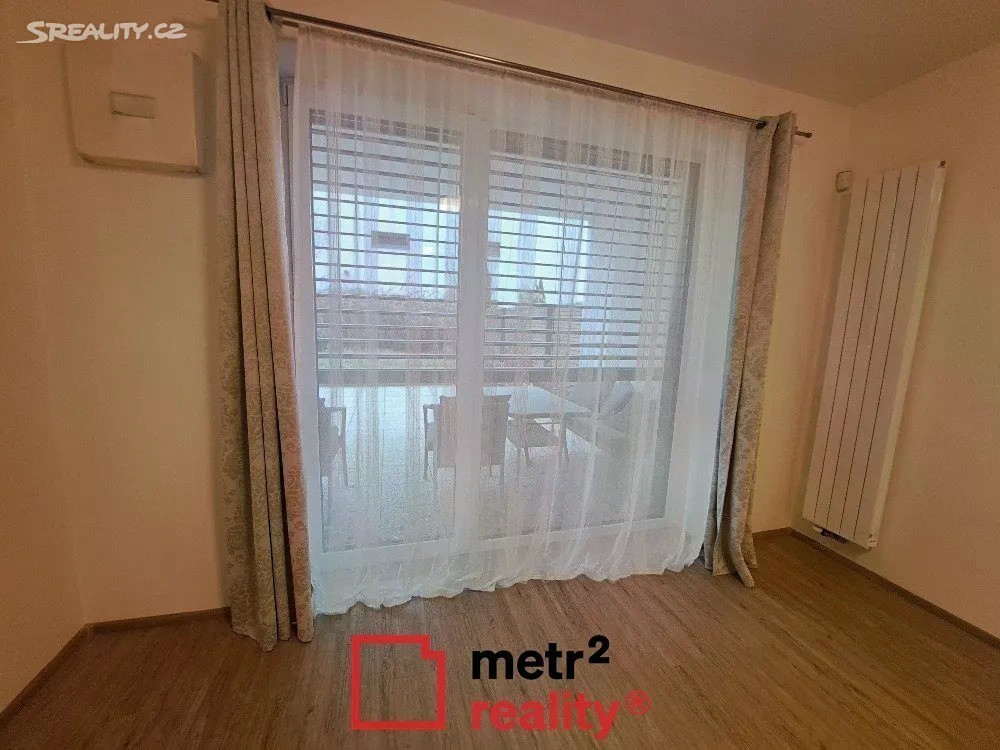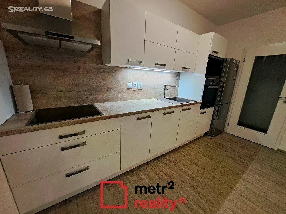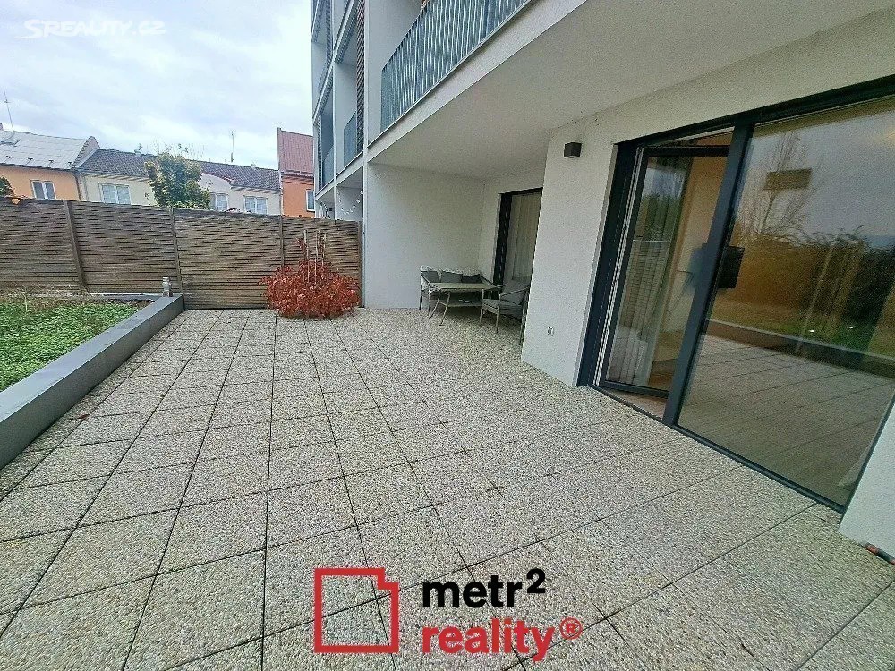 Pronájem nadstandartního bytu 2+kk s terasou a zahrádkou v blízkosti centra města Olomouce na ulici Rokycanova. Součástí pronájmu je i garážové stání v suterénu domu (1.500,- Kč / měsíc). Byt se nachází v 1. NP novostavby domu, tvoří ho prostorná vstupní chodba vybavena sestavou věšáku, botníku a zrcadla, ložnice se vstupem na terasu s vestavěnou šatní skříní na míru, obývací pokoj se vstupem na terasu a s kuchyňským koutem (kuchyňská linka je vybavena vestavěnou elektrickou a mikrovlnnou troubou, el. varnou deskou, myčkou, lednicí a mrazákem), koupelna se sprchovým koutem a samostatné wc. Oba pokoje jsou vybaveny nástěnnou televizí, na podlaze kvalitní vinylová podlaha, v obou oknech dálkově ovládané venkovní žaluzie, rekuperace, v koupelně podlahové vytápění. Byt má užitnou plochu 59 m2, plocha terasy se zahrádkou činí 88 m2. K bytu náleží zděný sklep v suterénu domu. Cena je uvedená bez záloh na služby (3.000,- Kč / měsíc) a elektrickou energii, která bude přepsána na nájemníka. Jistota ve výši dvou měsíčních nájmů. Byt je k dispozici ihned. PENB nedodán, z tohoto důvodu uváděna en. třída G.