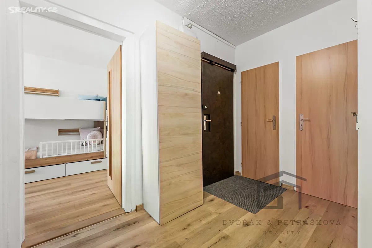 Realitní společnost Dvořák&Petrášková reality vám nabízí k prodeji byt 3+kk v Horních Měcholupech. Do not hesitate to contact me i speak fluently English. Máme pro Vás nabídku 3 pokojového bytu po rekonstrukci v Horních Měcholupech. Byt se svou podlahovou plochou 63m2 již prošel rozsáhlejší rekonstrukcí před pár lety. Na prostorný a světlý obývací pokoj navazuje plně vybavená kuchyňská linka, kde naleznete vše co potřebujete včetně plynové varné desky s digestoří, el. horkovzdušnou troubu, mikrovlnnou troubu, myčku na nádobí a nerezový dřez se sprchovou baterií. Dále ložnice, kam se vejde velká manželská postel a šatní skříň. V dětském pokoji můžou být s přehledem dvě děti a prostoru budou mít vždy dostatek. Vstupní předsíň nabízí samostatné vstupy do všech pokojů, komory, na samostatné WC a do koupelny, kde je velký vyzděný sprchový kout, umyvadlo s galerií, zrcadlem a dostatkem místa na pračku i sušičku. V celém bytě jsou vinylové podlahy, vyměněná plastová okna s dvojsklem a nové elektrické rozvody, stačí se opravdu jen nastěhovat. K bytu také náleží lodžie (3,25m2) navazující na dětský pokoj a sklep (1,60m2) v suterénu domu. Dům je v perfektním stavu a SVJ se o něj náležitě stará, samozřejmostí je zateplení, plastová okna a nové výtahy. Měsíční platba do SVJ je 5719 Kč. Elektřina a plyn - 1500 Kč. PENB budovy kategorie C. Teplou vodu a ohřev TUV zajišťuje dálkový rozvod z teplárny. Proč zrovna Horní Měcholupy? Protože zde se mísí dostatek zeleně, parkovacích míst, skvělá občanská vybavenost a volnočasové aktivity. V blízkosti máte Hostivařskou přehradu, nebo Lesopark, dětská hřiště, školy, školky, a mnoho dalších volnočasových aktivit, nebo známých obchodů. Spojení do centra Prahy je zde snadné a efektivní. Autobusová zastávka je pouhých 150 metrů od domu. Samozřejmostí je rychlé vyřízení hypotéky bez poplatků, za velmi příznivých podmínek. Základní propočet hypotéky je možné získat při domluvené prohlídce nemovitosti. Pro více informací mě neváhejte kontaktovat.