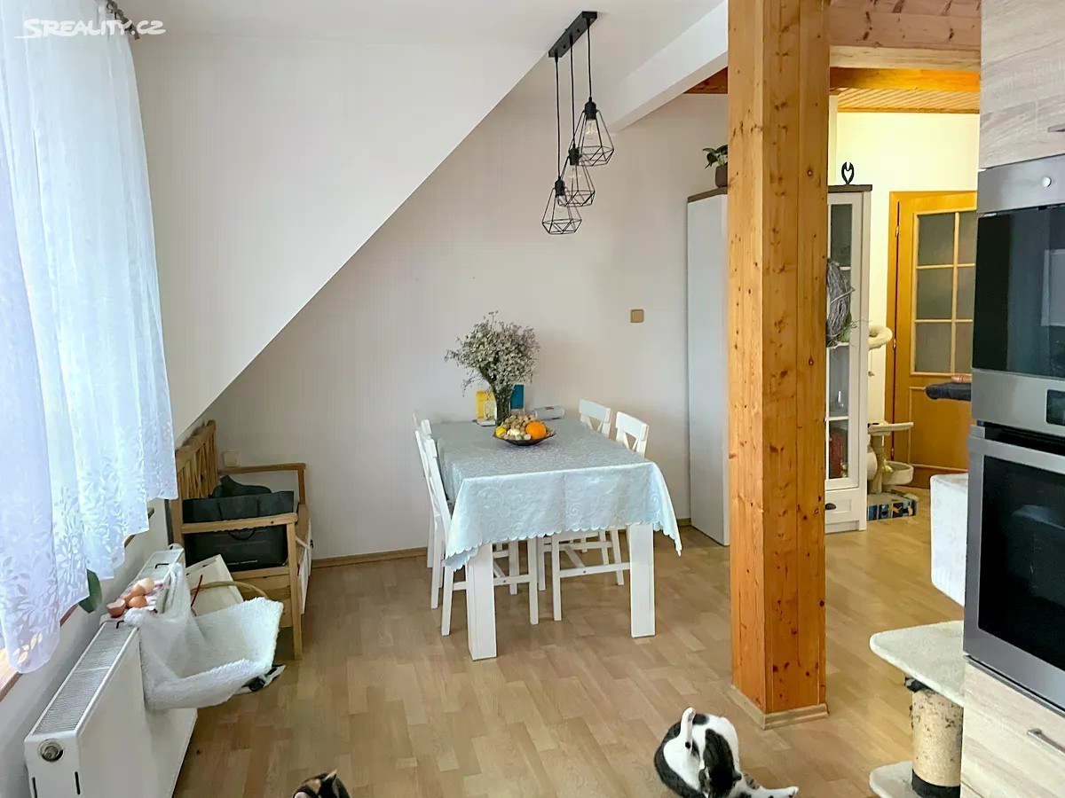 Nabízíme prostorný mezonetový byt o velikosti 5+kk (120 m2) v prvním patře rodinného domu v obci Brandýs n.L. - Stará Boleslav, ulici Rolnická. Vnitřní dispozice jsou předsíň, ze které je vstup do koupelny s vanou a na samostatné WC, dále je vstup do obývacího pokoje s kuchyňským koutem a jídelním koutem. Kuchyň je vybavena vestavěnými spotřebiči (trouba, mikrovlnná trouba, sklokeramická deska). V dolním patře spolu s obývacím pokojem jsou dvě ložnice, v horním patře další dva (zkosená střecha). Vybavení bytu je současných nájemníků, po dohodě majitelka byt částečně vybaví. V blízkosti domu je veškerá občanská vybavenost do 10 minut. Měsíční nájemné činí 24.000 Kč + 6.000 Kč zálohy na energie (elektřina, plyn, voda). Majitel požaduje vratnou kauci 40.000 Kč, poplatek realitní kanceláři za zprostředkování činí jeden nájem bez poplatků, tj. 24.000 Kč. Bližší informace Vám rádi poskytneme při prohlídce nemovitosti. K nastěhování od 15.12.2025.