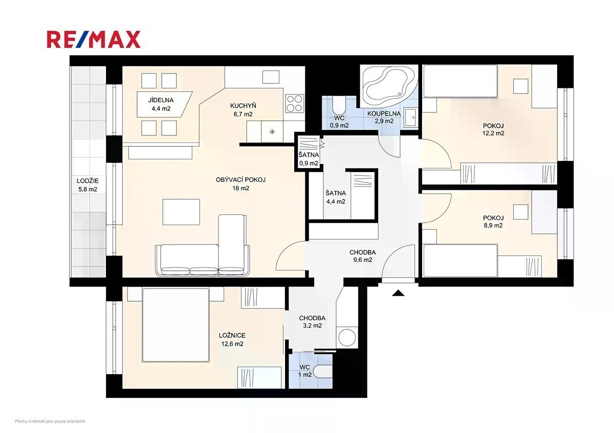 Nabízím k pronájmu velmi pěkný a prostorný byt 4+1 o užitné ploše 83 m² v oblíbené části Mladé Boleslavi v ulici 17. listopadu. Byt se nachází ve 3. nadzemním podlaží domu s výtahem. Disponuje také balkonem o velikosti 5,8 m². Dispozice bytu je prakticky řešená. Pokoje jsou orientovány na sever a ložnice, obývací pokoj a kuchyň na jih, takže byt působí světlým a příjemným dojmem po celý den. Byt je výjimečný tím, že disponuje dvěma WC. Vybavení bytu: • Ložnice: vestavěné skříně, postel s roštem, noční stolky, lampičky • Pokoj: rozkládací postel, skříň, skříňky, regály • Obývací pokoj a druhý pokoj: máte možnost dovybavit dle vlastních potřeb • Jídelna: stůl a čtyři židle • Kuchyně: kuchyňská linka s dostatkem úložného prostoru, dřez, lednice, mrazák, mikrovlnná trouba, plynový sporák, elektrická trouba, myčka • Koupelna: vana, WC, umyvadlo • Samostatné WC: s umyvadlem • Chodba: šatna • V bytě jsou žaluzie v každém pokoji a sítě proti hmyzu v ložnici, pokoji a obývacím pokoji. • Podlahy jsou pokryty PVC, dlažbou a plovoucí podlahou V domě můžete využít společnou místnost pro uskladnění kola. Parkování je možné přímo před domem. Byt se nachází v lokalitě s veškerou občanskou vybaveností. V blízkosti jsou obchody, školy, školky, lékaři, zastávky MHD i možnosti sportovního a kulturního vyžití. Mladá Boleslav je město s bohatou historií i moderním duchem. Najdete zde hrad a muzeum Mladá Boleslav, krásné náměstí s kavárnami, Škoda Muzeum, které připomíná dlouhou tradici českého automobilového průmyslu. V okolí se nabízí řada možností k procházkám i výletům - například zřícenina hradu Michalovice nebo přírodní památka Radouč. Díky silnému zaměstnavatelskému zázemí (zejména Škoda Auto a navazující firmy) je Mladá Boleslav městem s výbornými pracovními příležitostmi. Má dobrou dopravní dostupnost do Prahy nebo Liberce po dálnici D10. Byt je ihned k nastěhování a ideální pro rodinu, která hledá pohodlné a klidné bydlení s výbornou dostupností a příjemnou atmosférou. Byt je určen pro pět osob. V bytě je funkční anténa, telefonní kabel a přiveden internet. Elektřina, plyn a internet se přepisují na nájemce. Měsíční nájem činí 22.000,- Kč, poplatky za služby 4.900,- Kč, vratná jistota (kauce) je 35.000,- Kč, provize RK je 22.000,- Kč+DPH. ???? V případě zájmu mě kontaktujte a domluvíme si prohlídku. ???? Petr Steinhauser - Váš realitní makléř