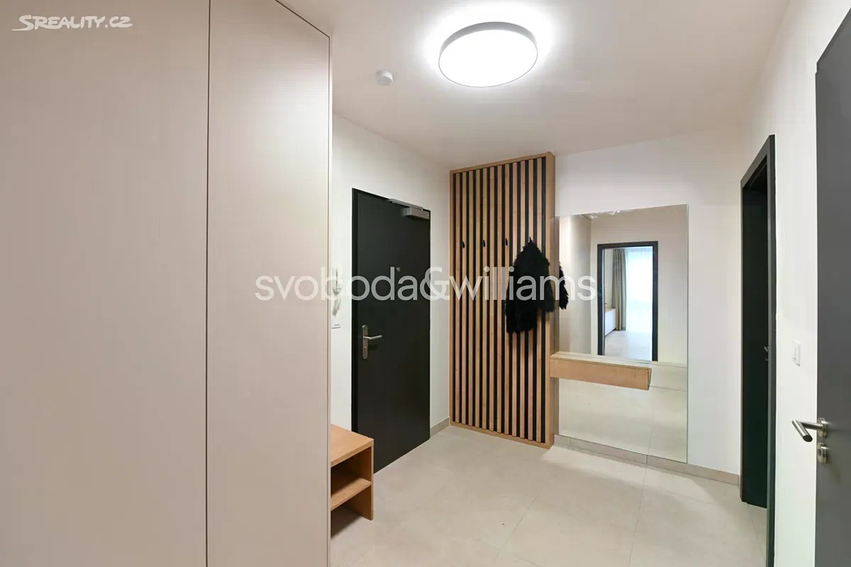 Nabízíme k pronájmu nový nezařízený byt se 2 terasami a krásným výhledem do okolní zeleně, situovaný v 4. patře nově postavené Rezidence Radimova s podzemním parkováním přímo u břehu rybníka Vincentinum. Rezidence se nachází v Praze 6 na Břevnově, v klidné lokalitě s výbornou občanskou vybaveností a službami, v pěším dosahu Pražského hradu, nedaleko oblíbeného parku Ladronka. Místo nabízí i rychlé spojení do centra, na letiště a do četných mezinárodních škol. Interiér bytu tvoří obývací pokoj s plně vybavenou kuchyní a jídelním prostorem, ložnice s vestavěnými skříněmi, druhá ložnice, koupelna s vanou a toaletou, samostatná toaleta pro hosty a vstupní hala s vestavěnými skříněmi. Každá hlavní místnost má přístup na terasu. Dřevěné podlahy, velkoformátová dlažba, hliníková okna, zatemňovací závěsy, centrální topení, podlahové vytápění v celém bytě, myčka, indukční varná deska, mikrovlnná trouba, výtah. V ceně je zahrnuto garážové stání.