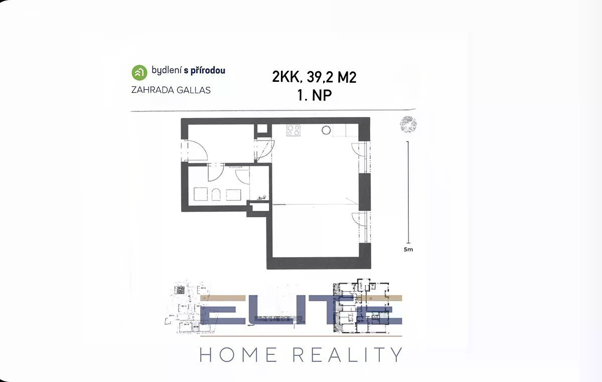 Nabízím k pronájmu byt 2+kk, 39,80 m2 v 1. NP s orientací na SV včetně garážového parkovacího stání v nedávno dokončeném šestipodlažním nízkoenergetickém domě v Zahradě Gallas, obklopený zelení u křížení ulic Švermova a Tovární v městské části Liberce - Františkov, vzdálené 1,5 km od centra města a zároveň 2,5 km od Přírodního parku Ještěd. Místem protéká Františkovský potok, který je v části zahrady otevřen a revitalizován. V Zahradě Gallas bude celkem 7 takových domů, které obklopuje zahrada pro odpočinek, kde zde najdete dětské i workoutové hřiště, grill pointy, plácek na jógu, pétanque, relaxační zónu pro odpočinek, nebo servis point pro kola a mnoho dalšího. Nicméně nyní probíhá ještě v zadní části výstavba. Samotný byt je vybaven kuchyňskou linkou se dřezem a baterií, varnou deskou, digestoří a troubou. Všechny místnosti mají stropní světla a nad okny jsou garnýže. V místnostech jsou velká francouzská okna. Podlahy jsou v bytě laminátové. V koupelně společné s WC je keramický obklad a dlažba, sprchový kout se sprchovou baterií, umyvadlo se světlem nad ním, komplet WC a topný žebřík s termostatickou hlavicí. Ohřev vody je zajištěn ve strojovně v objektu, zdrojem tepla je teplovod z Teplárny Liberec s přípojkou teplovodu do předávací stanice v každém objektu. Topná tělesa jsou klasická desková otopná tělesa s termostatickou hlavicí. Měřidlo vody jakož i měřidlo spotřeby tepla - kalorimetr je pro každý byt s dálkovým odečtem. V objektu je kabelová televize, optický kabel. Kamery na vstupy do domu a vjezd garáže. Ideální bydlení pro 1-2 osoby, bez větších domácích mazlíčků. Pro více informaci či sjednání prohlídky kontaktujte makléřku skrze inzertní formulář